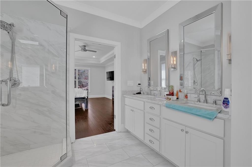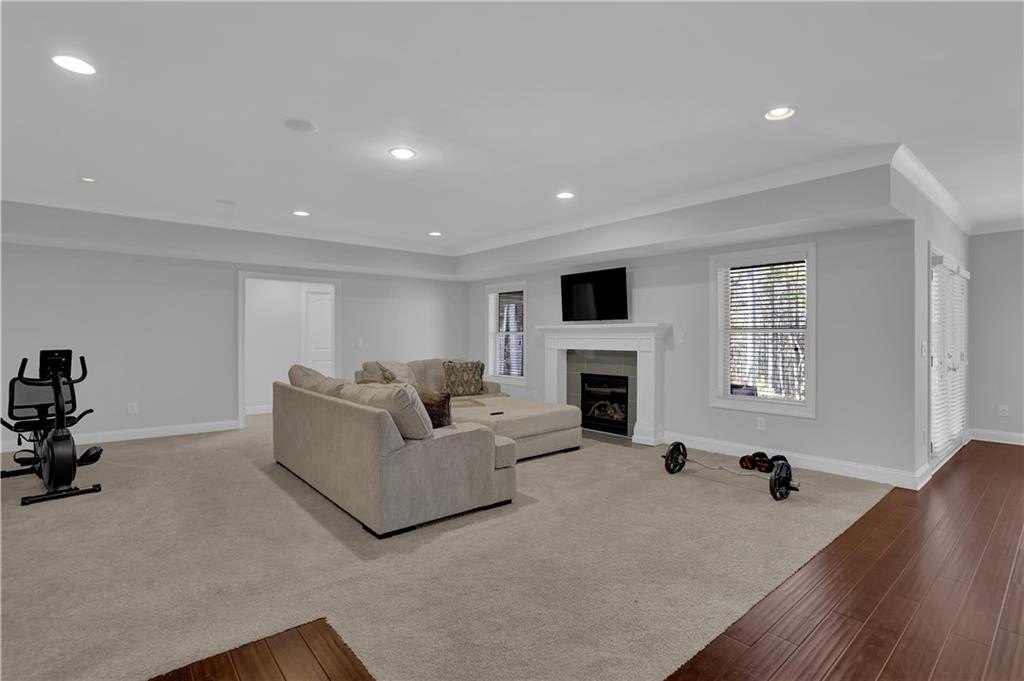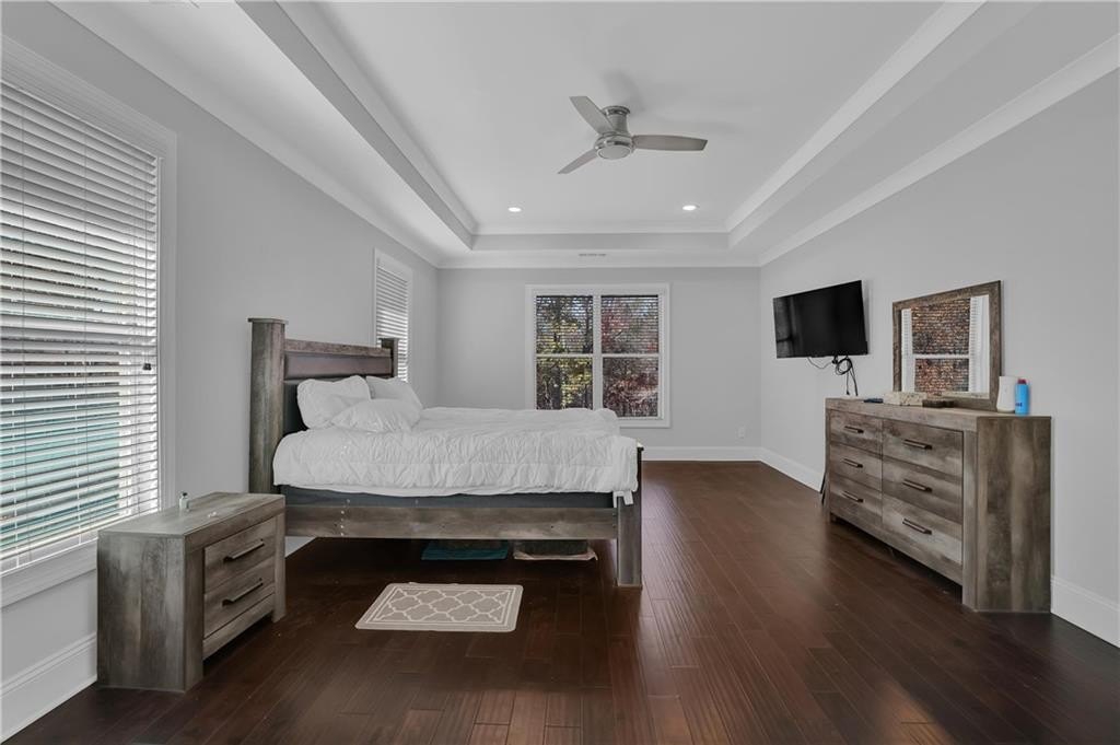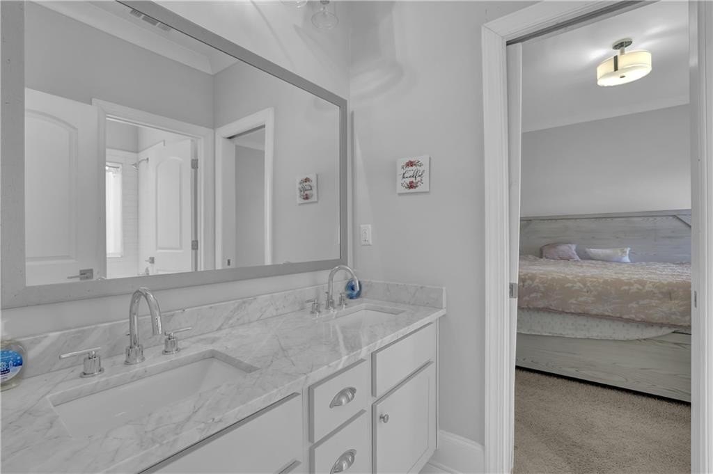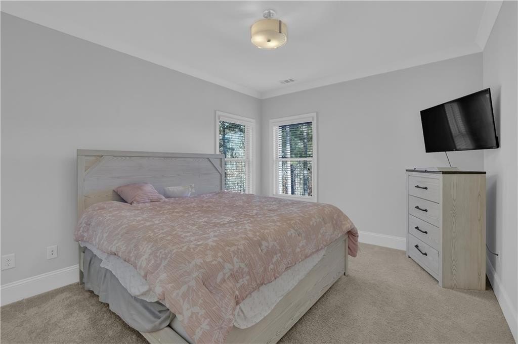 Located in the gated Tapestry Ridge community, this spacious Lawrenceville luxury home offers 5 bedrooms and 4.5 baths, including a master suite on the main level. Recently built in 2018, this sprawling home offers a lot of privacy and features an open floor plan with spacious living areas on both the main and lower levels. On the main level you'll find a Jack and Jill split bedroom floor plan with the master suite on the opposite side of the house with access the covered porch. The second level has a huge bonus room with a guest suite and a large full bathroom. The finished basement also includes a second kitchen, home theater, fitness room, large guest bedroom, full bathroom, workshop area and a covered patio. Additional highlights include a three-car garage, custom closets, and a large laundry room. Convenient to The Shoppes at Webb Gin, Sugarloaf Mills, Tribble Mill Park, and Alexander Park. Located in the desirable Archer High School district.