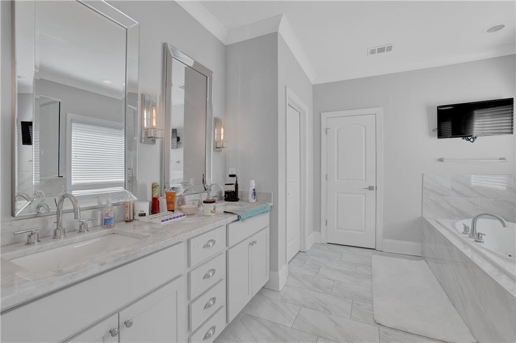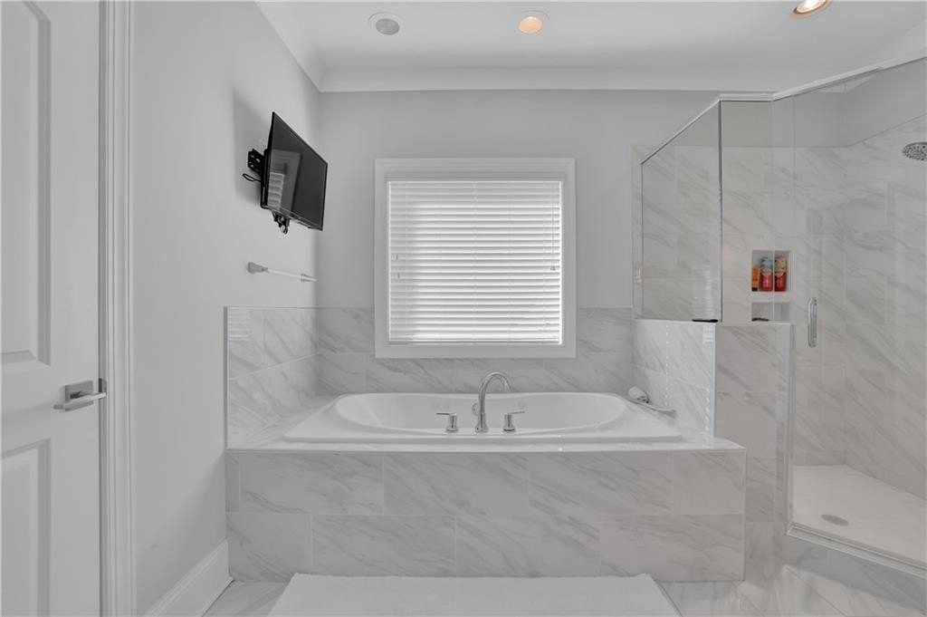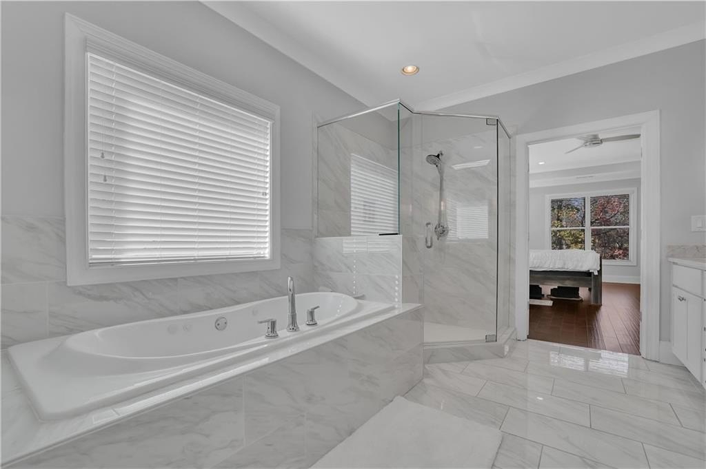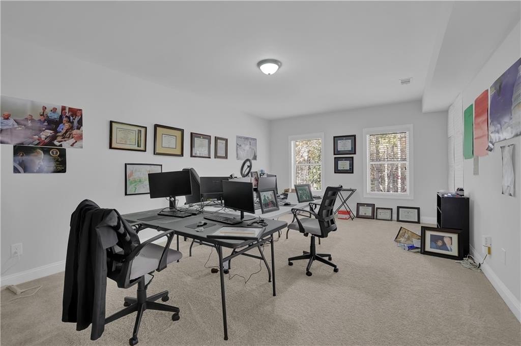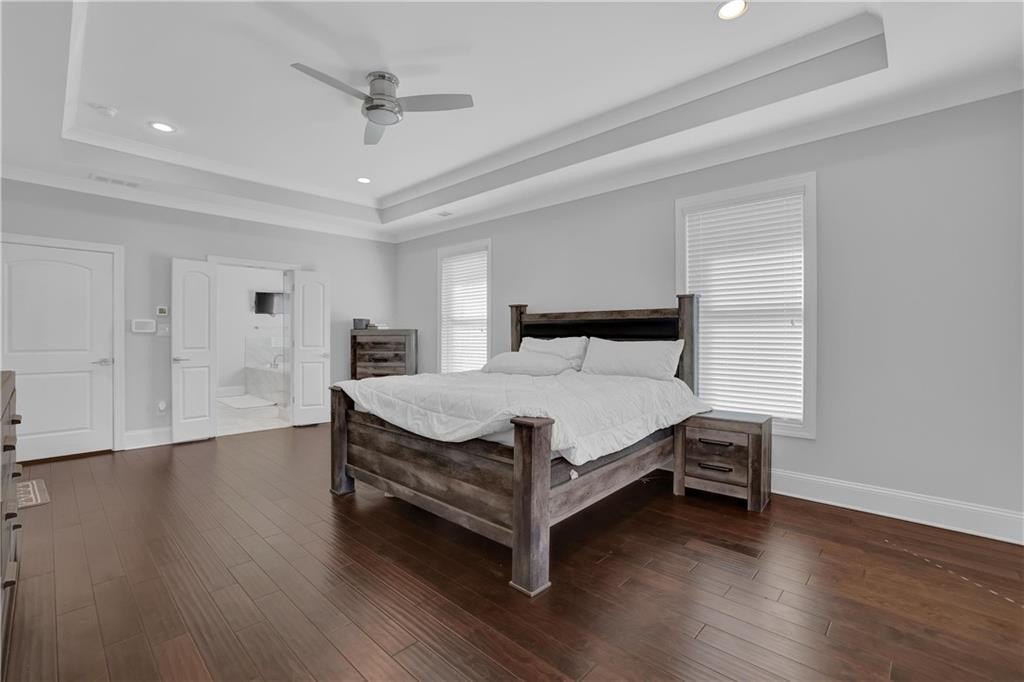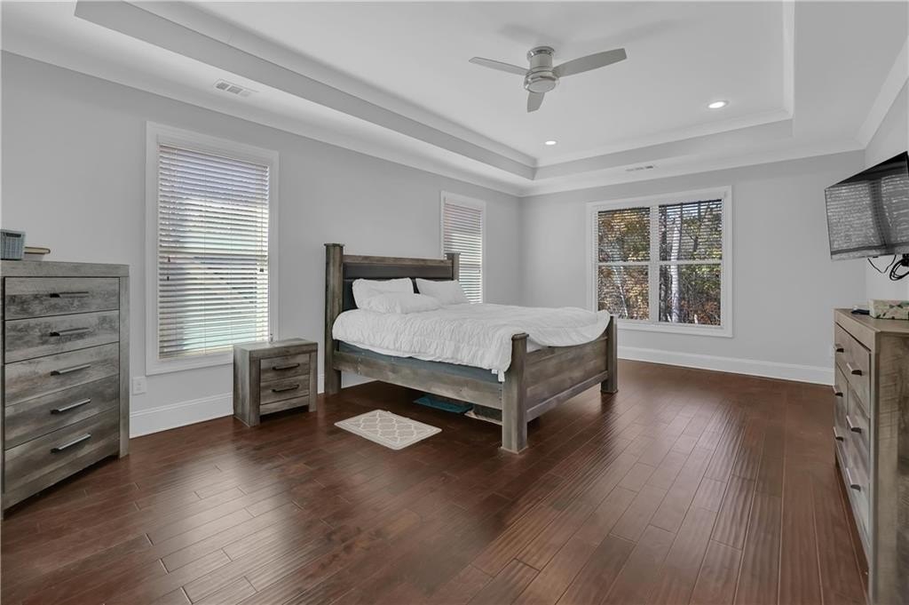 Located in the gated Tapestry Ridge community, this spacious Lawrenceville luxury home offers 5 bedrooms and 4.5 baths, including a master suite on the main level. Recently built in 2018, this sprawling home offers a lot of privacy and features an open floor plan with spacious living areas on both the main and lower levels. On the main level you'll find a Jack and Jill split bedroom floor plan with the master suite on the opposite side of the house with access the covered porch. The second level has a huge bonus room with a guest suite and a large full bathroom. The finished basement also includes a second kitchen, home theater, fitness room, large guest bedroom, full bathroom, workshop area and a covered patio. Additional highlights include a three-car garage, custom closets, and a large laundry room. Convenient to The Shoppes at Webb Gin, Sugarloaf Mills, Tribble Mill Park, and Alexander Park. Located in the desirable Archer High School district.