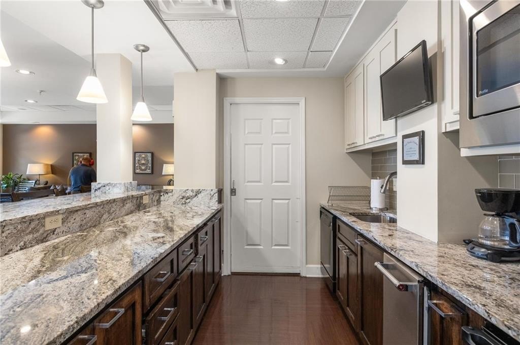 Discover your peaceful and secure retreat in Decatur Square. This oversized 2-bedroom, 2-bathroom, plaza-level condominium is the ultimate "no-stairs" hidden gem for single-level living. Enjoy unmatched accessibility: Take the zero-stair entry from your two assigned spots in the secure parking garage directly to your condo that boasts a wonderful and large outdoor balancy. This unit is move-in ready and low maintenance with brand new carpet and flooring and fresh paint. Walk just one block to everything you need: doctors, dentists, pharmacies, salons, the library, and excellent restaurants. You can truly leave the car in the garage! The home is spacious and comfortable, featuring two full bathrooms and a private, covered patio with a sliding screen door, perfect for enjoying cool breezes. Enjoy resort-style amenities right down the hall, including the community swimming pool, outdoor grilling area, and a well-equipped fitness center. Plus, enjoy easy walks to the Senior Center and the MARTA station for stress-free travel. This is your chance for carefree, quality living in a well-managed building.