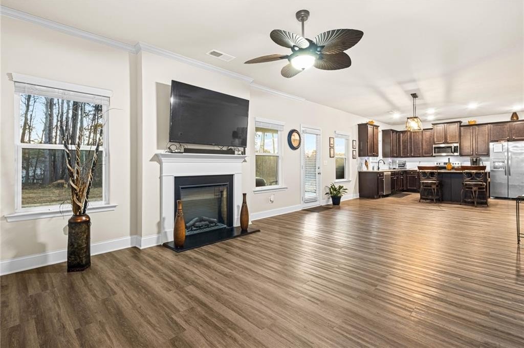 Welcome to 61 North Village Circle—where comfort meets capability. This 4-bedroom, 2.5-bath home in Rydal offers space, style, and smart design—just minutes from I-75. Step into a bright two-story foyer and upgraded wood flooring that flows through a wide-open family room and a kitchen built to perform: stainless steel appliances, oven, granite countertops, breakfast island, and walk-in pantry. The formal dining room features coffered ceilings and detailed molding, adding a refined touch without sacrificing warmth. Upstairs, the oversized master suite delivers.