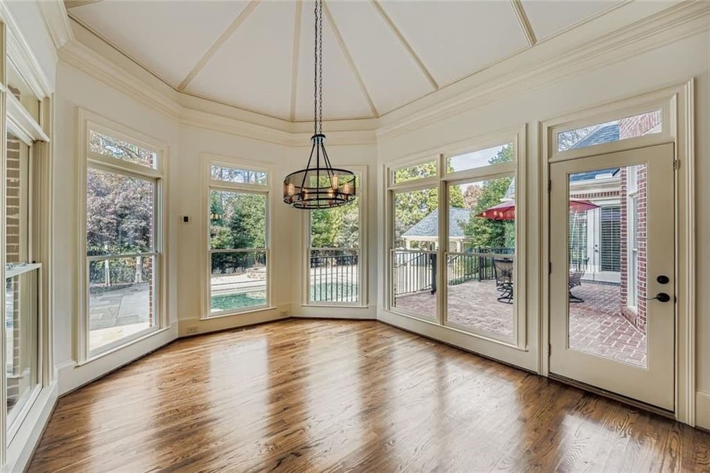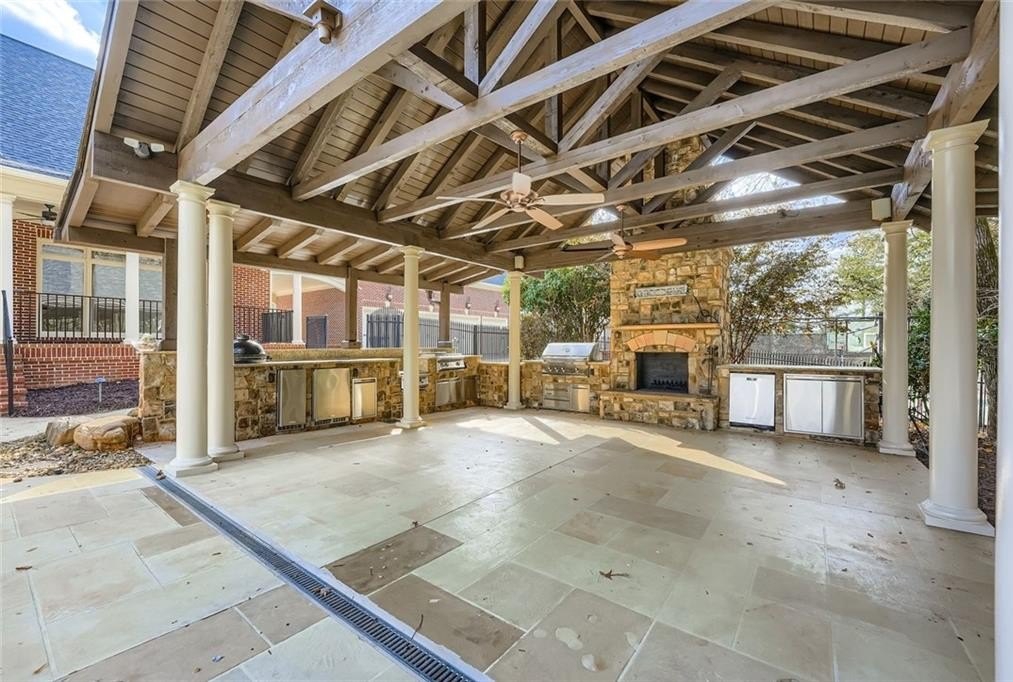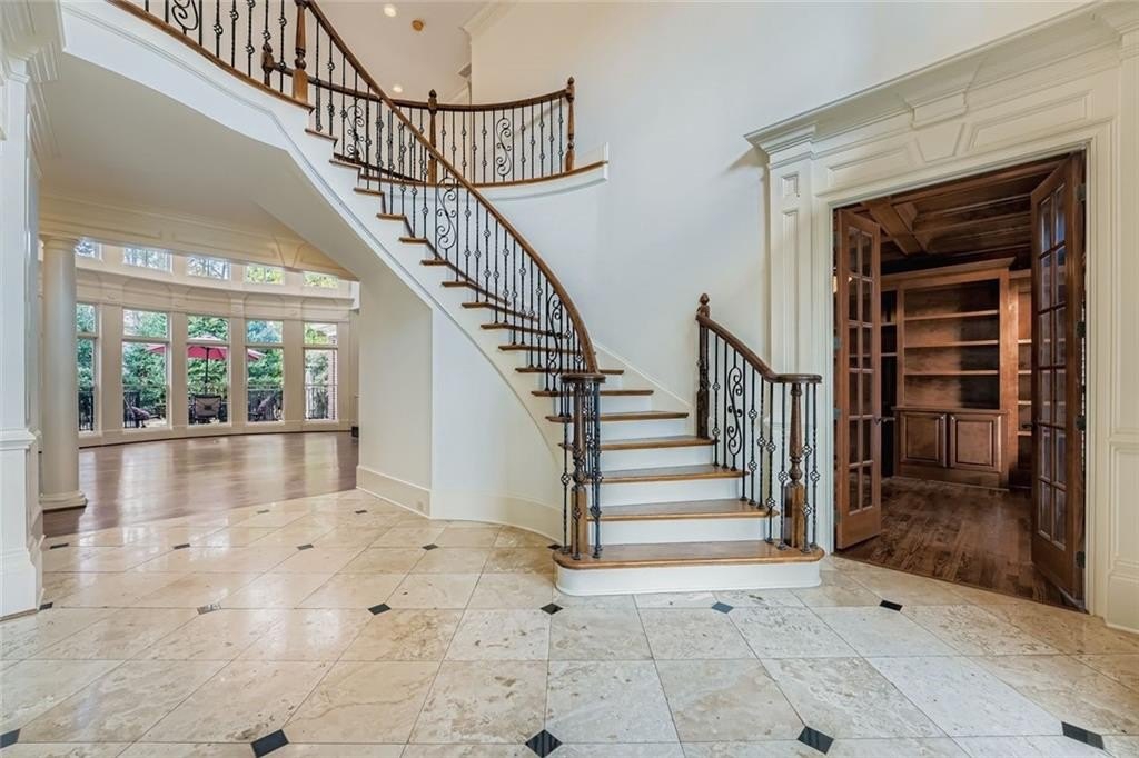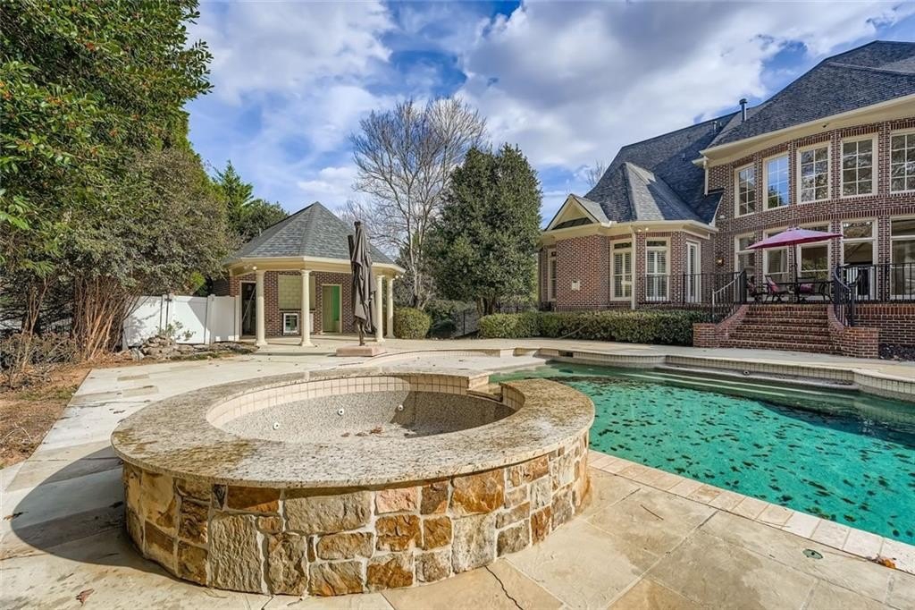 Stunning Roswell gated estate situated over 3 private acres, ideally located just minutes from Roswell’s top tier shopping, schools, dining, and parks. This one-of-a-kind property offers unmatched privacy and flexibility—perfect for extended guests or multigenerational living. The main level showcases a chef’s kitchen equipped with a Sub-Zero refrigerator, Thermador appliances, a generous bar, and an inviting eat-in area. The kitchen flows seamlessly into a gorgeous keeping room framed by a stacked-stone fireplace. Additional main-floor highlights include a spacious family room, an elegantly appointed dining room, and a richly paneled executive-style library/office complete with built-in shelving and a wet bar with refrigerator. The primary suite and an additional bedroom are also conveniently located on the main level. The terrace level offers exceptional living and entertainment space, including a theatre room, exercise room, two bedrooms, a full bath, bar area, and flexible-use space. These spaces feature their own exterior entries, ideal for guests or private living quarters. A standout feature of this estate is the large apartment situated above the 2-stall gentleman’s barn. This charming living space includes a well-appointed kitchen, bedroom, bathroom, and spacious keeping room—perfect for caretakers, guests, or independent living. The fenced, level pasture provides easy access to the barn via horseback or vehicle. Car enthusiasts and hobbyists will appreciate the seven large enclosed garages, offering abundant multi-use space for workshops, equipment, hobbies, or an extensive car collection. Outside, the resort-like grounds are enhanced by extensive landscape lighting and include a lighted sports court, a spectacular covered outdoor kitchen pavilion featuring its own stacked-stone fireplace, Big Green Egg, multiple stoves, warming drawer, grill, ice maker, and even a dishwasher. The pavilion overlooks the saltwater pool and Jacuzzi, and is complemented by a pool house complete with a full bath and storage area. A rare Roswell estate offering luxury, privacy, versatility, and unparalleled amenities—truly a retreat of its own.