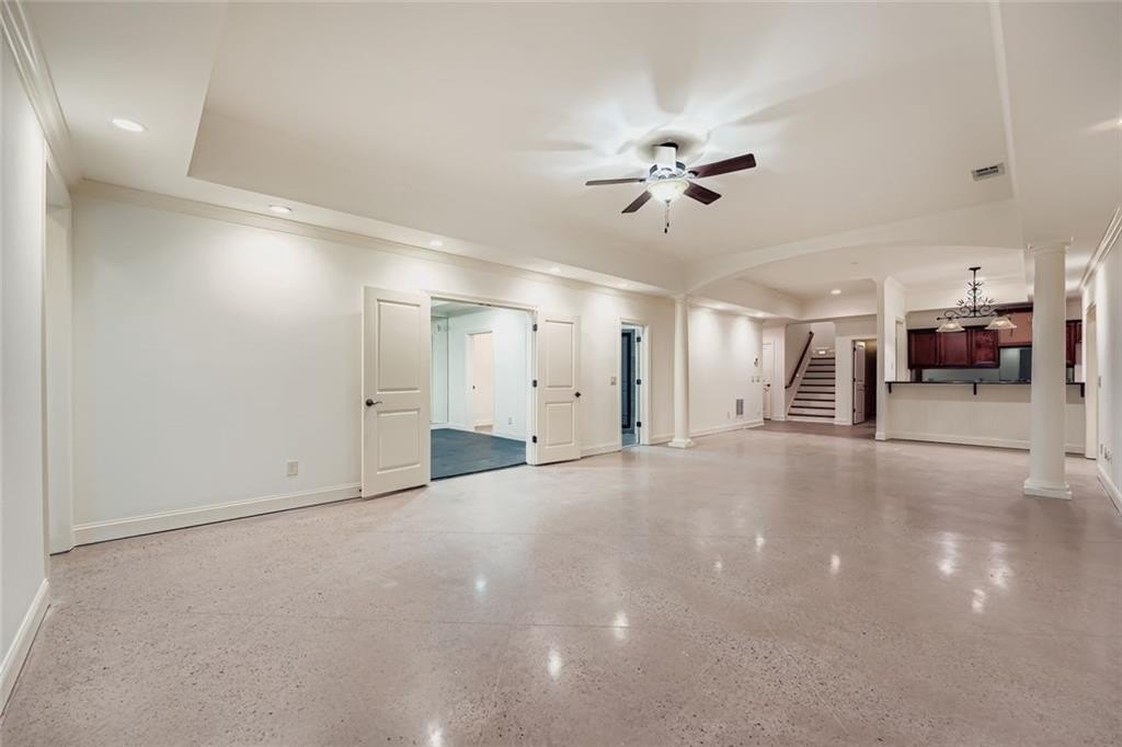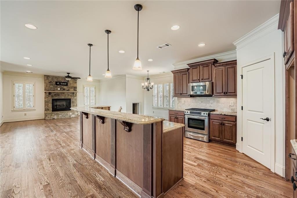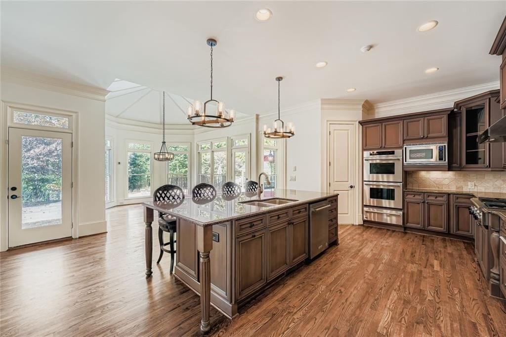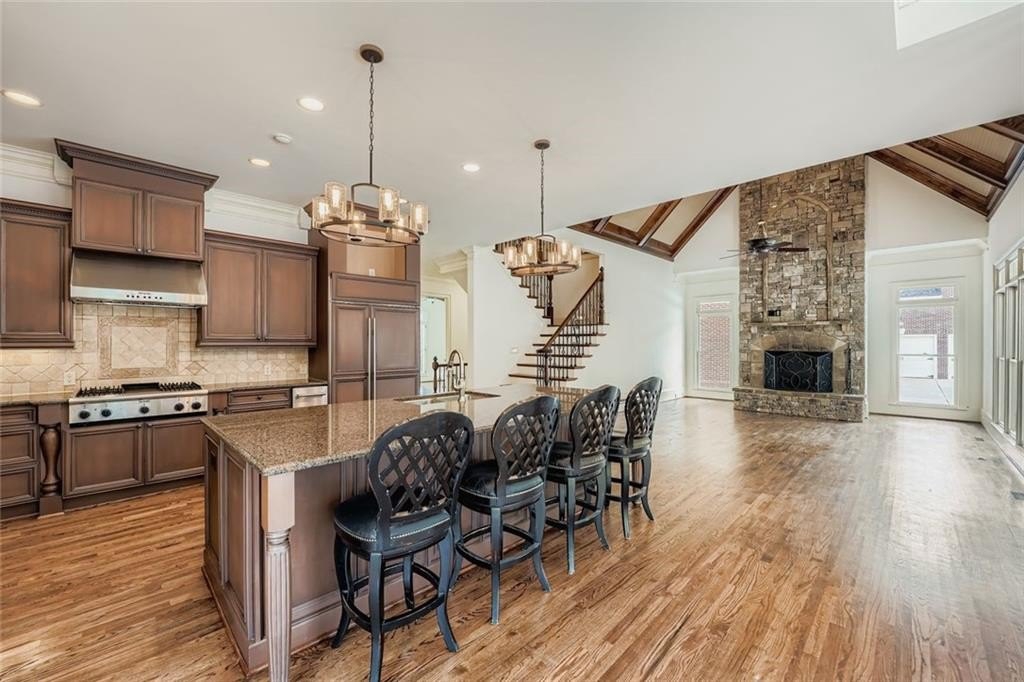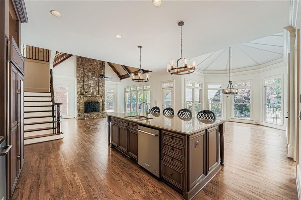 Stunning Roswell gated estate situated over 3 private acres, ideally located just minutes from Roswell’s top tier shopping, schools, dining, and parks. This one-of-a-kind property offers unmatched privacy and flexibility—perfect for extended guests or multigenerational living. The main level showcases a chef’s kitchen equipped with a Sub-Zero refrigerator, Thermador appliances, a generous bar, and an inviting eat-in area. The kitchen flows seamlessly into a gorgeous keeping room framed by a stacked-stone fireplace. Additional main-floor highlights include a spacious family room, an elegantly appointed dining room, and a richly paneled executive-style library/office complete with built-in shelving and a wet bar with refrigerator. The primary suite and an additional bedroom are also conveniently located on the main level. The terrace level offers exceptional living and entertainment space, including a theatre room, exercise room, two bedrooms, a full bath, bar area, and flexible-use space. These spaces feature their own exterior entries, ideal for guests or private living quarters. A standout feature of this estate is the large apartment situated above the 2-stall gentleman’s barn. This charming living space includes a well-appointed kitchen, bedroom, bathroom, and spacious keeping room—perfect for caretakers, guests, or independent living. The fenced, level pasture provides easy access to the barn via horseback or vehicle. Car enthusiasts and hobbyists will appreciate the seven large enclosed garages, offering abundant multi-use space for workshops, equipment, hobbies, or an extensive car collection. Outside, the resort-like grounds are enhanced by extensive landscape lighting and include a lighted sports court, a spectacular covered outdoor kitchen pavilion featuring its own stacked-stone fireplace, Big Green Egg, multiple stoves, warming drawer, grill, ice maker, and even a dishwasher. The pavilion overlooks the saltwater pool and Jacuzzi, and is complemented by a pool house complete with a full bath and storage area. A rare Roswell estate offering luxury, privacy, versatility, and unparalleled amenities—truly a retreat of its own.