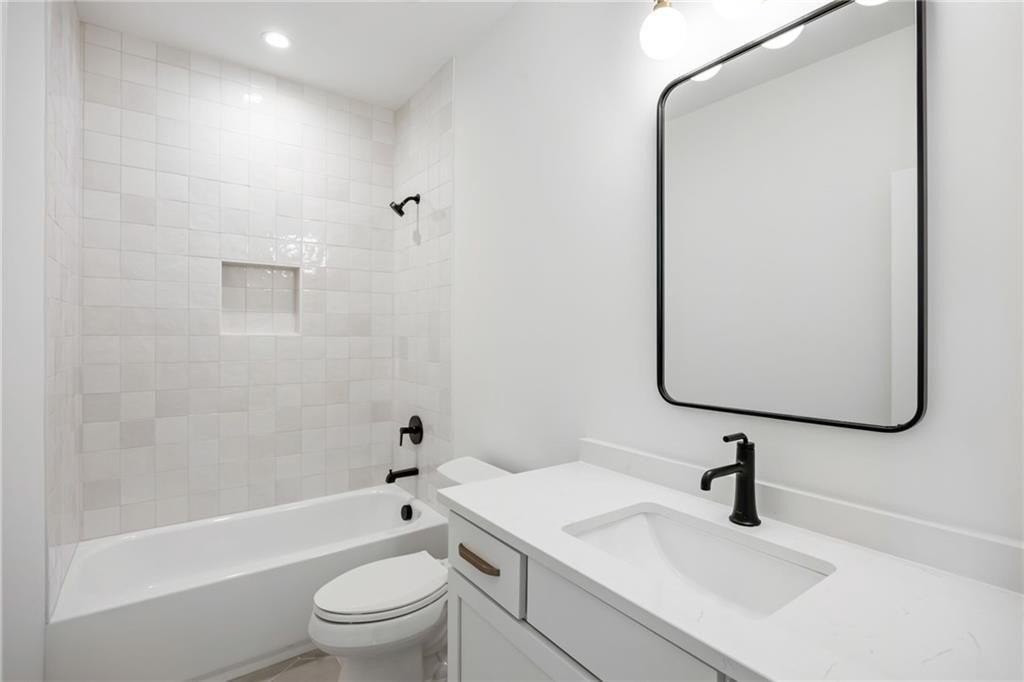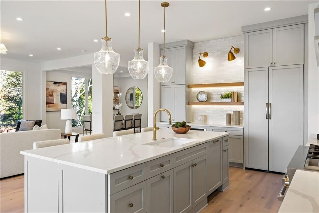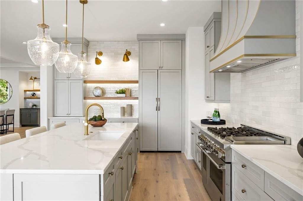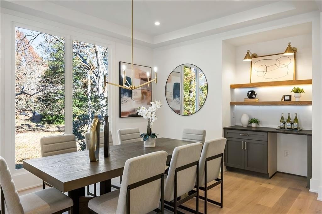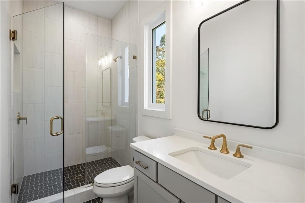 Welcome to 1887 Harts Mill Road. Striking curb appeal showcases a stained wood double front doors and windows that wrap around two sides of the front study. Enter into a wide foyer with lighting and trim accents that flows into a beautiful and open layout with incredible afternoon sunlight. The main level offers a high-end kitchen with a 48” gas range, microwave drawer, cabinet matching panels on the refrigerator and dishwasher, a long seating island, custom vent hood and designer lighting. Enjoy loads of cabinet space and a big walk-in pantry. A dedicated and cozy breakfast area is positioned perfectly for backyard views and warming sunlight. The kitchen is open to the living room accented by a quartz and stained wood surround fireplace and a spacious dining room displaying a custom bar. Dual slider doors disappear into the back wall creating a huge opening that walks directly onto the covered back porch with a 2nd fireplace and seating for outdoor dining, living and more. The covered porch views the backyard which is just a few steps away. In addition to the main level study, there is a bed and bath suite tucked away very privately on this floor. A mudroom with custom cabinet and powder room with a custom, reeded panel vanity and wall-mounted faucet complete the main level. Upstairs, the owner's suite offers a vaulted ceiling and spa bath set up, distinct tile finishes, freestanding tub, 2 walk-in closets and double vanities with additional make up counter space. 3 additional en-suite bedrooms offer customized bathroom finishes. Expand your living space with a nearly 2000 square foot daylight basement! Easy access to incredible dining options, shopping, grocery, highways, Chamblee Rail Trail and Sexton Woods tennis courts, playground and other amenities!