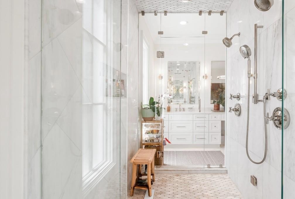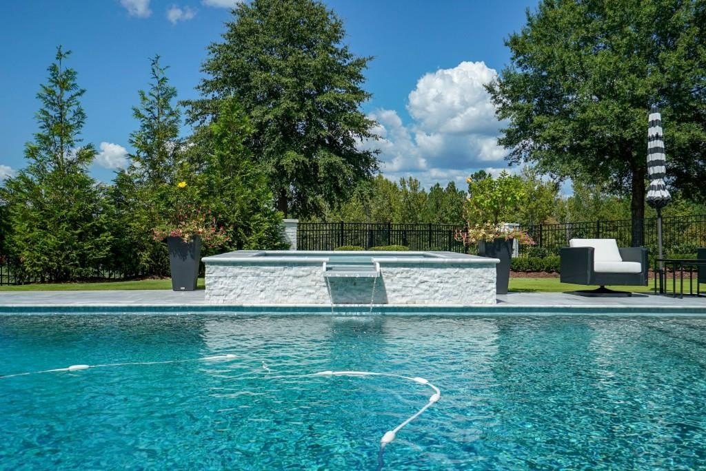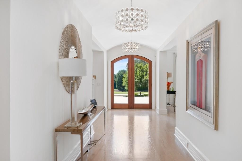 Impeccably maintained home that embodies luxurious finishes, curated spaces, and is designed for relaxing living has a beautiful yard with sparkling pool and fabulous view of the golf course. Sun-filled entry opens to spacious Dining Room/Flex Room with fireplace and overlooks the yard and pool. Wide staircase to all levels and elevator to all levels. Gourmet Kitchen has lots of cabinets for storage space, center island, top-of-the-line appliances, walk-in pantry, additional ovens, and dedicated bar space. Kitchen is open to two-story Great Room with fireplace and large windows that overlook yard and pool, and opens out to covered back porch. Private Main level Owners Suite opens out to backyard and includes a fireplace, two walk-in closets with built-ins, and a luxurious bathroom with double vanities, separate dressing/vanity area, soaking tub, heated towel rack, and spa shower. Main level Laundry Room includes dog washing area. Upper level is amazing and includes four bedroom suites - each of which includes a private bathroom and walk-in closet. A spacious laundry room is also located upstairs, as well as a storage/craft/exercise room. Walk-up attic staircase. Finished terrace level features a custom-built bar area, game area, family room, finished room that would be ideal for a future theater room, full bedroom suite and full bathroom. Easy access to the Clubhouse, practice green, and amenities. Gated community. Close to grocery stores, restaurants, Greenway, and GA 400.