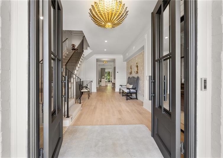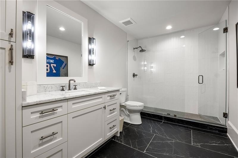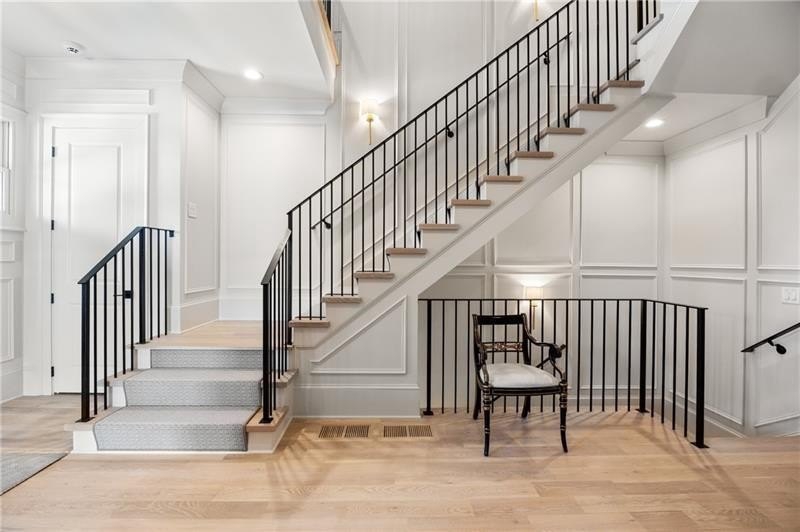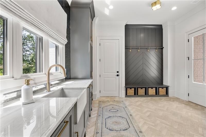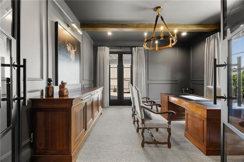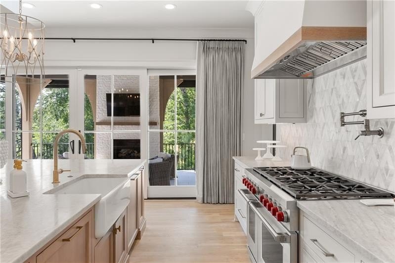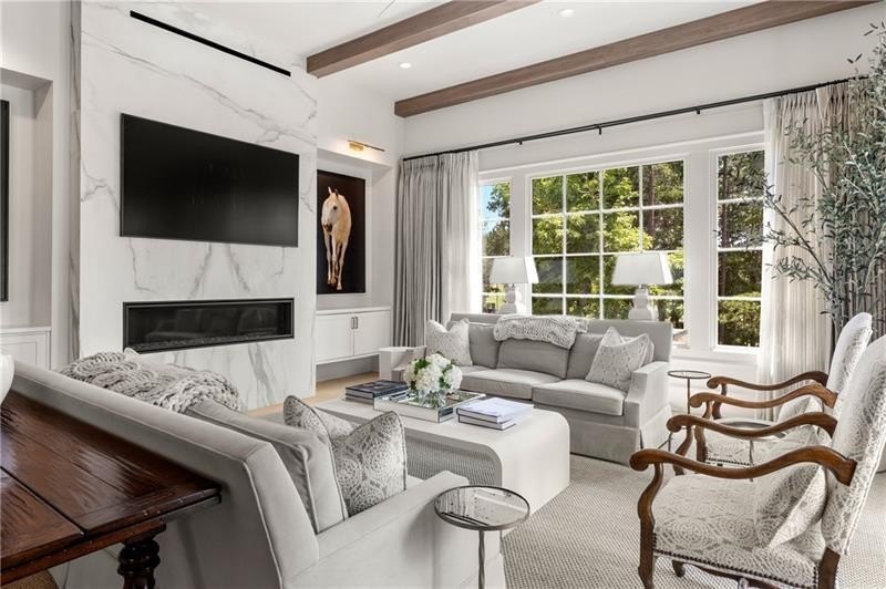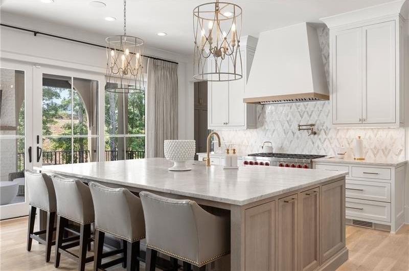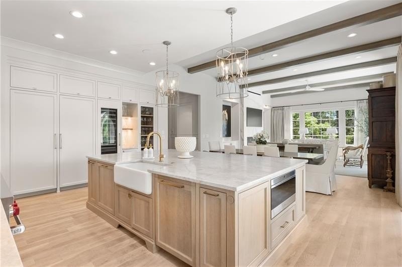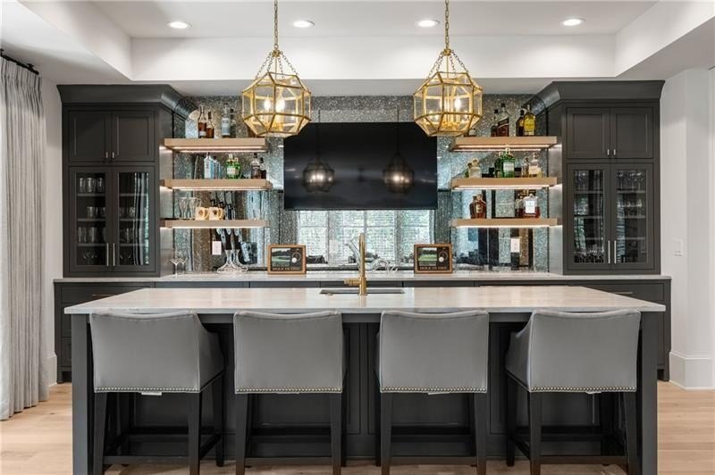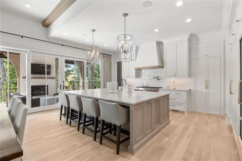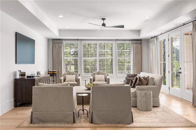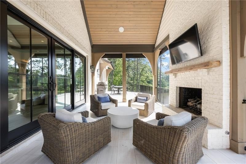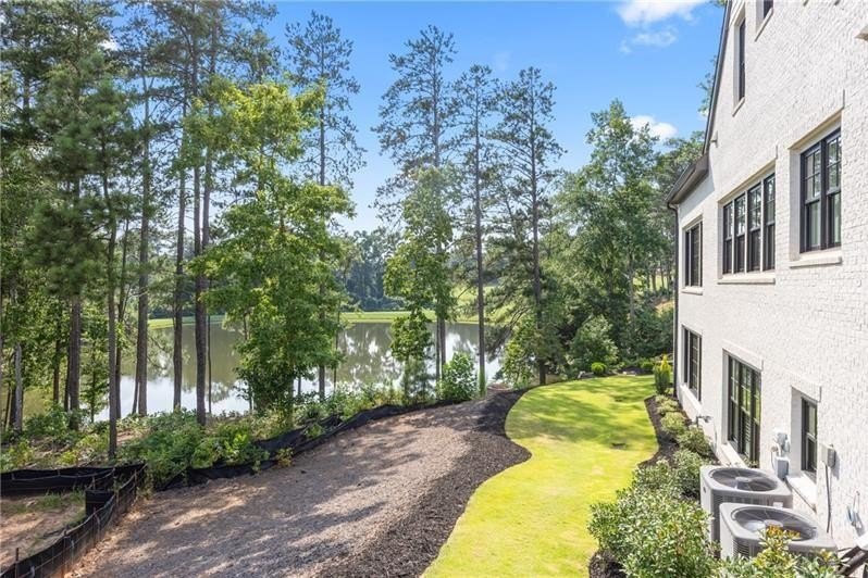 Perfectly situated on a private cul-de-sac, this charming brick home is one of only two residences overlooking a spring-fed pond between the 3rd and 4th golf holes of The Manor's Tom Watson designed course. Across from a community greenspace, the setting offers unmatched privacy and tranquility in one of the areas most prestigious gated neighborhoods. Inside, custom iron doors open to elegant living spaces including a private office with french doors to an outside porch, beautiful foyer, and a gourmet kitchen with custom island, pantry, a scullery with a 2nd dishwasher, top-tier appliances, and wine refrigeration. The dining area and fireside great room flow seamlessly to a partially covered deck with an outdoor fireplace, and serene pond views. Main level Laundry Room. The main level primary suite features spectacular views, luxurious bathroom with double vanities, dedicated vanity area, and spa-like shower as well as a custom-designed closet with built-ins. The upper level offers four ensuite bedrooms - including one that could be a secondary master, and another laundry room. The terrace level impresses with a full bedroom suite/exercise room with views of the water, full bathroom and walk-in closet, family room with doors that open to patio, extraordinary bar with glass wine wall, half bath, and unfinished storage space. The entire terrace level opens out to a back covered patio with fireplace and private yard. Designer upgrades include a 3-level elevator, custom trim and lighting, sound system, epoxy-coated 3-car garage, and advanced security. Unparalleled neighborhood amenities include indoor and outdoor tennis courts, indoor and outdoor pools, two Clubhouses, fitness center, 18-hole Golf Course, sidewalks throughout. Gated Neighborhood. A rare combination of elegance, modern convenience, and luxury in one of The Manor's most coveted locations. Close to grocery stores, restaurants, Greenway, and access to GA 40.