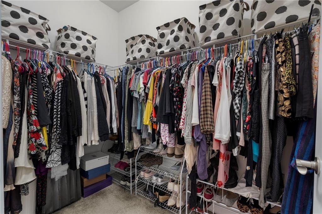 Upstairs, the primary suite impresses with space for a king bed, a spa-like bath with dual vanities and large shower, and a walk-in closet. A secondary bedroom with an ensuite bath and walk-in closet, plus a laundry closet complete this level.