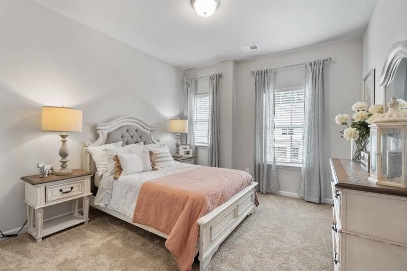 Move in Ready! The Maddux II floorplan located in Smith Douglas Homes Franklin Manor community. EXTRA Special incentives available with use of preferred lender on this home. Location, Location, Location! Enjoy lots of natural light in our beautiful Maddux II. The spacious kitchen with granite countertops, a large peninsula with counter seating, beautiful upgraded cabinetry including 42" uppers AND an upgraded appliance package. Open to the fireside family room with a linear fireplace. The open concept provides access to the rear patio where you'll find a comfortable outdoor living area or spending time outdoors.Upgraded Vinyl Plank flooring throughout the main level. A wide staircase with iron rails leads to the secondary bedrooms and primary suite with a tray ceiling. The primary bath has a double vanity and large shower. Laundry room with included washer and dryer. Full house Blinds and screens included. Nine foot ceiling heights on both levels. Lawn maintenance is included in your HOA! Photos of home some furnished photos representative of plan. Extra special seller incentives with use of preferred lender. Tour anytime with our NTERNOW self guided lockbox