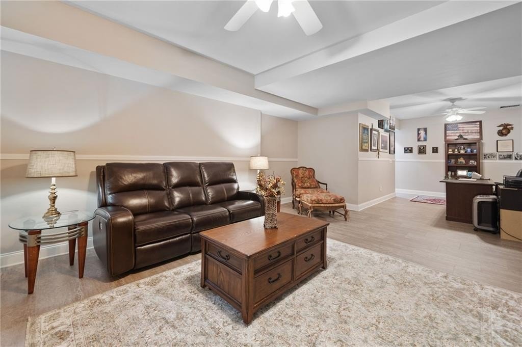 Beautiful, Ranch-Style Home with full, finished Basement and Bonus Room. Home is on a private, 4-Home drive in a sunny, golf community where kids can ride their bikes safely and neighbors become friends. Step inside to discover light-filled spaces and a welcoming open-concept kitchen perfect for family dinners and weekend brunches. Three spacious Bedroom/Bathroom Suites on the Main Floor, plus a finished Basement offering a fourth Bedroom and Bathroom, Playroom/Gym, Office and Workshop, provide plenty of room for everyone to spread out and grow. If you need more space, the charming upper-level bonus room would make a great extra bedroom, art studio or second office. The backyard is your own private retreat, complete with a cozy fire pit and patio, ideal for s'mores night, relaxing evenings or entertaining under the stars. Just across the street you will find the golf clubhouse and grill, with the community pool, pickleball courts and playground just a few steps away. This home is filled with thoughtful upgrades -- including Plantation Shutters on all Main-floor windows; New carpeting on the basement stairs and updated blinds; Andersen 400 Series Full-View Storm Door; Lenox 18 SEER HVAC system (1 year old) with Aprilaire Humdifier and zoned climate control; ADT Security System with smoke and water leak detectors. Pet-friendly features include an electronic fence and large dog door.