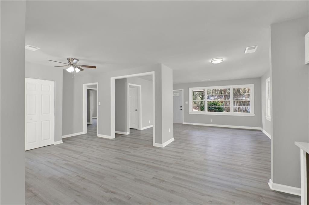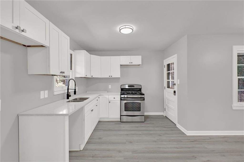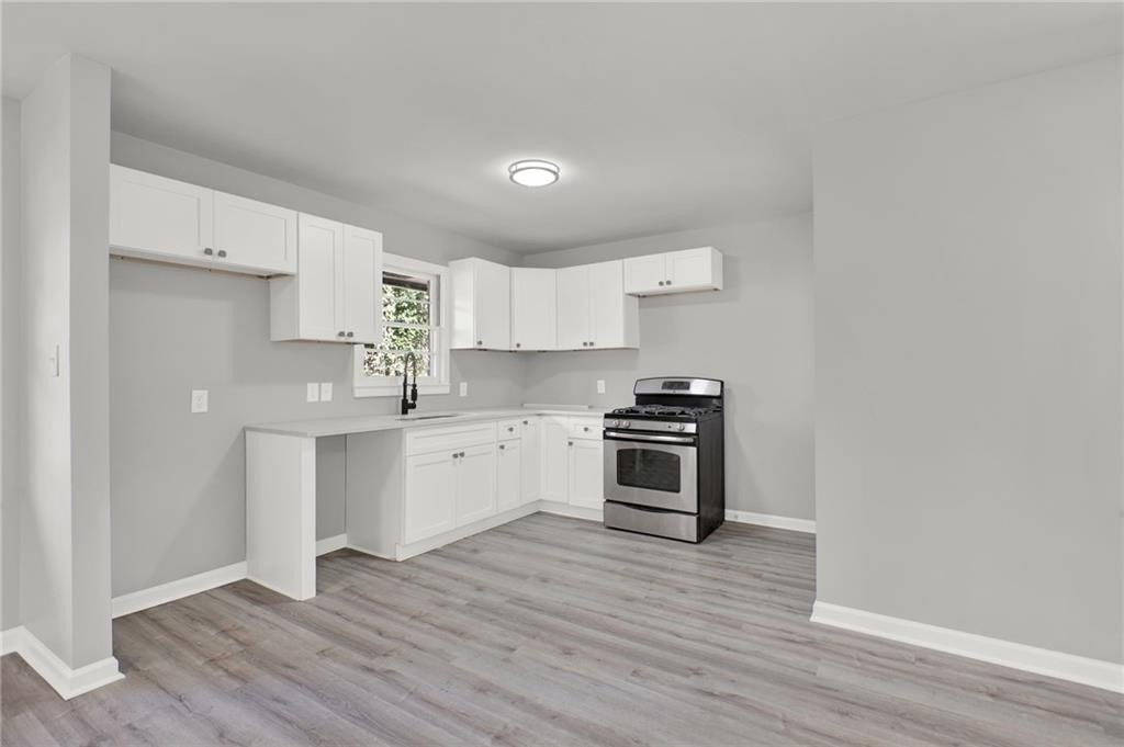 Welcome to this beautifully updated home with 3 bedrooms and 2 bathrooms...MOVE-IN READY!! Offering a perfect blend of comfort and convenience! Inviting front porch provides the perfect spot for a glass of sweet tea or cup of coffee! Open floor plan highlighting new cabinets and new bathrooms! Step inside to find a bright and inviting interior featuring white kitchen cabinetry, sleek stone countertops with a stainless steel gas range, making it a dream for cooking and entertaining. The home boasts a mix of LVP and tile to ensure both style and durability. Outside, enjoy the large backyard, ideal for gatherings, gardening, or simply relaxing. A large, flat driveway adds convenience for parking. Don't miss this fantastic opportunity to own a home with modern finishes and plenty of space. Enjoy the convenient location to schools, Mercedes Benz stadium, Downtown Atlanta, I-285 and I-20! Schedule your showing today.