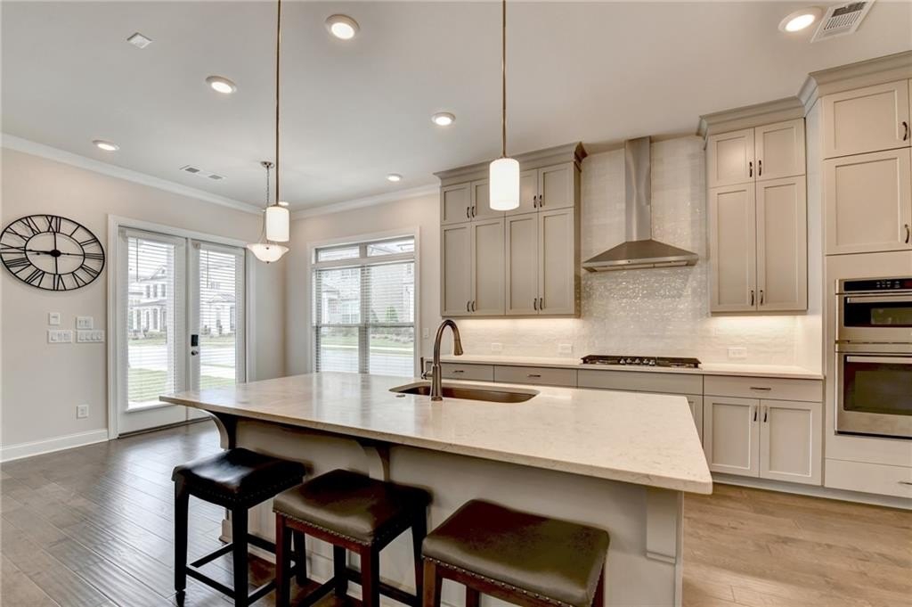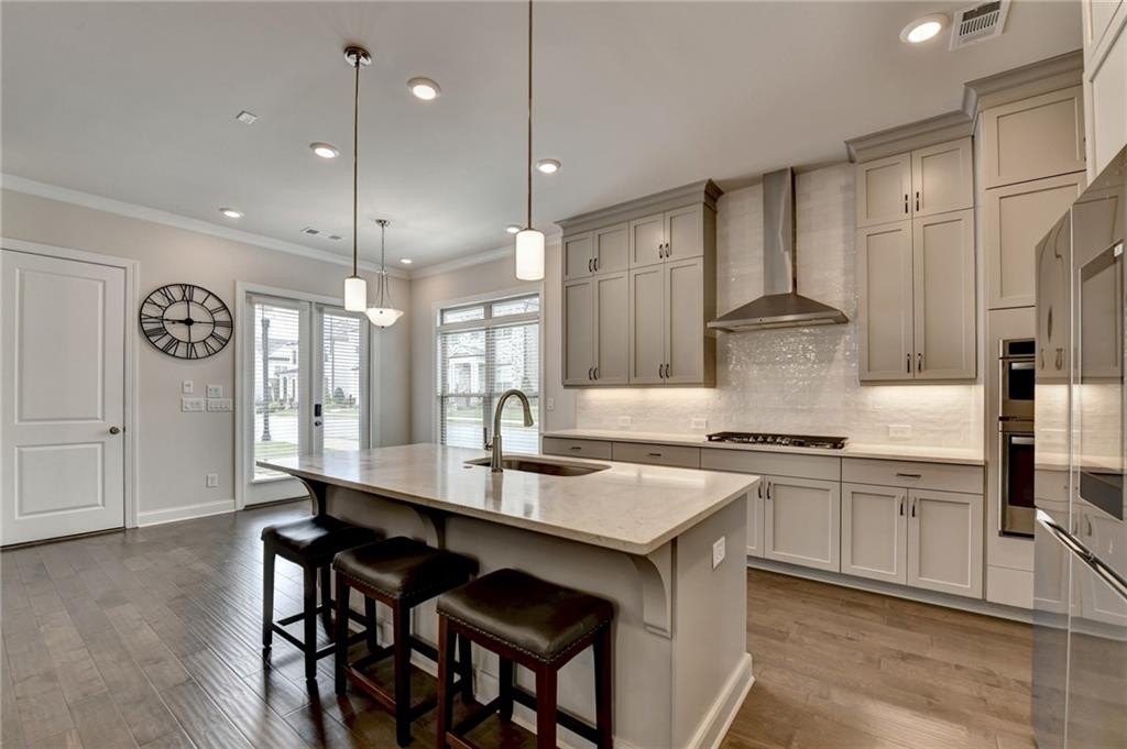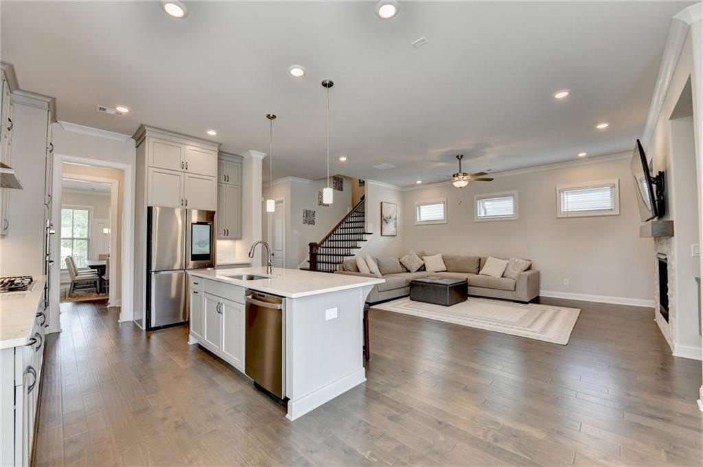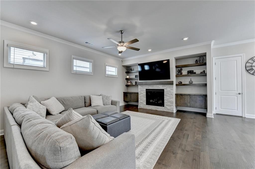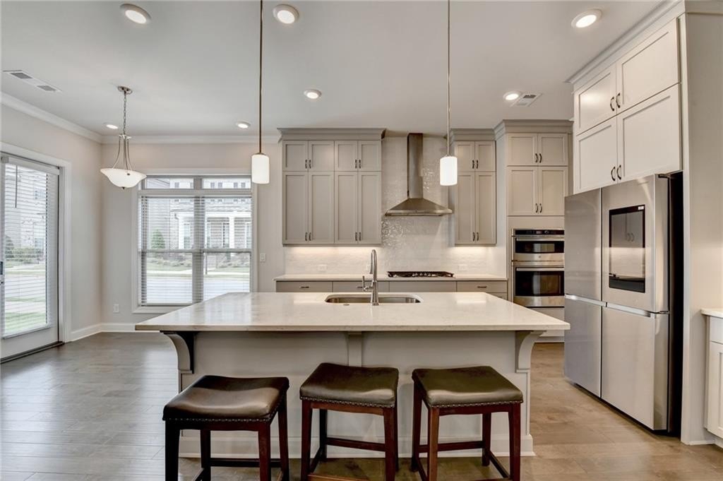 Welcome to this exceptional residence, ideally situated on one of the most sought-after lots in Bellmoore Park—offering picturesque views of the community and the convenience of ample guest parking. Built by The Providence Group, this highly desirable floor plan showcases 10-foot ceilings on the main level and 9-foot ceiling on upstairs, extensive recessed lighting, and a thoughtfully designed layout tailored for modern living. Step into a welcoming foyer that opens to an elegant living room and formal dining area—perfect for both everyday comfort and sophisticated entertaining. At the heart of the home is the gourmet chef’s kitchen, featuring quartz countertops, ceiling-height lancet grey cabinetry, and premium appliances that inspire culinary creativity. Adjacent to the kitchen is a spacious family room, complete with custom built-ins and a cozy fireplace—an inviting space for gathering and relaxation. Upstairs, the luxurious owner’s suite impresses with a tray ceiling and a spa-like en-suite bath, including an oversized frameless glass shower, garden tub, and double vanity. The second level also includes a secondary bedroom with a private en-suite and standing shower, along with two additional bedrooms connected by a Jack-and-Jill bath with separate vanities. The third floor offers a large loft with a full bath—perfect as a media room, playroom, or guest suite. Additional highlights include a rear-entry two-car garage with extra driveway parking. Bellmoore Park is one of Johns Creek's premier gated communities, offering 24/7 security and an exceptional lifestyle. Residents enjoy beautifully maintained sidewalks and resort-style amenities, including a clubhouse, fitness center, event lawn, gardens, swimming pools, tennis courts, playgrounds, and more. HOA dues include full lawn maintenance and trash service for truly low-maintenance living. Located in the award-winning Northview High School district, and just minutes from Avalon, the Greenway, and top-tier dining and shopping—this move-in ready home offers the perfect blend of luxury, location, and lifestyle. If you’re looking to live and play in Bellmoore Park, this is the one!