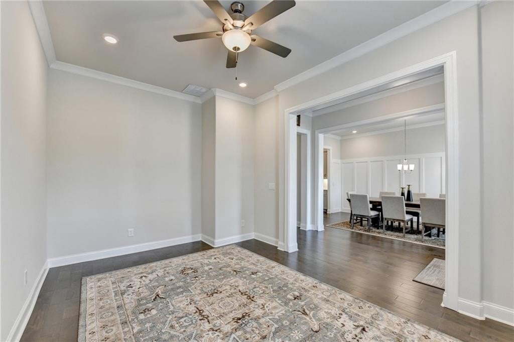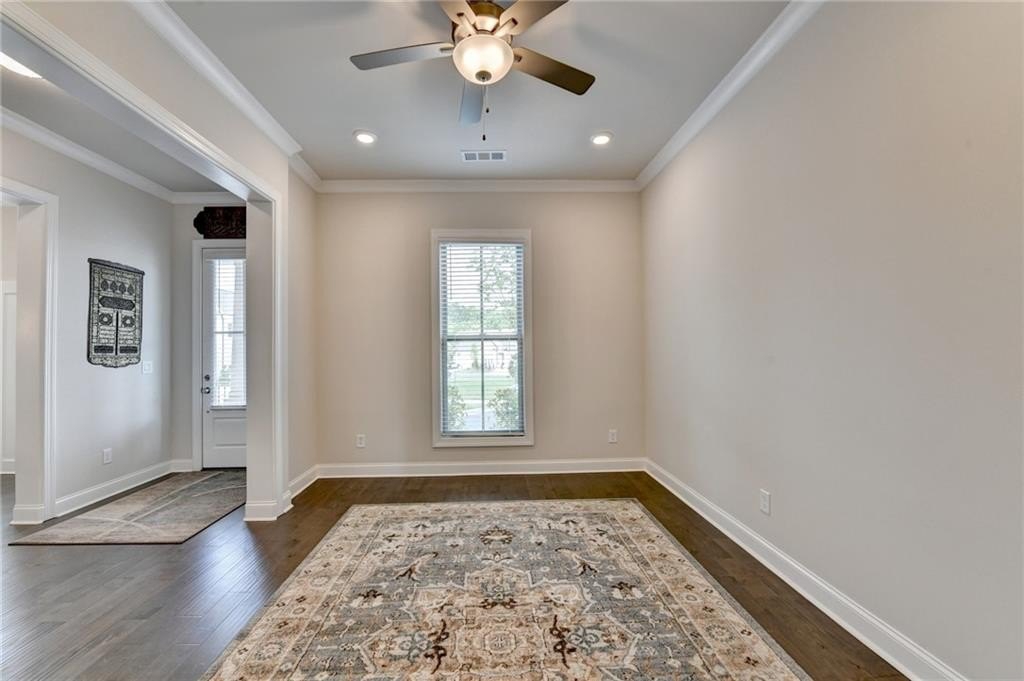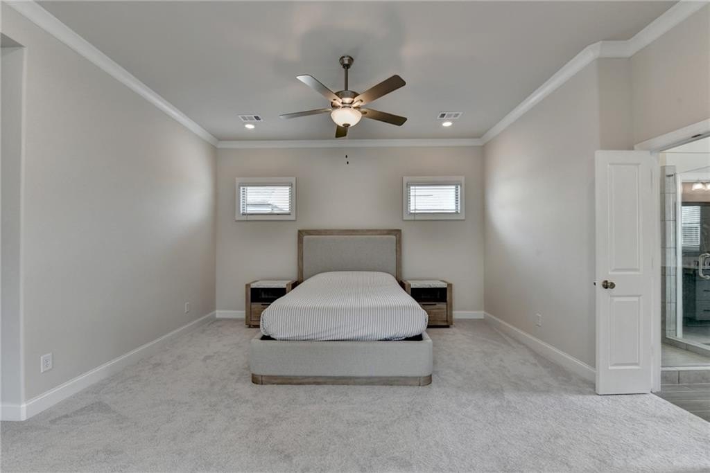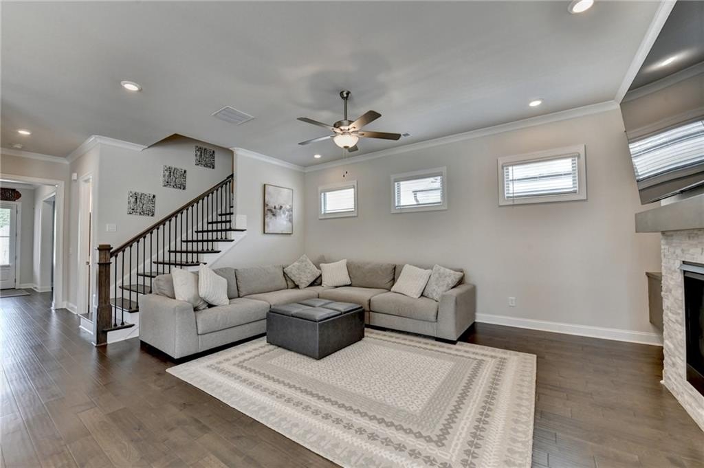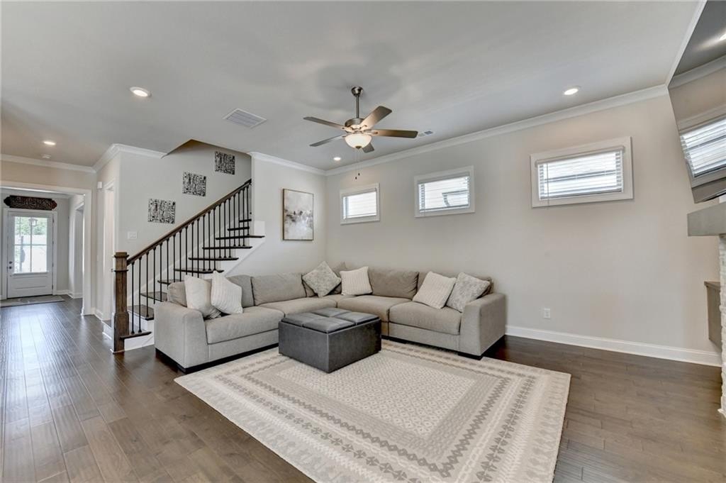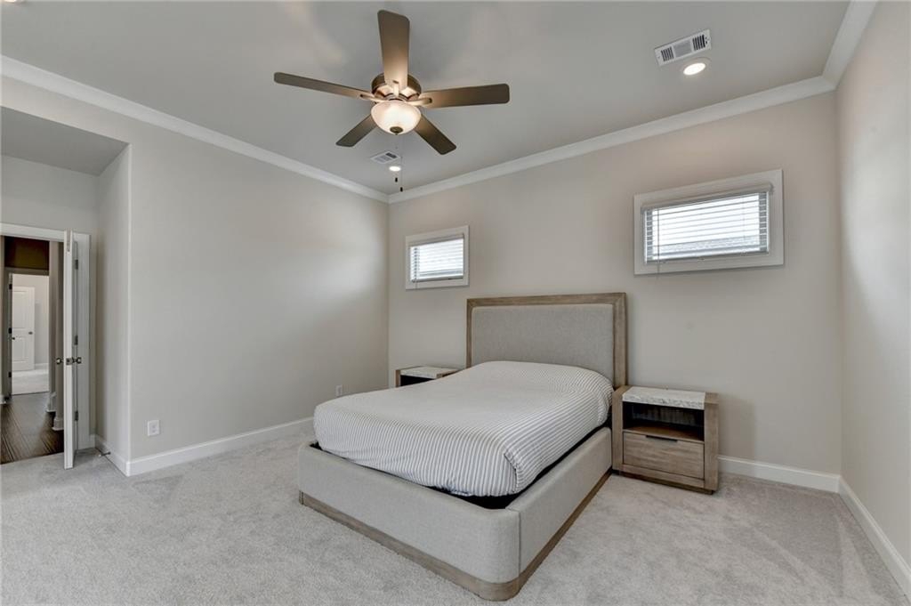 Welcome to this exceptional residence, ideally situated on one of the most sought-after lots in Bellmoore Park—offering picturesque views of the community and the convenience of ample guest parking. Built by The Providence Group, this highly desirable floor plan showcases 10-foot ceilings on the main level and 9-foot ceiling on upstairs, extensive recessed lighting, and a thoughtfully designed layout tailored for modern living. Step into a welcoming foyer that opens to an elegant living room and formal dining area—perfect for both everyday comfort and sophisticated entertaining. At the heart of the home is the gourmet chef’s kitchen, featuring quartz countertops, ceiling-height lancet grey cabinetry, and premium appliances that inspire culinary creativity. Adjacent to the kitchen is a spacious family room, complete with custom built-ins and a cozy fireplace—an inviting space for gathering and relaxation. Upstairs, the luxurious owner’s suite impresses with a tray ceiling and a spa-like en-suite bath, including an oversized frameless glass shower, garden tub, and double vanity. The second level also includes a secondary bedroom with a private en-suite and standing shower, along with two additional bedrooms connected by a Jack-and-Jill bath with separate vanities. The third floor offers a large loft with a full bath—perfect as a media room, playroom, or guest suite. Additional highlights include a rear-entry two-car garage with extra driveway parking. Bellmoore Park is one of Johns Creek's premier gated communities, offering 24/7 security and an exceptional lifestyle. Residents enjoy beautifully maintained sidewalks and resort-style amenities, including a clubhouse, fitness center, event lawn, gardens, swimming pools, tennis courts, playgrounds, and more. HOA dues include full lawn maintenance and trash service for truly low-maintenance living. Located in the award-winning Northview High School district, and just minutes from Avalon, the Greenway, and top-tier dining and shopping—this move-in ready home offers the perfect blend of luxury, location, and lifestyle. If you’re looking to live and play in Bellmoore Park, this is the one!