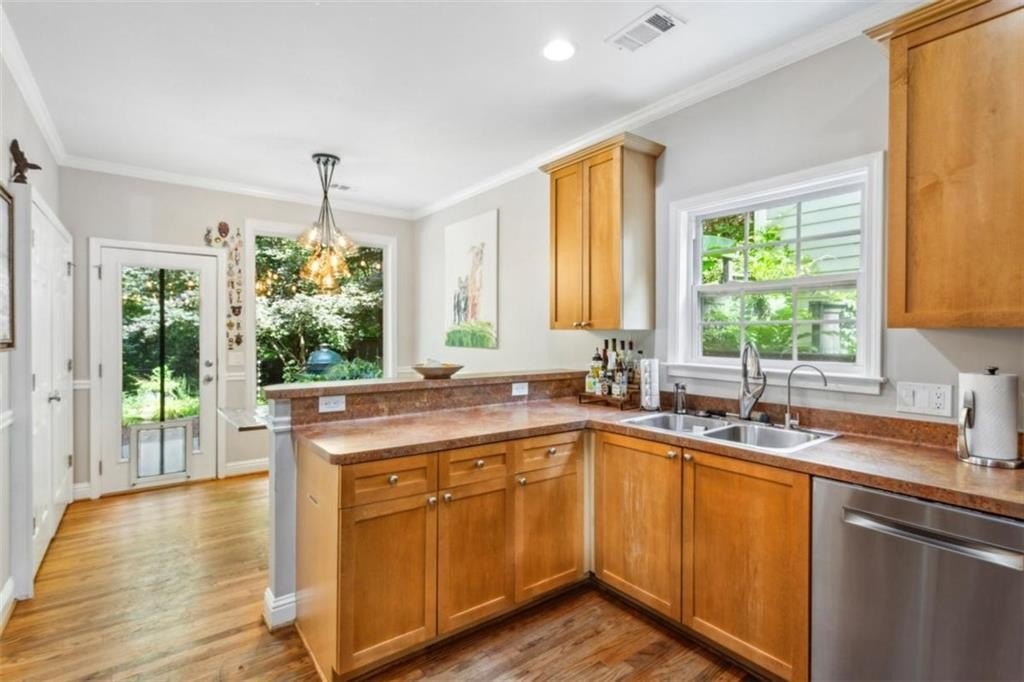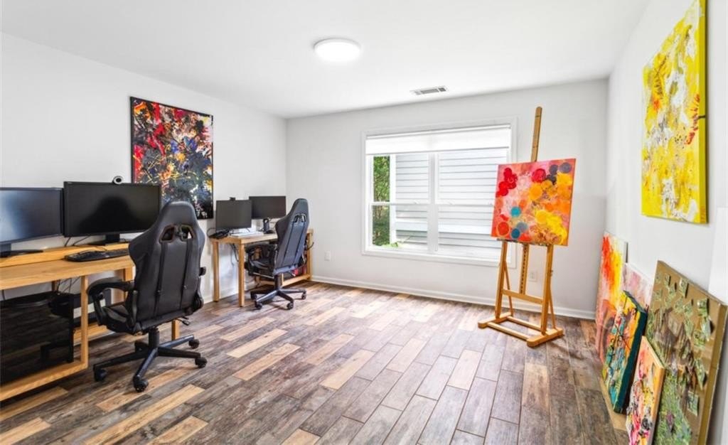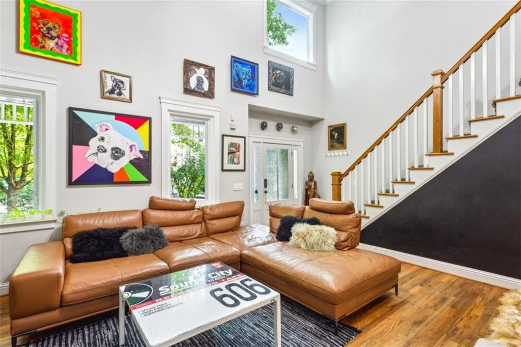 Location, location, location, paired with thoughtful updates and impeccable maintenance make this home the one you'll want. Designed for entertaining, it features a magical backyard complete with a new spa, soft overhead lighting, a spacious outdoor dining area and grilling area with Big Green Egg, a calming water feature, and privacy fence. Your dogs will love the enclosed back yard plus dedicated dog-run on one side of the house, while the opposite side offers raised garden beds, a wall-mounted hose system with a 100-foot hose for watering your planters, and even banana trees soaking up the southern sun. Inside, the home boasts hardwood floors in the vaulted living room, and in the kitchen and dining area. Custom shelves in the living room and mounted 65" Samsung TV. The main-level primary suite features a custom headboard, projector TV with retractable 100" screen, and a spa-like bathroom with separate tub and shower surrounded by tile to the ceiling. Upgraded replacement windows with custom blinds are installed throughout most of the home, including the two upper-level bedrooms. The front windows feature integrated blinds that allow pets to look outside without damaging them. Secondary bedroom #2 includes a queen Murphy bed with a top-tier mattress, a generous double closet, and upgraded windows. Storage is plentiful, with secure plywood floor and lit spaces above the garage and behind both secondary bedrooms, plus a custom drop-down ladder to an additional attic area above the second-floor landing. The garage is a true man cave and workshop in one, featuring a custom epoxy floor, full custom slatwall storage and shelving system, safe, workbench, and Monolift garage door. This home is also a dog-lover's dream, with a custom kitchen door with built-in doggie door, another doggie door from the living room to the enclosed run, and a pre-installed dog gate between the kitchen and living area. Across the street is the dog walker's heaven - Crestlawn Cemetery where the dogs and their hoomans all know each other. Technology abounds with gigabit internet with a Nighthawk distributed satellite Wi-Fi system, full-house CAT-8 Ethernet wiring in all rooms (including TV hookups), and a whole-home security camera system. When it's time to explore, major attractions are just around the corner, including The Works, Topgolf, and fine dining at Bacchanalia. The new largest park in the City of Atlanta, Shirley Franklin Park is minutes away, offering fresh air, skyline views, and connections to the Proctor Creek Trail and Atlanta Beltline. Just half a mile up the street, the Whetstone Creek Trail links you with the Silver Comet Trail, and Westside Village's dining and retail options are an easy stroll up the trail. Convenient to Downtown, Midtown, and Buckhead and all points beyond with easy access to I-75 and I-285.