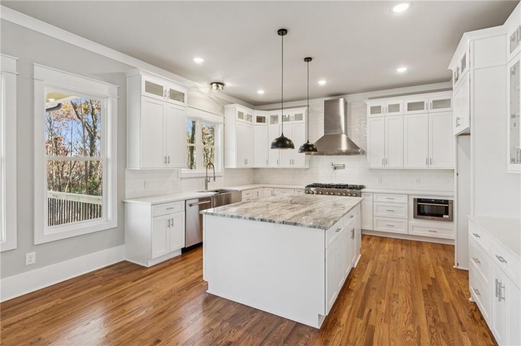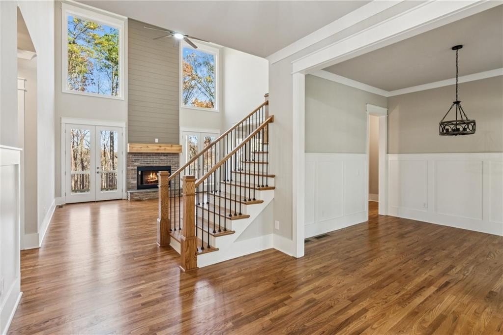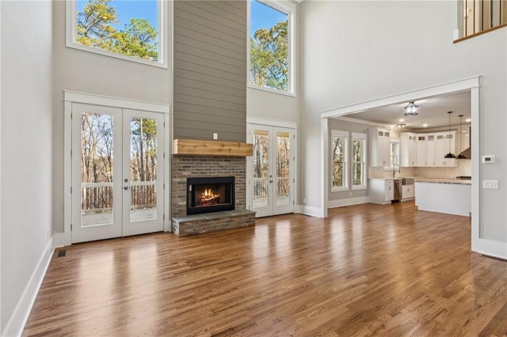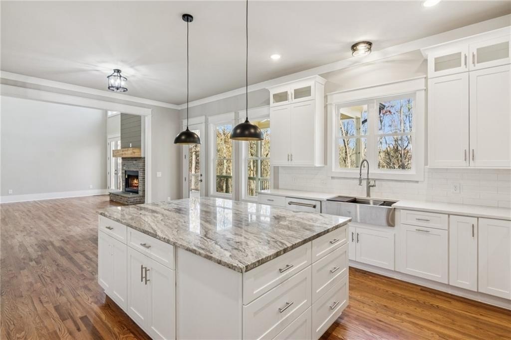 Welcome to 2145 Hwy 9 S! The beautiful mahogany front doors open to a spacious foyer featuring an office or additional bedroom and a full bath. Cooks will love the chef’s kitchen with a 48" double oven range and 8-burner gas cooktop, abundant workspace with custom hard-surface countertops, a large island, and cabinets galore. The kitchen also includes an apron-front sink with a chef accessory kit, a tile backsplash, a built-in wine cooler, and custom built-ins in the pantry and all closets throughout the home. The great room features soaring ceilings, a brick fireplace, and a full wall of windows that fill the space with natural light. Patio doors open to a large covered porch and custom deck overlooking the expansive private backyard. The main-level owner’s suite includes a soaking tub, large tile shower with frameless glass, and a private water closet. Upstairs offers a spacious loft overlooking the great room, two additional bedrooms, and a full bath. Along the hallway, you’ll find another full bath and a custom bookcase that opens to a HIDDEN BONUS ROOM—perfect for a theater, gym, or playroom. The full daylight basement provides endless possibilities, while the oversized, insulated garage door includes a smart-capable automatic opener. Spend weekends exploring nearby gems like Kaya and Etowah wineries, Amicalola Falls, and the scenic Dawson Forest trails.