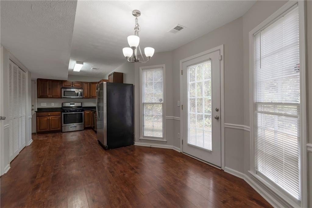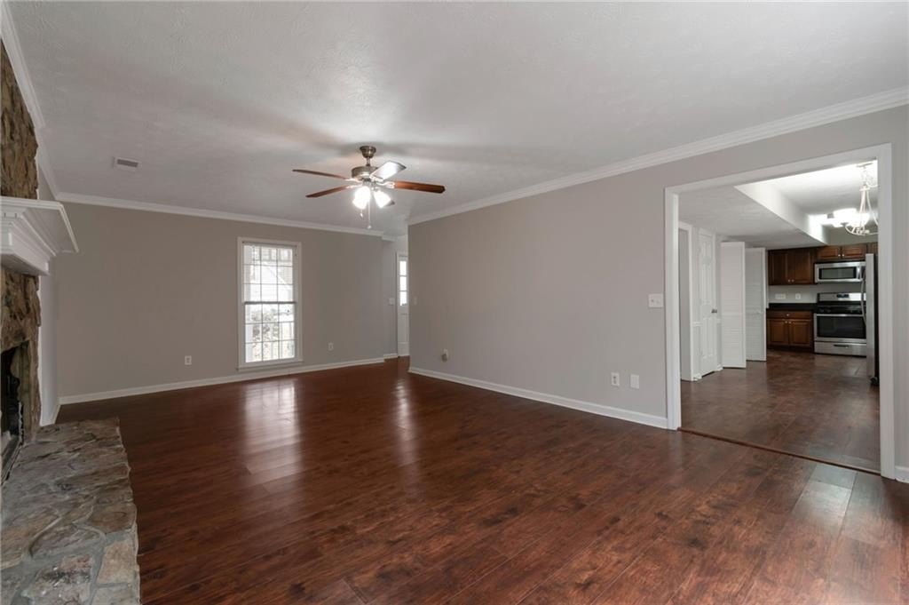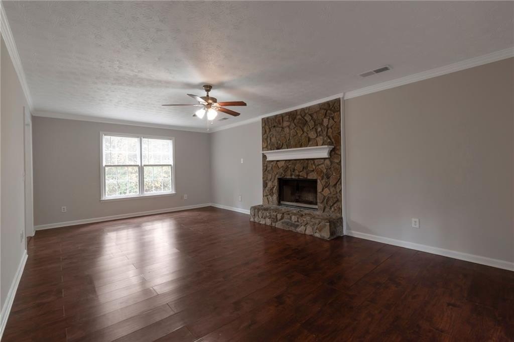 Welcome to 5675 Tunbridge Wells Road, a spacious and beautifully renovated home nestled in a quiet, established Lithonia neighborhood. Boasting approximately 2,188 square feet, this residence offers 3 large bedrooms and 2.5 baths, thoughtfully laid out for both comfort and everyday living. Inside, gleaming hardwood-style floors flow throughout the main level’s open-plan living and dining areas, highlighted by a stacked-stone fireplace that creates a welcoming centerpiece for family gatherings. The heart of the home is a generous eat-in kitchen, equipped with stainless-steel appliances, abundant cabinet space, and sleek black granite countertops — ideal for entertaining or everyday meals.