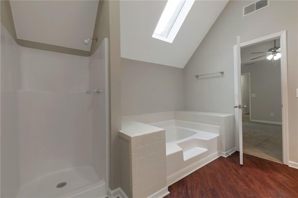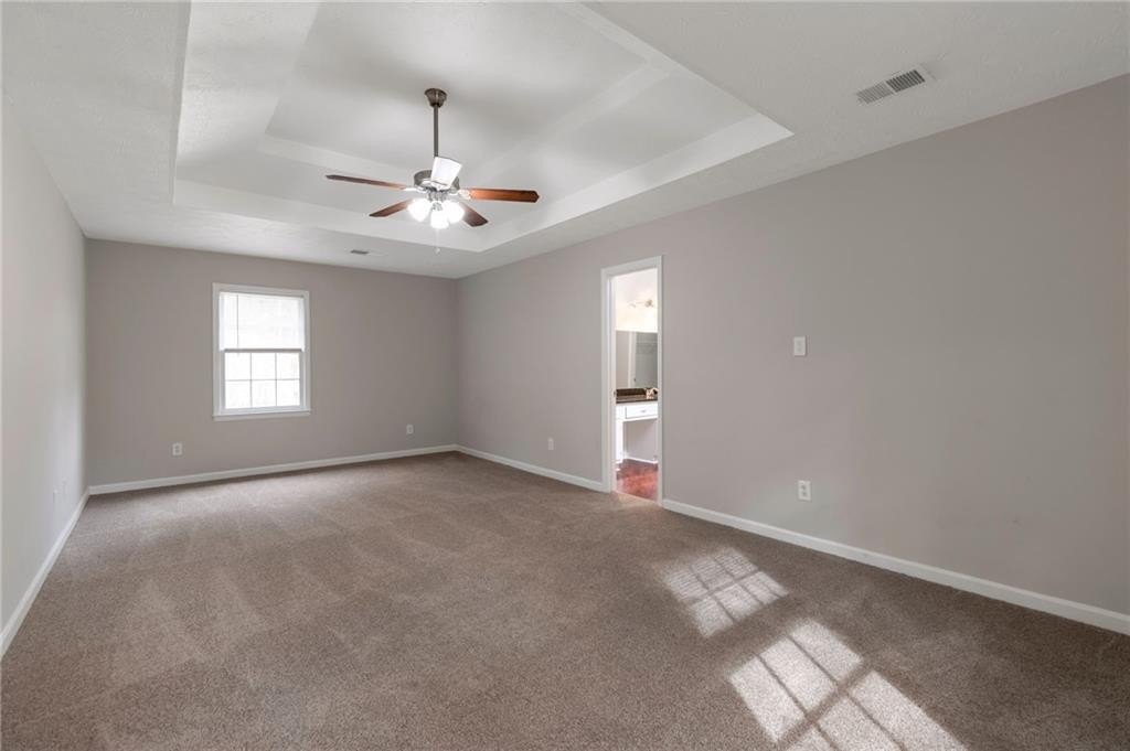 Upstairs, the generously sized primary suite impresses with double tray ceilings, a skylight, a luxurious soaking tub, separate shower, and a double vanity, plus a massive walk-in closet. All the secondary bedrooms are generously proportioned and flooded with natural light. Additional living space flows out to a lovely front porch, perfect for morning coffee or evening relaxation.