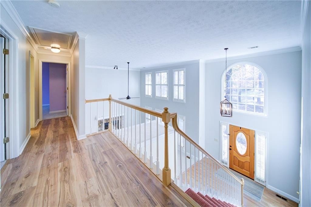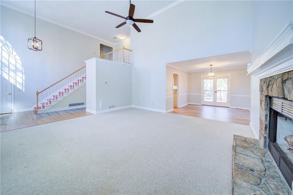 Charming Brick-Front Beauty in Sherwood Forest! Welcome home to this beautifully maintained 4-bedroom, 3.5-bath traditional set on a private .89-acre cul-de-sac lot! From the moment you arrive, you’ll be greeted by lush landscaping, mature trees, and a wide driveway leading to a side-entry 2-car garage (+ 1 car garage on terrace level) plus an extra parking pad for those large gatherings. Step inside to a bright 2-story foyer and spacious great room with soaring windows, plantation shutters, and a stacked-stone gas fireplace. The bright and sunny kitchen shines with granite countertops, recent stainless-steel appliances, white cabinetry, and a breakfast nook overlooking the deck and serene backyard. The main-floor primary suite offers double vanities, a garden tub, and walk-in closet. Upstairs, you’ll find 3 roomy bedrooms and a full bath, while the finished terrace level provides endless possibilities — from an in-law suite to a rec space or home office — complete with a separate entrance and boat door for a garage or workshop! This home has been lovingly maintained by the current owners & it shows! Recent Upgrades: Replaced the Polybutylene plumbing, installed a new upstairs HVAC, new LVP & carpet, deck freshly painted, and pressure-washed exterior with new paint on overhangs and trim. Also, the septic has been inspected & serviced. Enjoy outdoor living on the deck or patio, plus a storage shed and neighborhood amenities including pool, tennis, pickleball, playground & fishing pond. Cumming’s best location! Minutes to downtown Cumming, Sawnee Mountain Preserve, Cumming City Center, Lake Lanier, and GA-400.