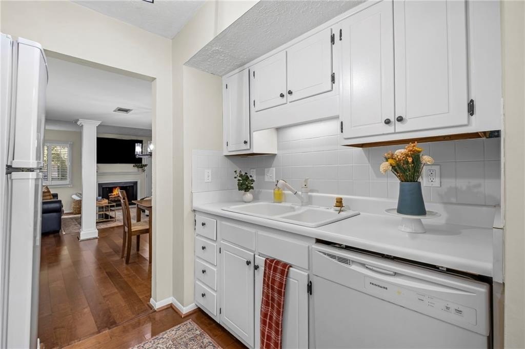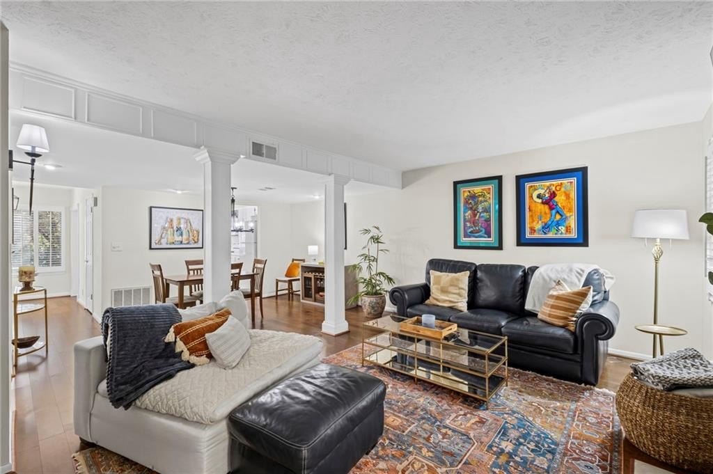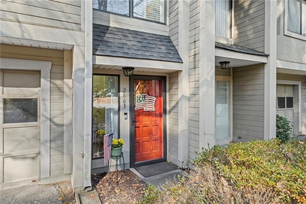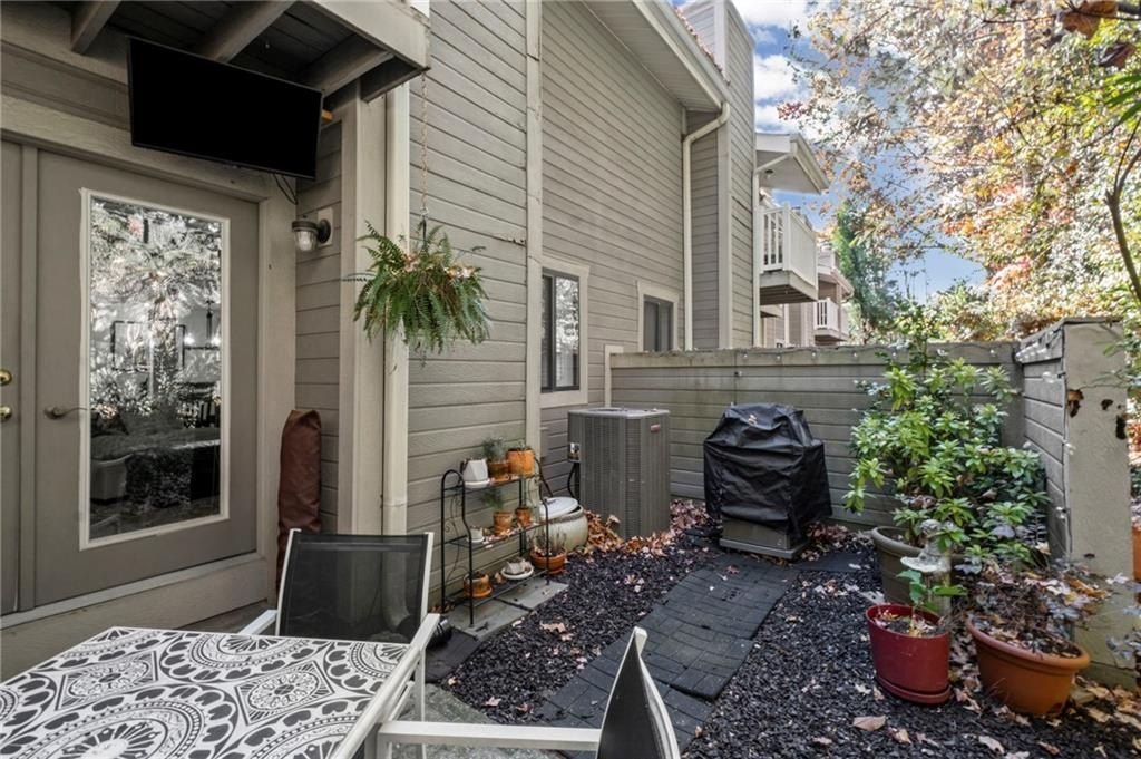 Tucked in the back of the neighborhood off Powers Ferry Road, the setting is peaceful and private—yet just steps from the community pools and clubhouse. Enjoy morning coffee or evening downtime on the charming private patio off the living room, surrounded by nature.