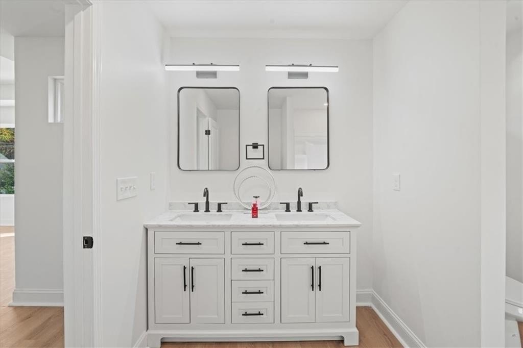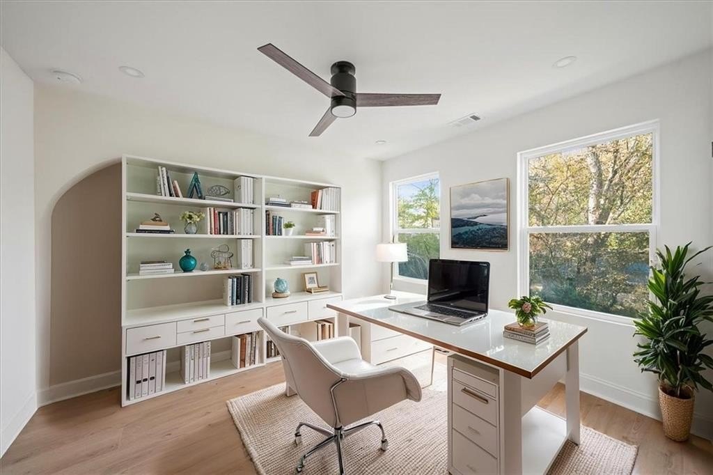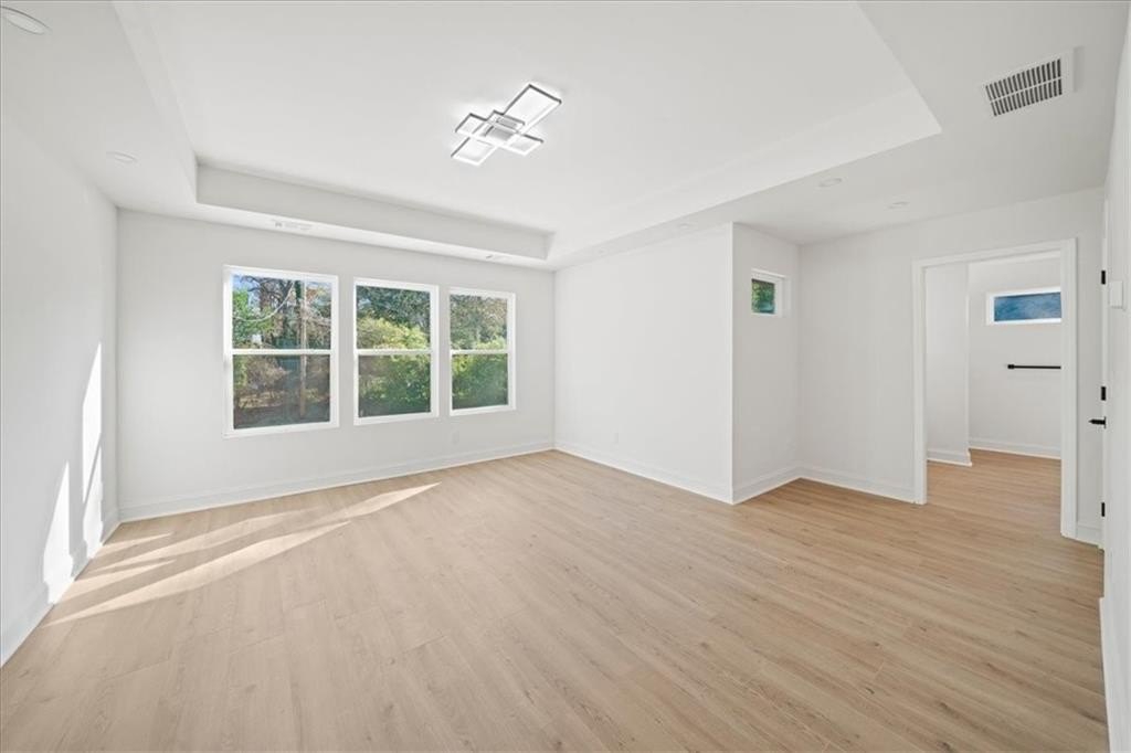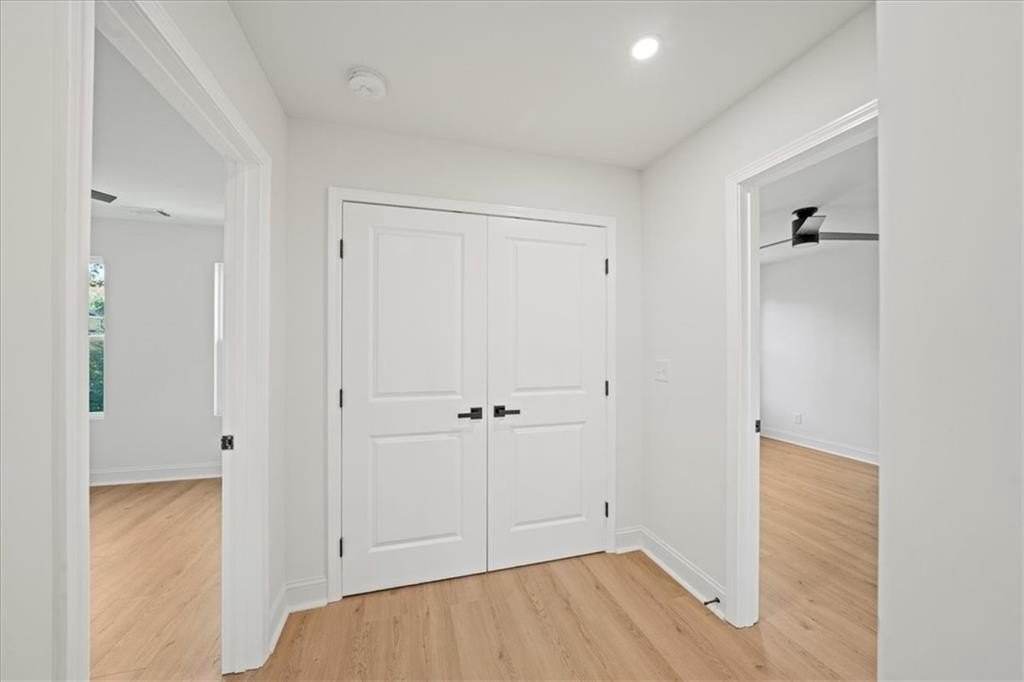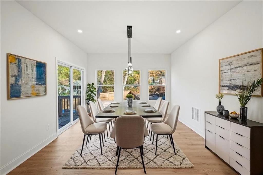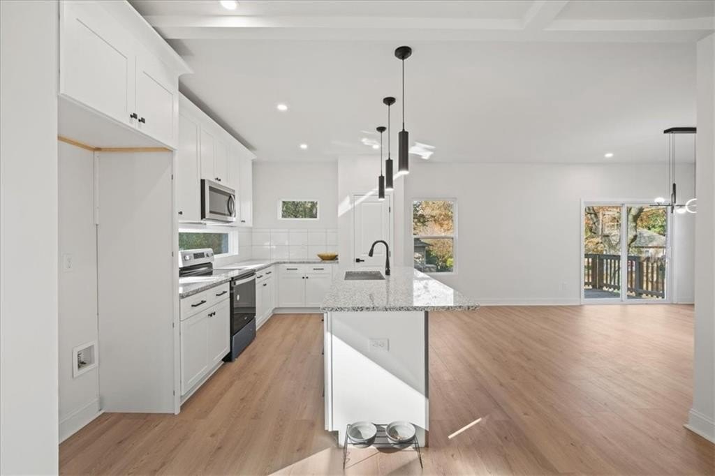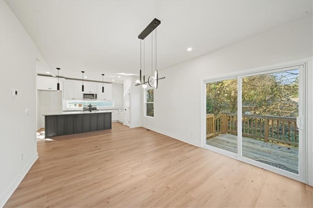 Welcome to this stunning new-construction modern farmhouse, perfectly situated on a highly desirable street in East Point. Offering unbeatable convenience to Tyler Perry Studios, Hartsfield-Jackson Airport, Woodward Academy, and all the best of intown living, this home delivers exceptional style and value at a fantastic price point. Designed with bright, open living in mind, the home features wide-plank LVP flooring throughout, clean modern lines, and abundant natural light streaming in from every direction. The inviting front porch sets the tone, leading into a warm and airy interior. The open-concept main level is anchored by a spacious family room with shiplap accent walls, a sleek modern fireplace, and contemporary lighting. The designer kitchen impresses with white cabinetry, stone countertops, a stylish tile backsplash, and a large island perfect for gathering and entertaining. A convenient guest bedroom on the main level offers flexible space for visitors, a home office, or multi-generational living. Upstairs, the large primary suite offers a peaceful retreat, complete with a tray ceiling, a roomy walk-in closet, and a spa-inspired bathroom featuring a double vanity and modern finishes. Secondary bedrooms are comfortably sized with great natural light. Step outside to a sunny, level backyard—a rare find—ideal for play, pets, gardening, or future outdoor enhancements. The back deck overlooks the grassy lawn and makes the perfect spot for morning coffee or evening grilling. With its stylish modern farmhouse design, exceptional natural light, and prime location close to everything, this home offers intown lifestyle living at an incredible value. Don’t miss your chance to make this beautiful new construction yours!