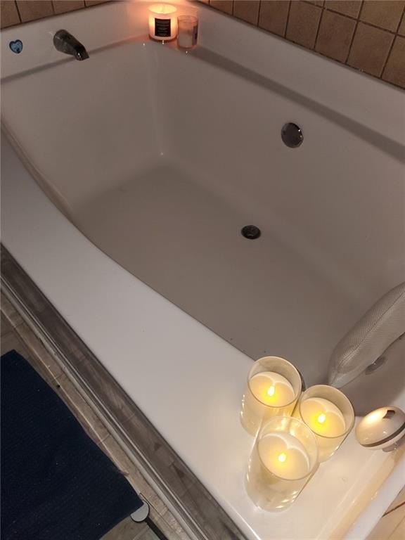 The main level features an open kitchen, dining area, two separate living room spaces upstairs, a full laundry room, and a generous master suite with a garden tub, separate shower, and large walk-in closet. Two additional bedrooms and a full bath complete the upstairs.