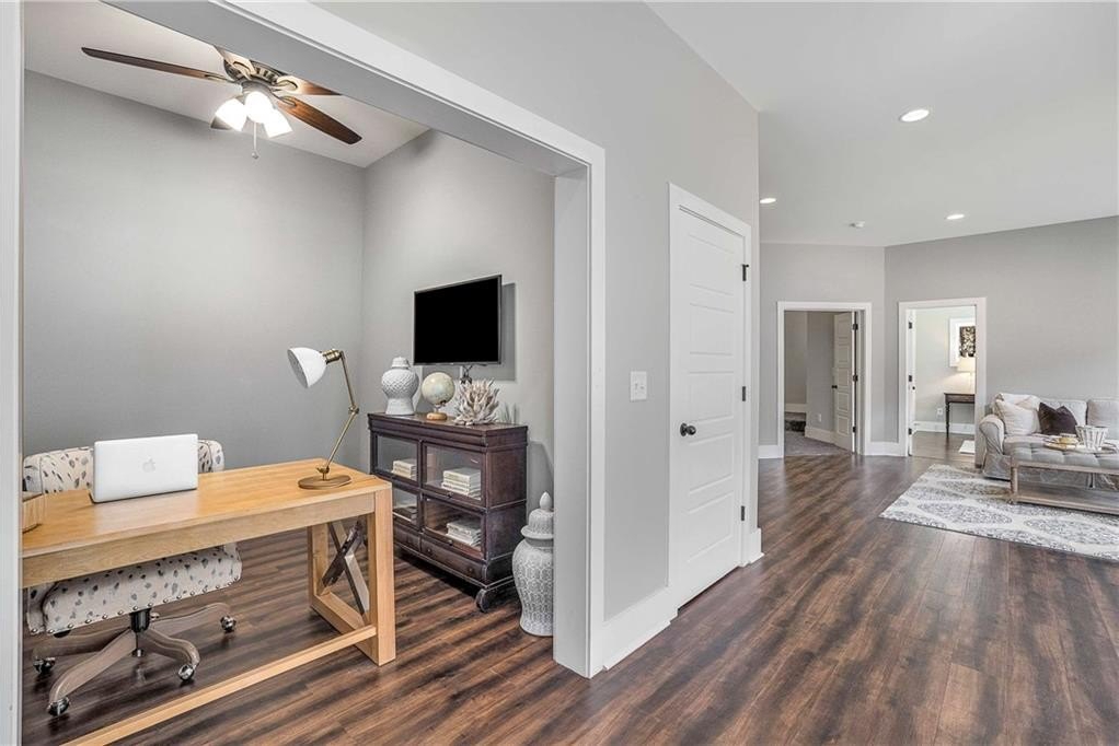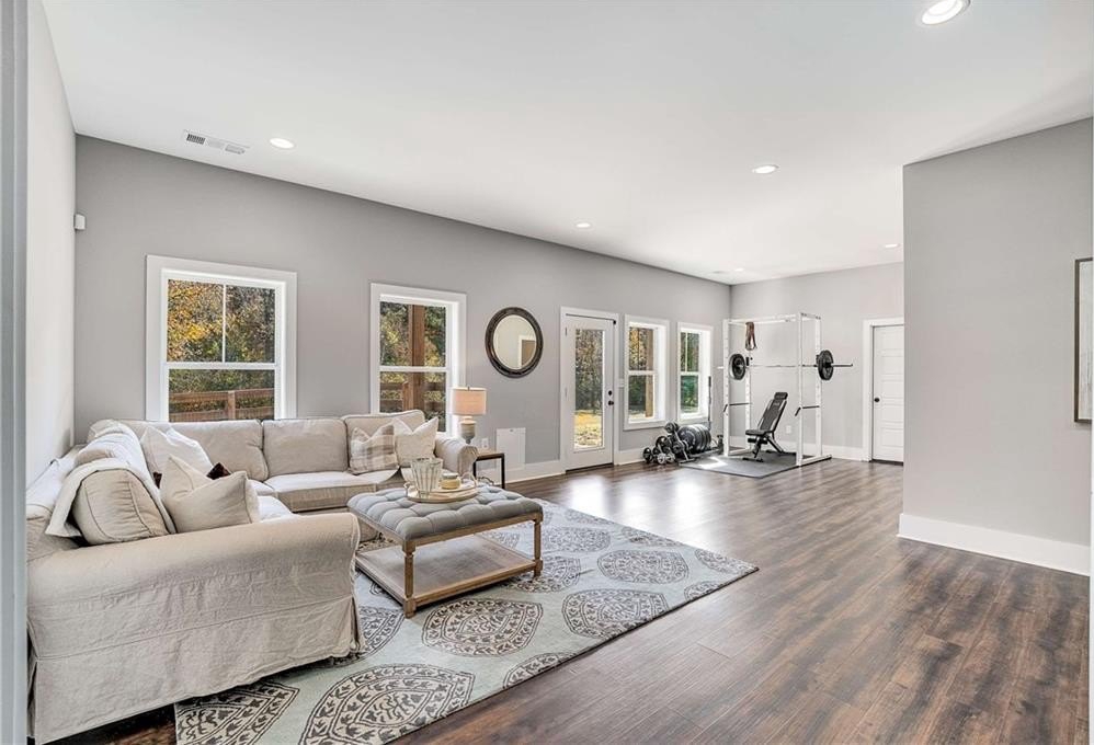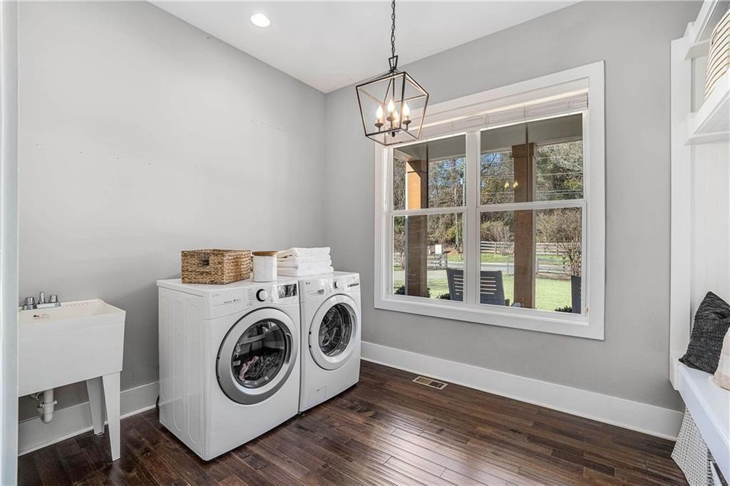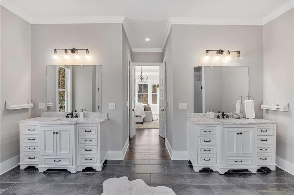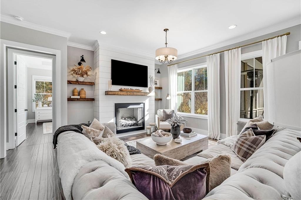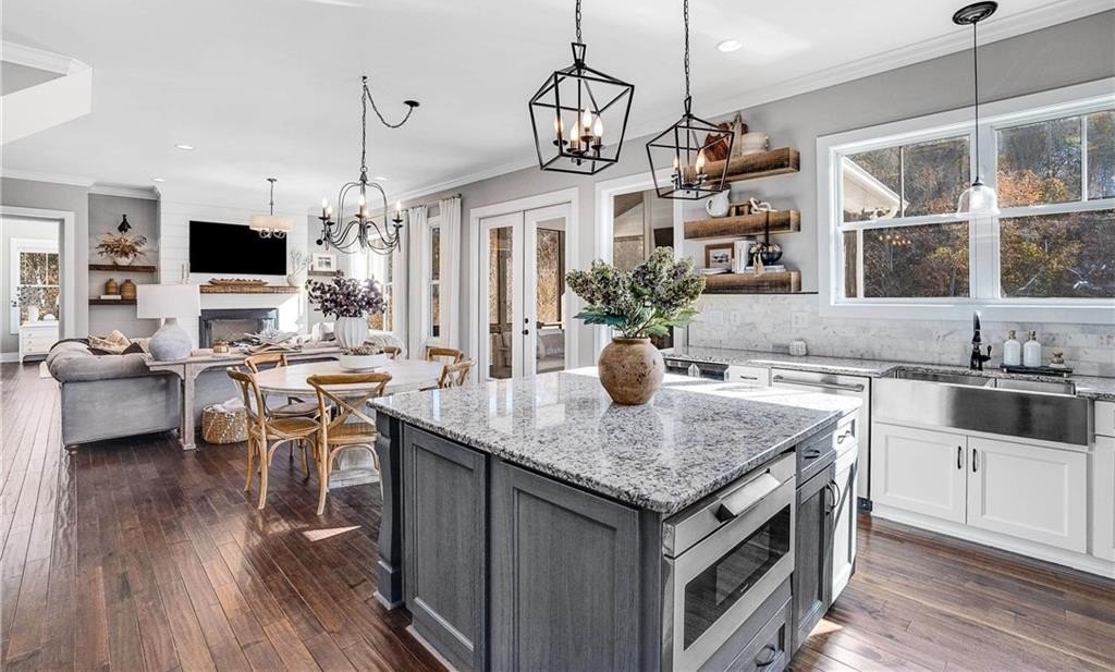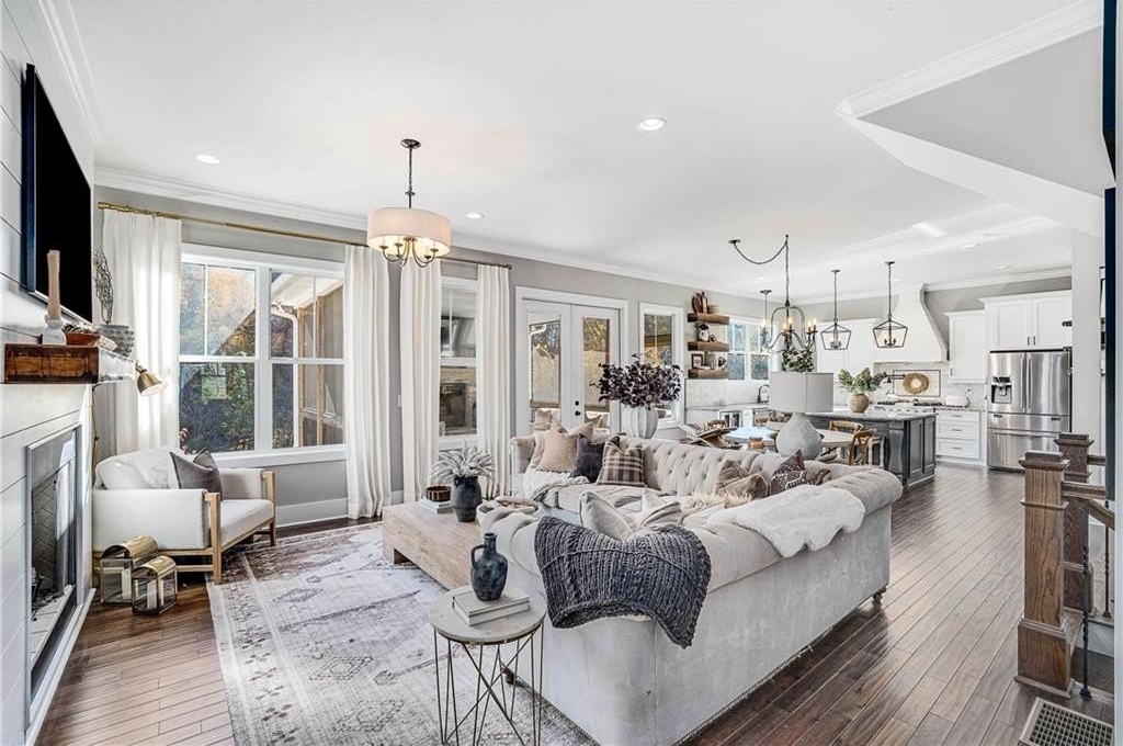 Wow! Experience refined Southern living in this exceptional Craftsman farmhouse on three lush acres in Johns Creek, offering the peaceful feel of the countryside right in the middle of North Atlanta! This beautiful 2018 custom-built 5 bed, 4.5 bath, primary-on-main, 3-car garage home features an inviting traditional farmhouse front porch, gleaming hardwoods throughout, high ceilings, and more! The main living level includes a formal dining room, cozy fireside family room, fabulous vaulted, covered screened porch with stone fireplace, and the updated heart-of-the-home, eat-in kitchen complete with island, stainless appliances, beverage cooler, walk-in pantry and adjacent breakfast area, all overlooking the private pastoral landscape of the backyard! The main level also includes the spacious primary suite with trey ceiling detail, dual closets, and large updated ensuite bath with separate vanities, walk-in shower, and clawfoot soaking tub! Upstairs, you’ll find 3 sizable guest bedrooms, bonus room, one ensuite bath, and a Jack & Jill bath. The full finished daylight walk-out terrace level includes an additional family room/multi-purpose space, media room, kitchenette, guest bedroom, full guest bathroom, and lots of unfinished storage space! Outside, in addition to the covered screened porch, you’ll find a deck on the main level — perfect for grilling, a lower level patio, acres of flat, tree-lined backyard ready for you to enjoy, and a convenient storage shed! Located within walking distance to Newtown Park and just minutes from Georgia 400, premier shopping, award-winning schools, and top-rated restaurants, this property delivers the ultimate Johns Creek lifestyle!