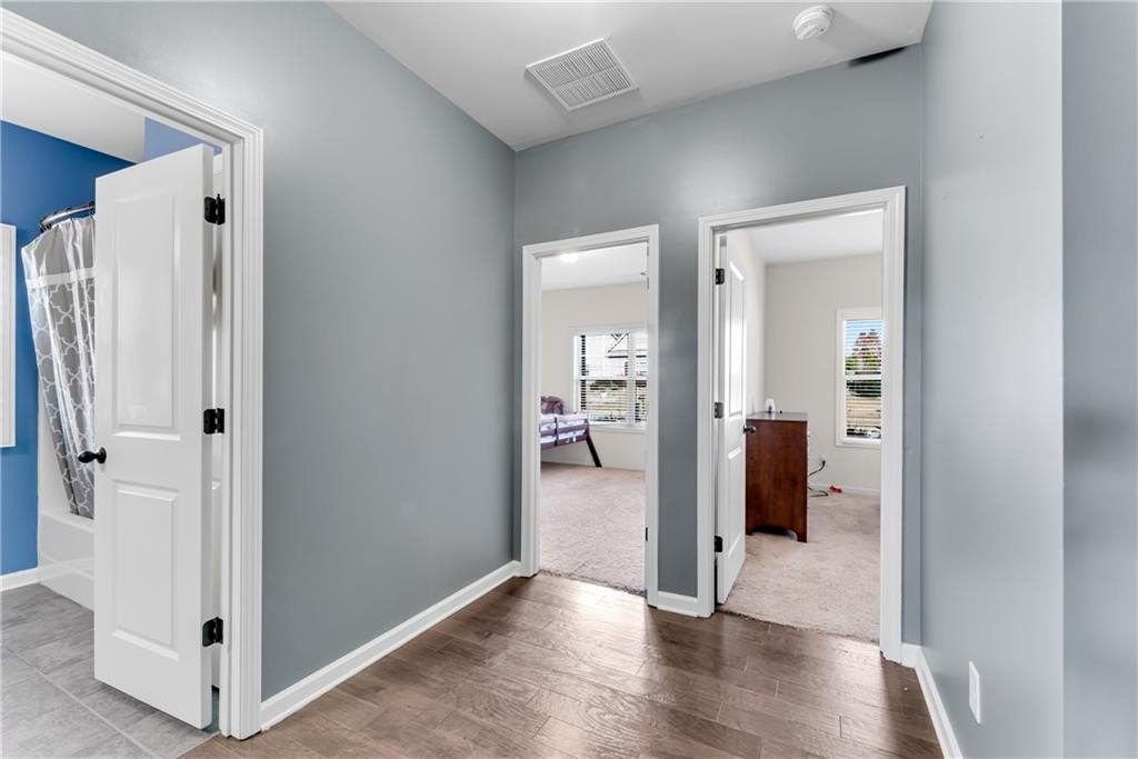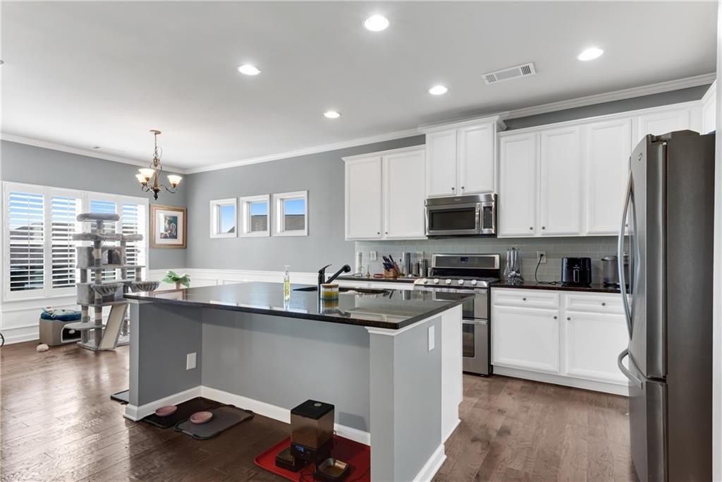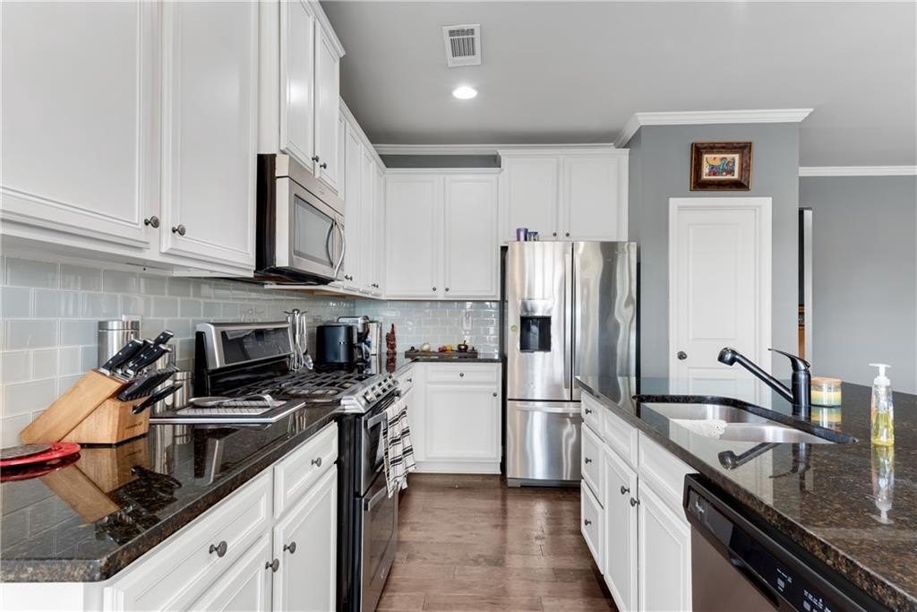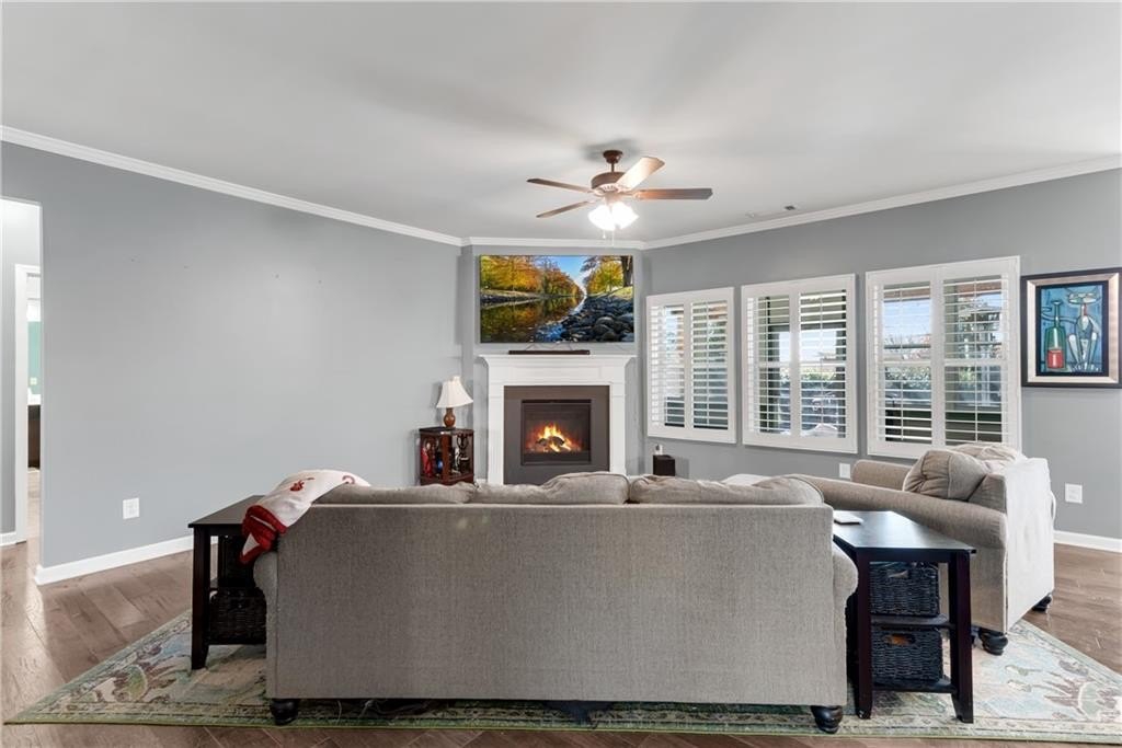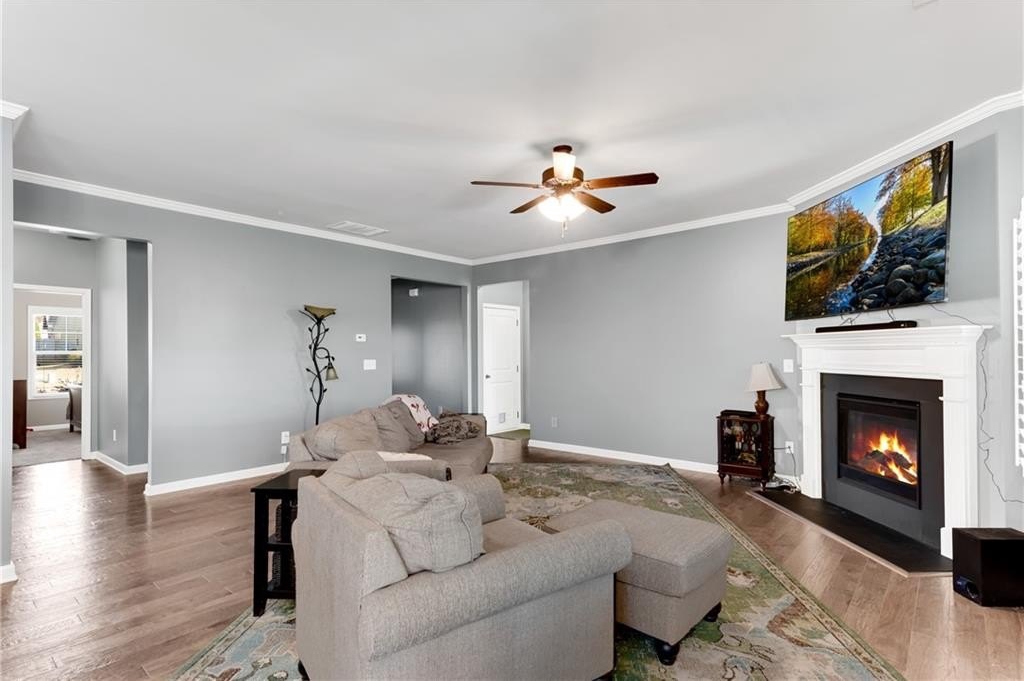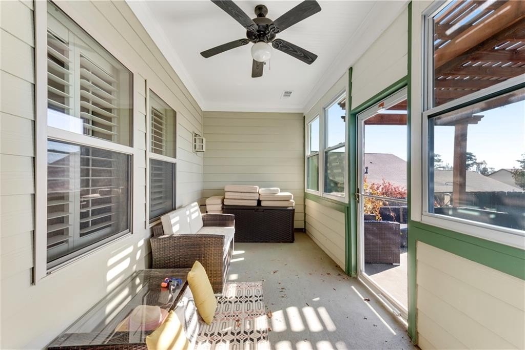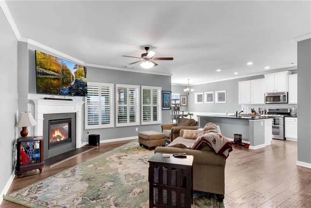 Enjoy peaceful living in this charming ranch-style home located in the sought-after Willow Park section of Mundy Mill. Step into a spacious great room featuring a cozy gas-log fireplace—perfect for relaxing or entertaining. The open floor plan features an inviting eat-in kitchen complete with granite countertops, white cabinets, stainless steel appliances, an island with bar seating, a walk-in pantry, tile backsplash, and a 5-burner gas range. This split-bedroom floor plan features an oversized owner’s suite with a ceiling fan, walk-in closet, and an en-suite bath that includes a walk-in shower, linen closet, dual vanities, and direct access to the laundry room. Secondary bedrooms are well-sized and include ceiling fans for added comfort. Outdoor living shines with a welcoming covered front entry and an all-season, climate-controlled sunroom—ideal for relaxing evenings year-round. Additional features include a 15' x 20' pergola, a full-yard sprinkler system, a Ring doorbell, garage shelving, fencing across the backyard, and beautiful plantation shutters throughout. Located in a thriving, convenient area of Gainesville, Mundy Mill residents enjoy resort-style amenities, including a zero-entry pool, playground, tennis courts, a large pavilion with a fireplace, community green space, and sidewalks throughout the neighborhood. Ideally situated near I-985, grocery stores, restaurants, Walmart, Sam’s Club, UNG Gainesville Campus, Lake Lanier, and Chateau Elan Winery.