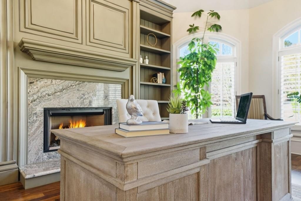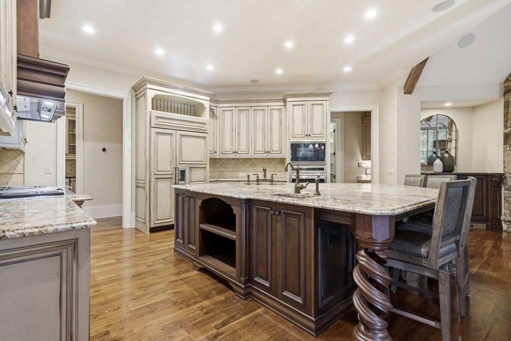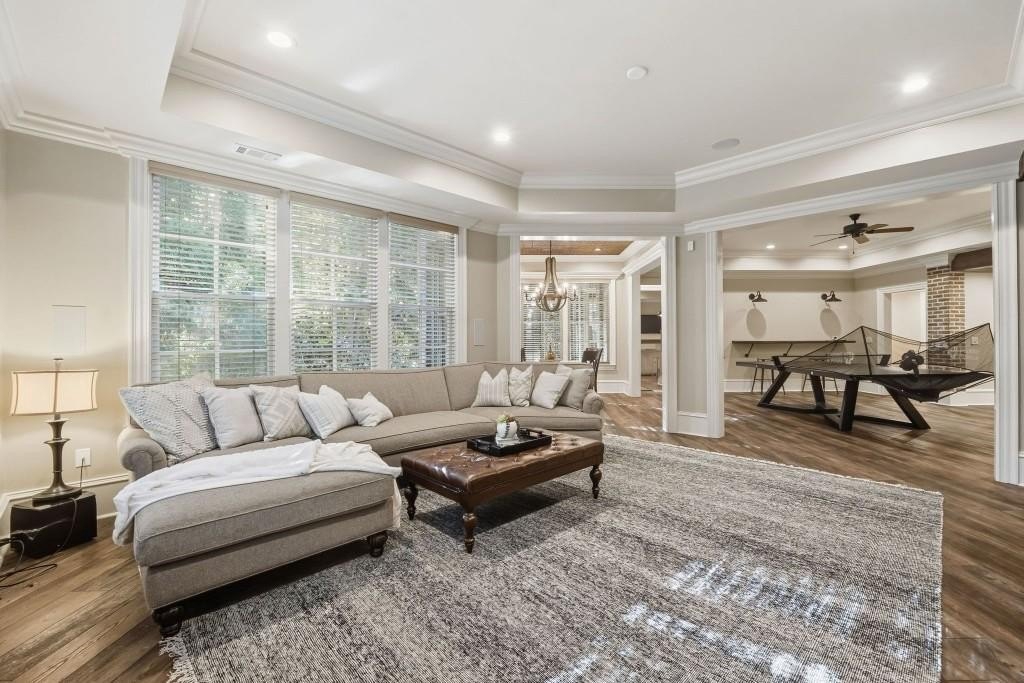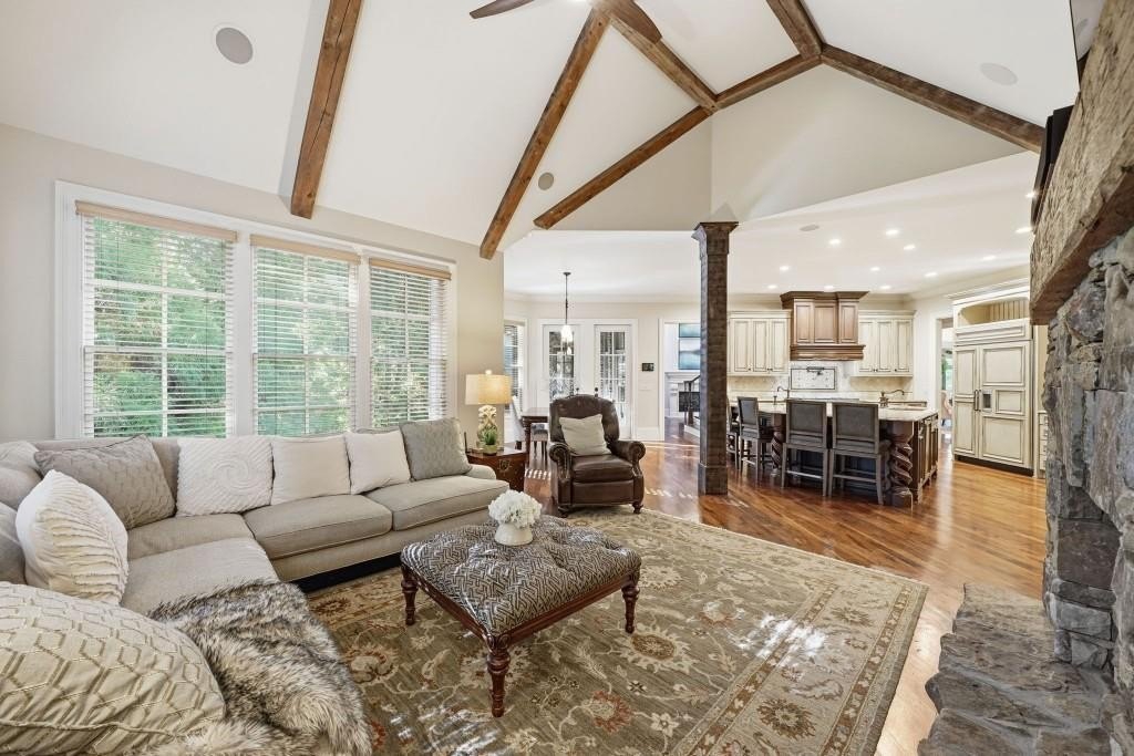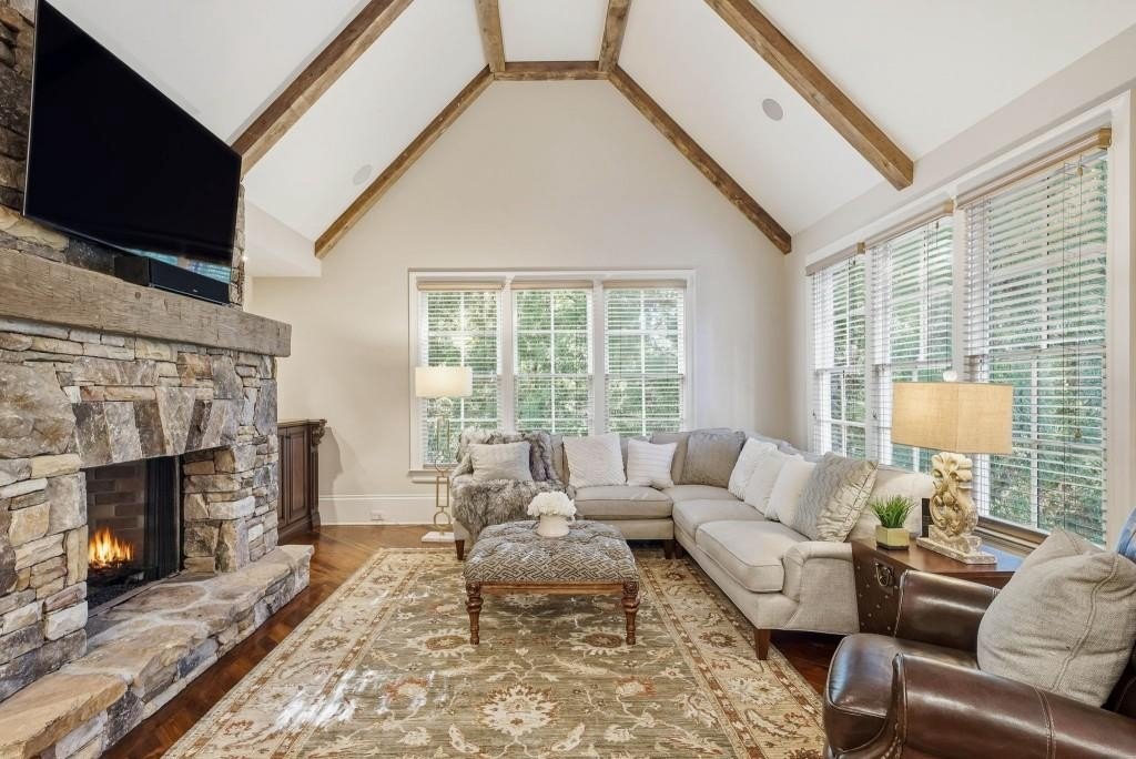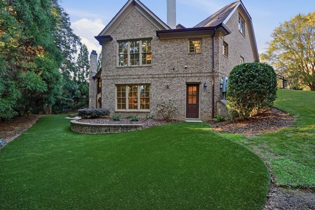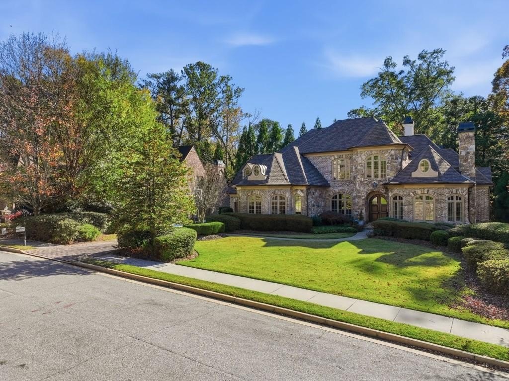 Nestled on a pristinely landscaped lot within North Buckhead's prestigious The Park at Brookhaven, this European-inspired residence exemplifies superb craftsmanship and enduring style. Custom-built by the former CEO of Georgia Power with uncompromising attention to detail, the home offers a refined living experience from the moment you enter. A grand foyer sets the tone, opening to an elegant formal dining room and a richly detailed study highlighted by a domed ceiling and impressive fireplace. Walnut hardwood floors span the main level and upper hall, guiding you to the stunning two-story great room. Here, a soaring French limestone fireplace and an expansive wall of windows brighten the space, while French doors lead to a tranquil, covered outdoor terrace perfect for year-round enjoyment. The expansive chef's kitchen serves as the home's central gathering space, showcasing premium appliances, a generous island, and seamless sightlines into the vaulted family room. This warm, inviting space features a stacked-stone fireplace and custom built-ins ideal for everyday living or relaxed evening entertaining. The main-level owner's suite offers a private sanctuary with a fireplace-equipped sitting area and a luxurious spa bath complete with a steam shower. The upper level hosts four spacious bedrooms, each with their own en-suite bathroom, providing comfort and privacy for family or guests. The fully finished daylight terrace level, completed in 2019, delivers an exceptional entertainment experience with a game room, den, billiards area, full kitchenette, and a sixth bedroom with both a spa-like full bath and an additional powder room. A state-of-the-art home theater boasts a 215-inch screen and a Foresight GC Hawk Golf Simulator, creating an immersive recreation space. Outdoor areas are equally compelling, featuring a second covered patio, a firepit lounge, and lush landscaping that ensures beauty and privacy throughout every season. Notable upgrades include Control4 home automation (lighting/video), three new Carrier furnaces (2022), a GAF Camelot designer roof installed in 2023, four fireplaces, two laundry rooms, a dedicated office on the upper level, transom windows throughout, and abundant storage. Just minutes from top-tier shopping, dining, and recreation including Phipps Plaza, Lenox Mall, Capital City Club, and Nancy Creek Park this home seamlessly blends elegance, convenience, and modern comfort in one extraordinary offering.
