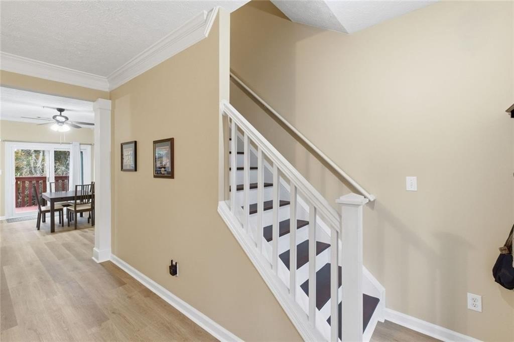 Beautifully refreshed end-unit townhome in desirable Chattahoochee Cove with over $34,000 in recent updates. This move-in ready 2BR/2.5BA home offers a bright, modern interior with new paint, new drywall, and upgraded flooring throughout. The main level features newly installed LVT flooring, updated lighting, and an easy-flow layout perfect for everyday living. The kitchen offers updated cabinetry and functional workspace overlooking the dining and living areas. Upstairs, both bedrooms offer generous space and fresh new carpet. Bathrooms have been updated with new vanities, faucets, tub/shower, toilets, and trim, creating a clean and modern feel. Additional upgrades include plumbing and electrical updates completed during restoration. The finished basement provides flexible space for storage, a home gym, office, or media area. End-unit positioning allows for added natural light and privacy. HOA fee includes water, sewer, lawn care, and exterior maintenance, making this an ideal low-maintenance home in a convenient Duluth location. Minutes to I-85, PIB, shopping, dining, parks, and Downtown Duluth. Rare opportunity to own a move-in ready home in this community with major updates already completed. Don’t miss this beautifully improved townhome—schedule your showing today.