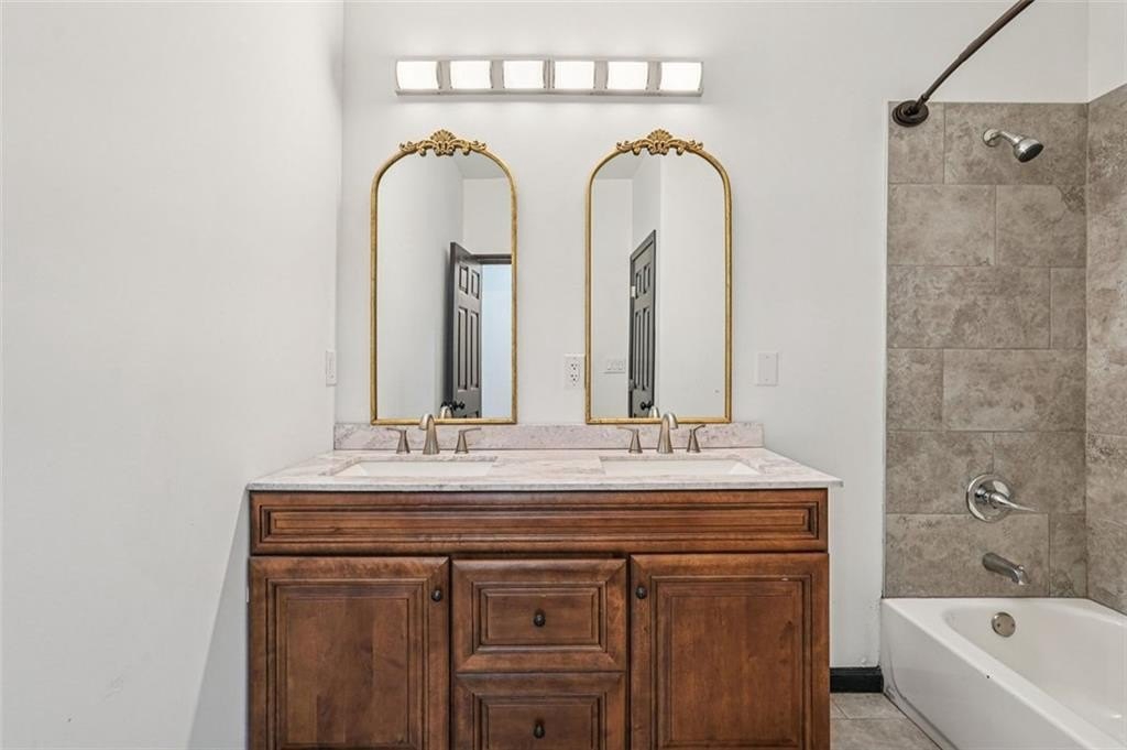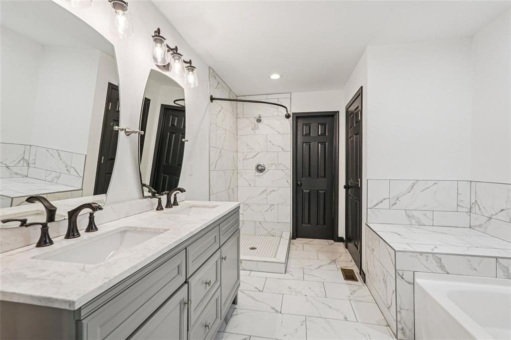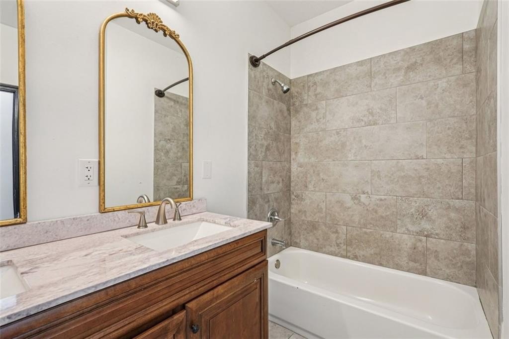 This home offers two luxurious primary suites, each featuring oversized closets, abundant natural light, and spa-inspired bathrooms with beautiful tilework, walk-in showers, and dedicated makeup vanity areas framed by stylish barn doors. Two additional bedrooms and well-appointed baths provide comfort for family, guests, or roommates.