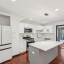 A charming front porch welcomes you inside to an open-concept layout ideal for today’s lifestyle. The chef’s kitchen features a large white-quartz island with true dining capacity, white quartz countertops, designer tile backsplash, and top-of-the-line Samsung custom-panel refrigerator and stainless-steel appliances. The kitchen overlooks the spacious living room, highlighted by an elegant marbled fireplace and sleek recessed lighting throughout. The dedicated dining area is wrapped in bay windows, filling the space with natural sunlight.