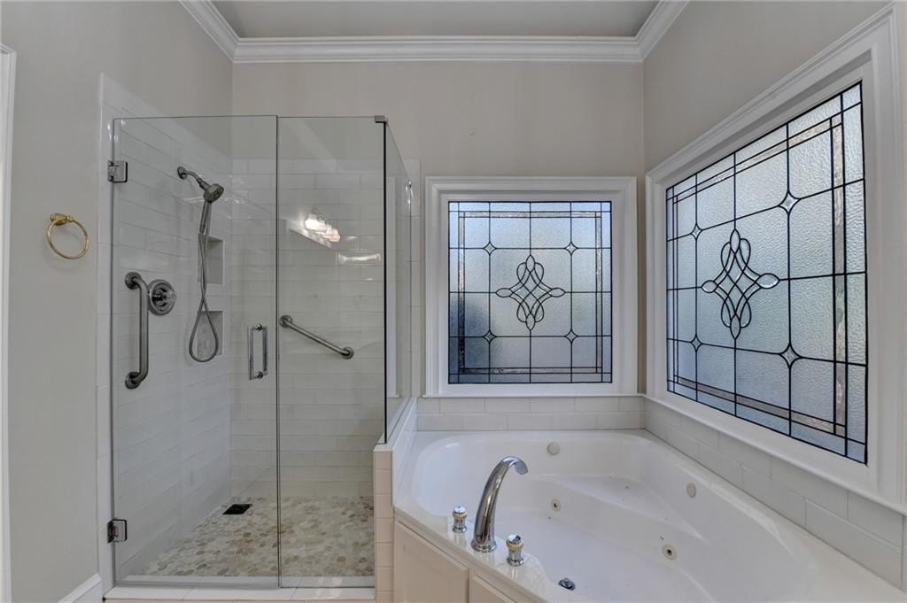 Exquisite Luxury Living in Johns Creek! Welcome to 1020 Vintage Club Dr, an exceptional 6-bedroom, 5.5-bathroom estate situated on a meticulously maintained 0.39 acre lot, offering unparalleled space and sophistication. Step inside the soaring 2 story entry to discover a bright, flowing layout accentuated by high ceilings and modern recessed lighting. This home is designed for multi-generational living and entertaining, featuring the convenience of a primary suite on the main level, alongside a separate, private guest suite on the main level. The heart of the home is the stunning chef's kitchen, boasting elegant stone counters, a double oven, a separate cooktop, and a massive central island, which opens seamlessly to the great room. The great room is a spectacular focal point, featuring soaring two-story ceilings, custom built-ins, and a cozy fireplace. The main level is completed by gracious formal dining and living rooms. The oversized primary suite is a true retreat, offering dual vanities, a massive walk-in closet, and a relaxing jacuzzi tub. Upstairs, you will find three additional well-appointed bedrooms and two full bathrooms. The upper-level landing is a great space for a computer area and gaming space. The versatile partially finished terrace level adds the sixth bedroom and fifth full bathroom (currently configured as a home office). Outside, you can enjoy year-round entertaining on the massive back deck, complete with a luxurious hot tub, all within the highly desirable St Ives community. Please note Country Club is separate from HOA. Ask listing agent for a Club tour.