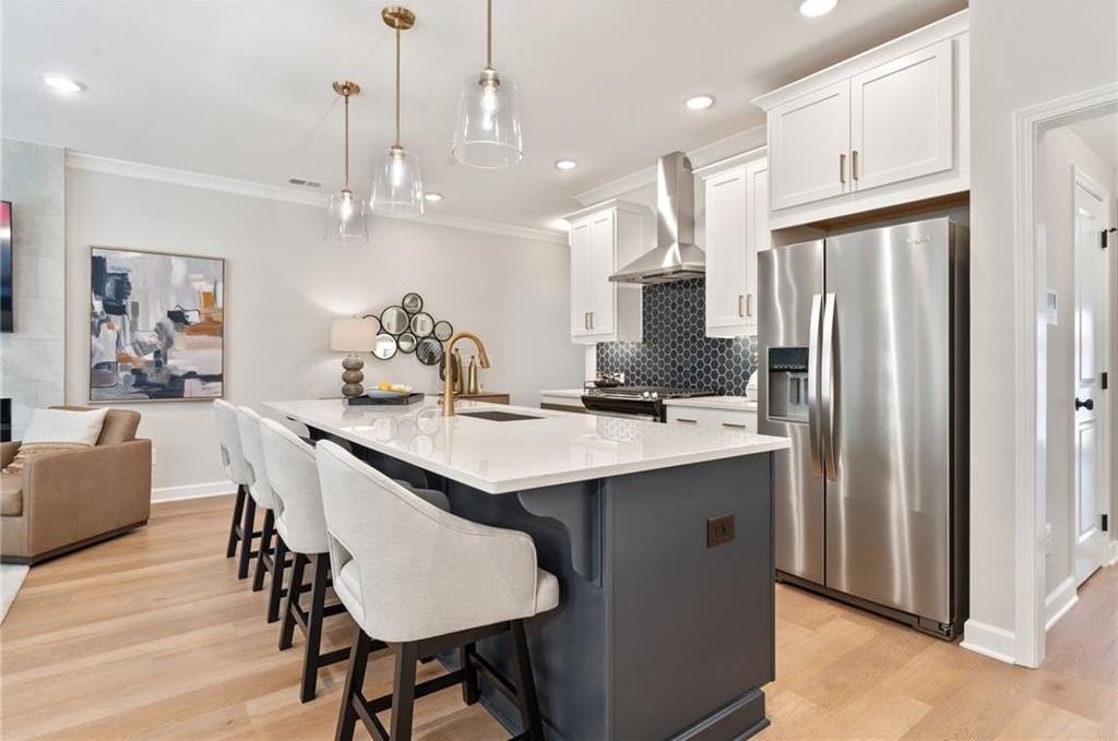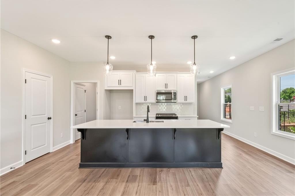 Traton Homes Brooks D End Unit will be ready for Jan/February move-in! Up to $10k from preferred lender towards closing cost, buy downs or prepaids! This beautiful 2-story townhome has white shaker cabinets and a 9 Foot+ Island with upgraded quartz counters and navy cabinetry. Sleek black faucet, and black hardware in your kitchen overlook your spacious family room and dining area, great for family and friends to gather around and celebrate. The main floor has light natural wood toned LVP flooring, walk-in pantry and guest bath. Hardwood stairs lead to a Spacious Primary Suite with enormous walk in closet and lovely bath. Two additional generous bedrooms are set away from the owner's suite for privacy, a loft area, laundry room and full bath complete the upper level. Your outdoor living area is a generous 16 x 8 Covered Patio with plenty of room to grill or relax! You can fence your yard and have HOA maintain your landscaping. Wilkins Walk amenities include a Pool, Cabana, and Open Greenspace. This perfectly situated location is within walking distance of the silver comet trail entrance, trail bicycle shop, and restaurants. Easy access to Highway 78, East-West Connector, I-20, and I-285. Stress Free Warranty’s from Award-Winning Builder, Traton Homes. All applicants must prequalify with preferred lender regardless of who they choose for their loan. All incentives are tied to a preferred lender only.