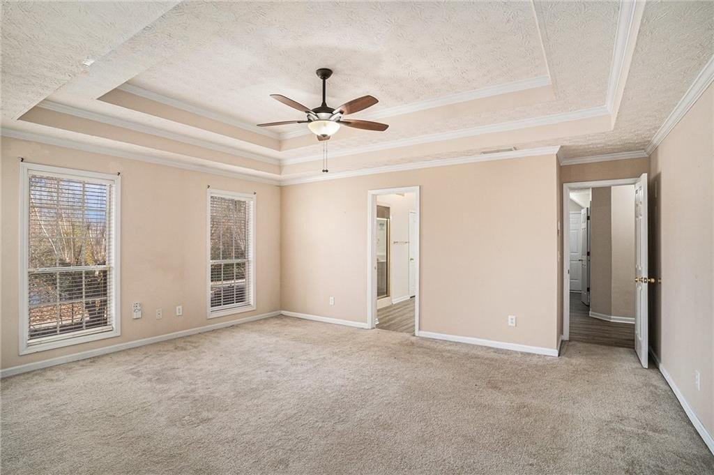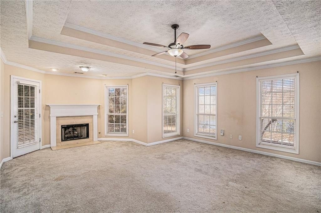 Beautiful 4BR/3.5BA home on a private 0.64-acre lot in Lakeside @ Eagles Landing! Features a 2-story foyer, vaulted family room w/fireplace, and formal dining for 12+. Spacious kitchen w/breakfast area & bar. Main-level owner’s suite offers a fireplace, sitting area, patio access, dual vanities, his & hers closets, soaking tub & separate shower. Upstairs bedrooms include a private guest suite. Enjoy lake views, patio, sprinkler system, and 2-car garage. Quiet setting near shopping, dining, and top-rated Union Grove schools!