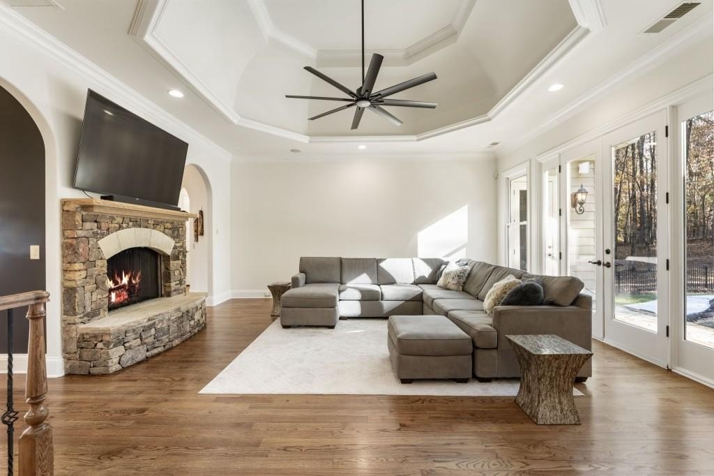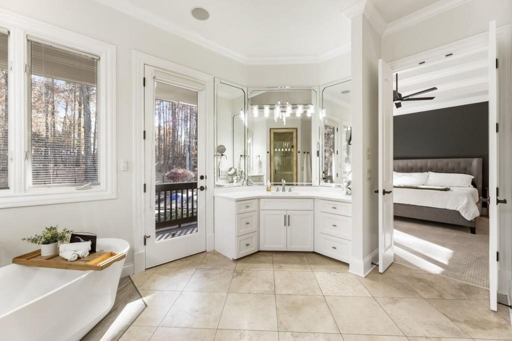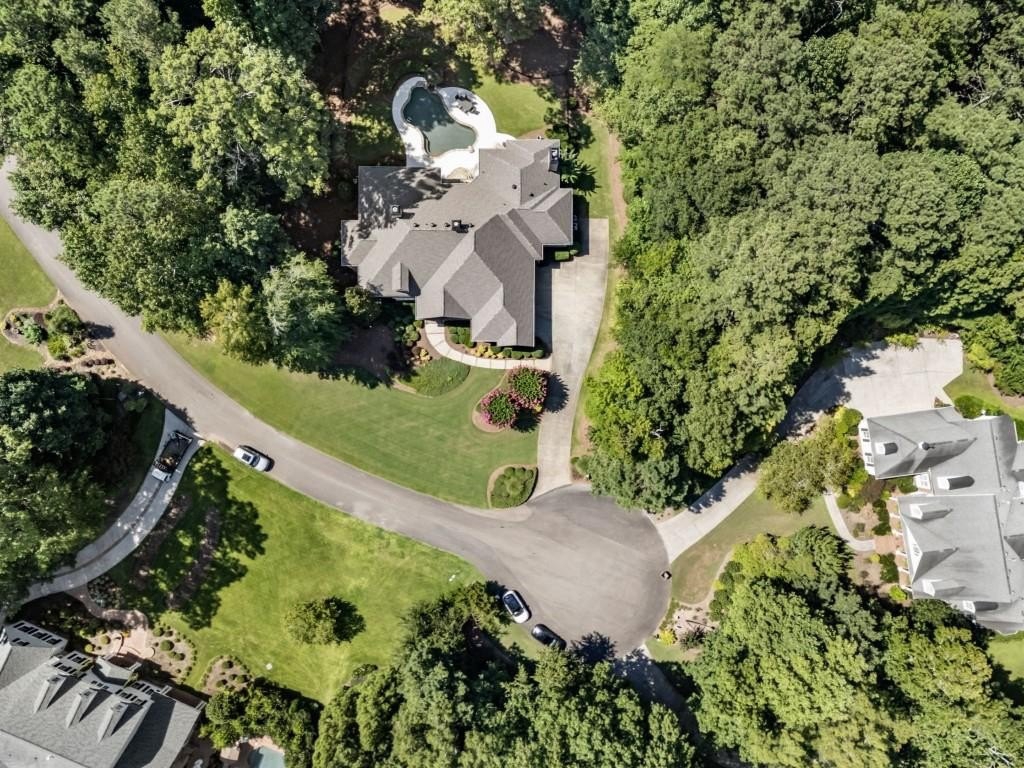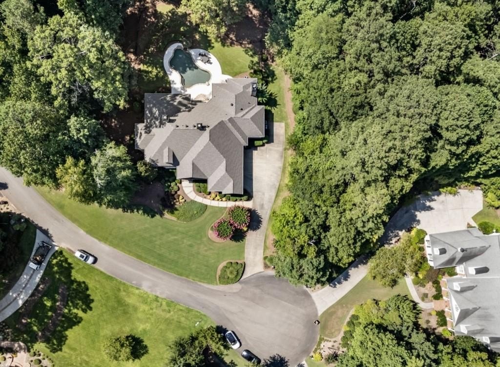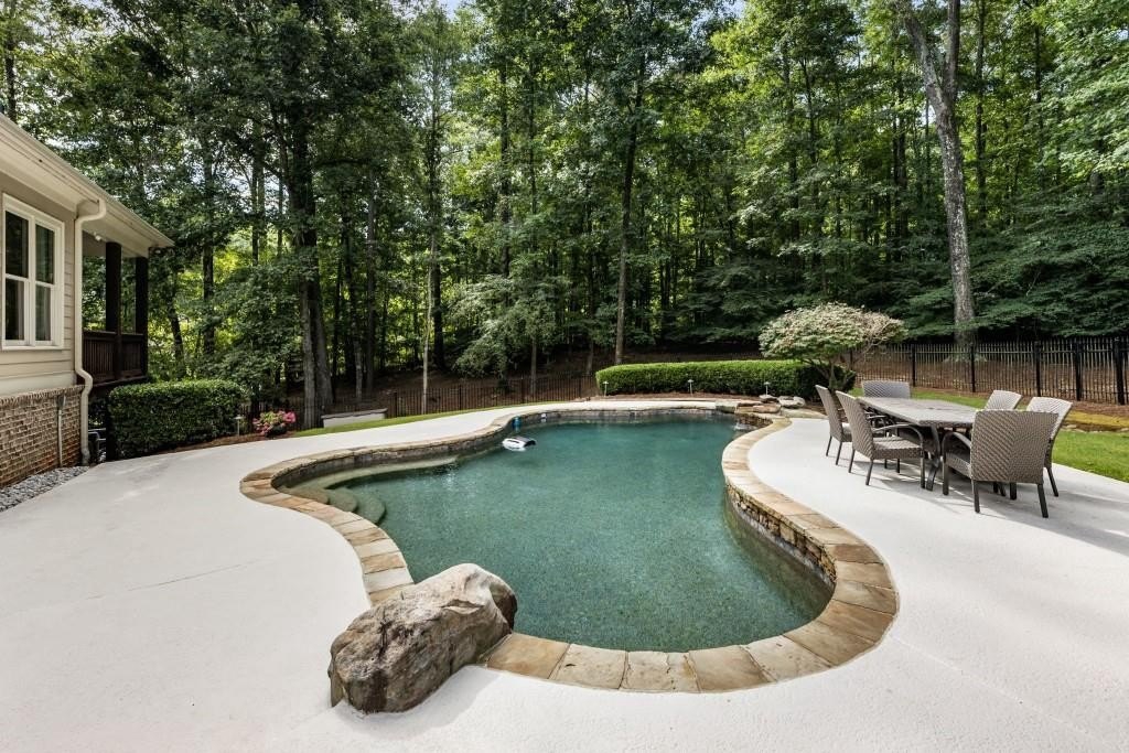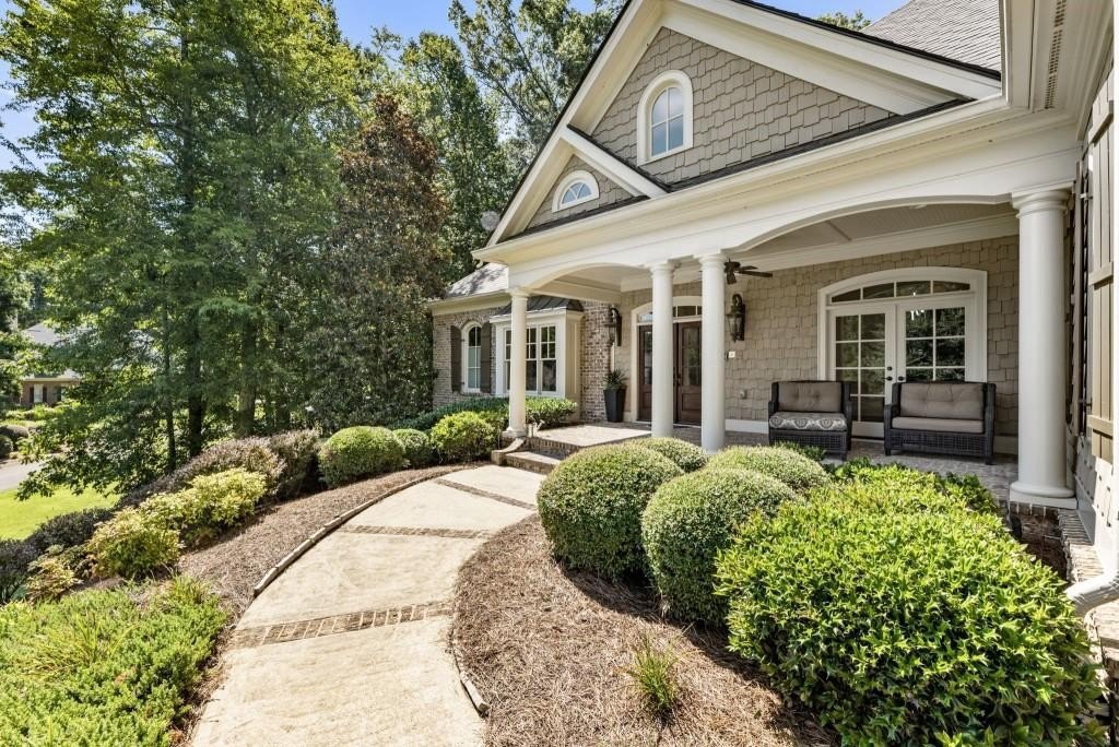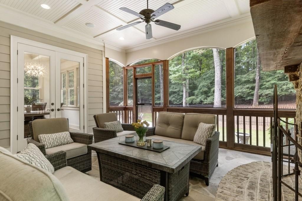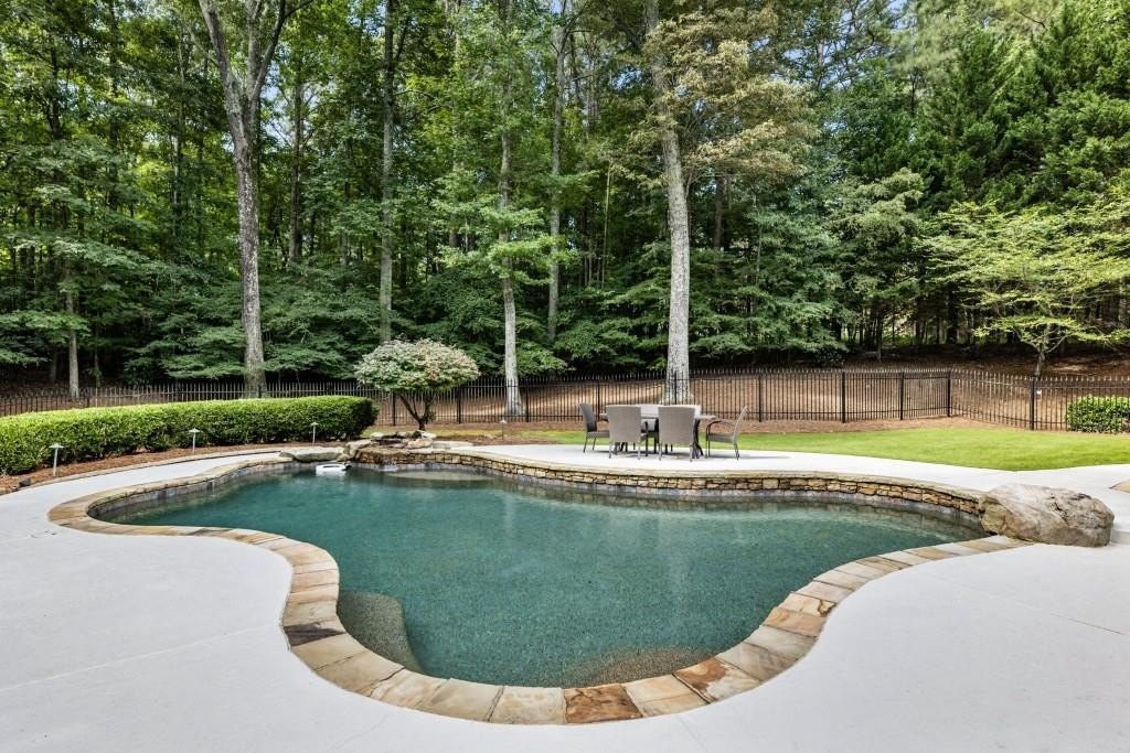 Beautifully updated in this gated community in sought after South Forsyth location! This one level ranch style home offers walk-out on the main level to your outdoor living space featuring a gunite sparkling pool, a screened porch with fireplace, and lots of outdoor entertaining space. This home is located in Forsyth county and situated at the end of a quiet cul-de-sac in gated enclave of luxury homes offering you security and serenity in an ideal location. The covered front porch offers a warm welcome and sets the tone for the comfort and quality found throughout the property. Upon entering through the front door, you are greeted by a dining room on your right and a private study on your left, complete with built-in bookcases and access to the primary bedroom. The heart of the home features an open-concept kitchen design with this oversized island that offers seating and open concept while being a completely modernized kitchen with all new appliances, counter tops, backsplash and more. A stone fireplace serves as a warm and welcoming focal point in the living room and perfect for both everyday living and entertaining. Just off the kitchen, a screened-in back porch with its own fireplace offers a comfortable outdoor living space that can be enjoyed year-round. The primary suite is a peaceful and well-appointed space with windows overlooking the private backyard. The primary bathroom features separate dual vanities, two walk-in closets, and a large walk-in shower and soaking tub. A private bonus room, currently used as a home gym, adds function and flexibility. A second bedroom with ensuite is also located on the main floor. The fully finished basement includes two additional bedrooms, two full bathrooms, one half bathroom, a generous media room, and a wet bar. The lower level offers multiple flexible living spaces ideal for craft room, media space, movie room, ping pong or pool table room perfect for entertaining & hosting guests. Every major system has been thoughtfully updated including pool heater, HVAC, water heaters, roof replaced and freshly painted interior with all bathrooms and the kitchen perfectly updated. The new garage epoxy floor was recently finished. This home offers timeless design, modern upgrades, and a serene setting. Minutes to GA 400, and shopping/dining at The Collection, Halcyon, and Avalon. Enjoy living with the convenience of Fowler Park and the Greenway right outside your community.