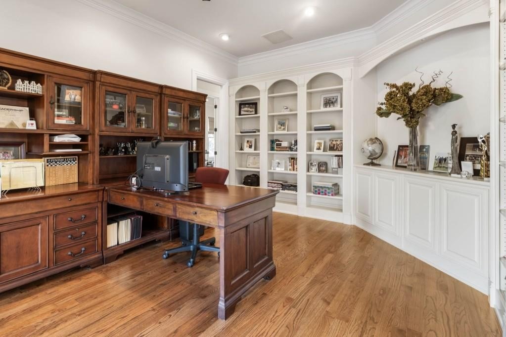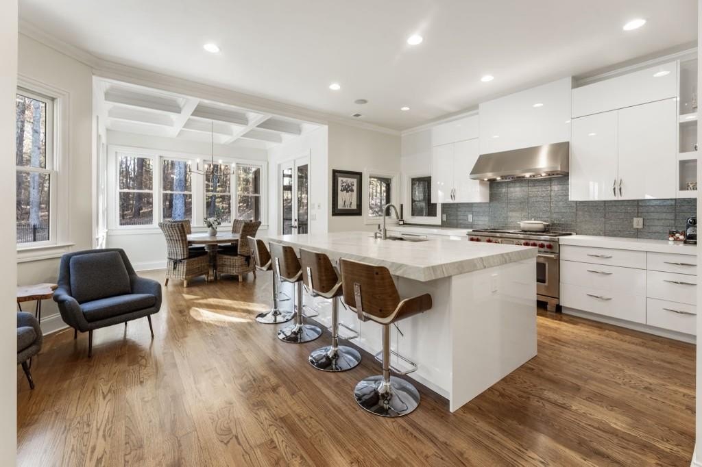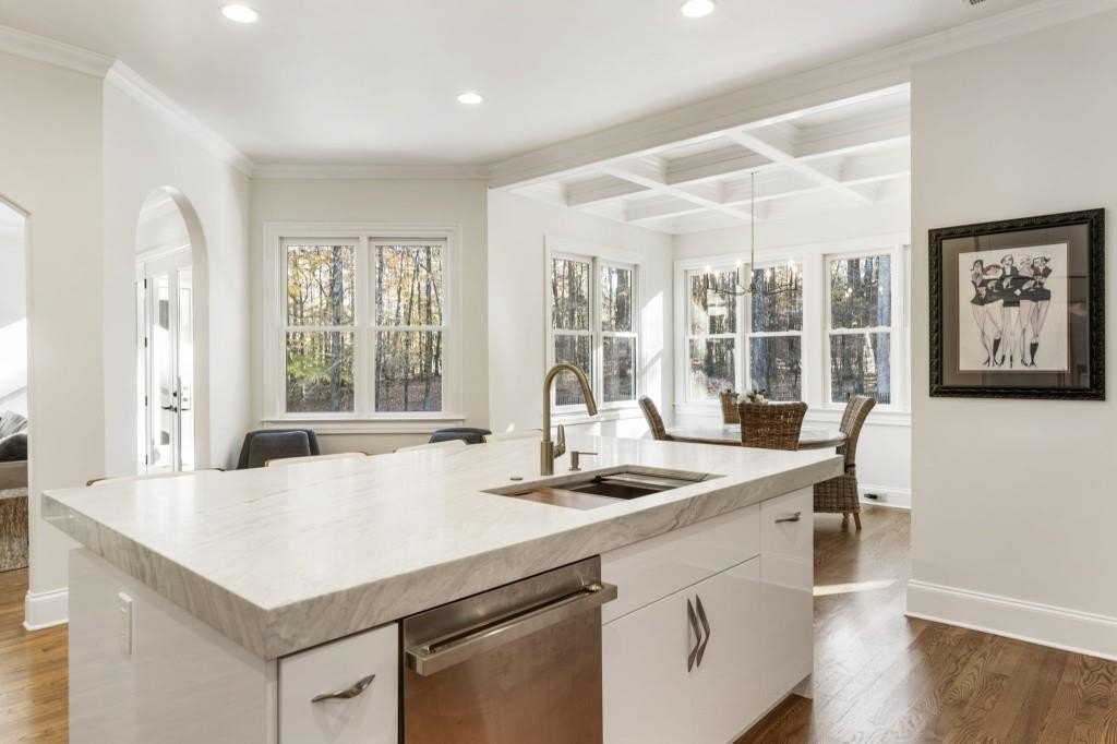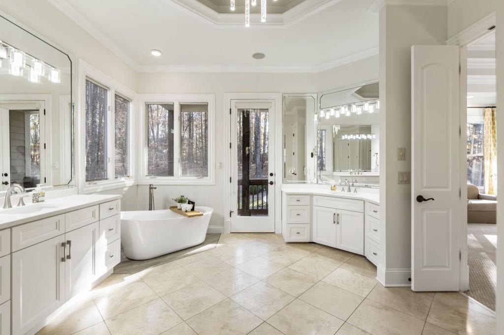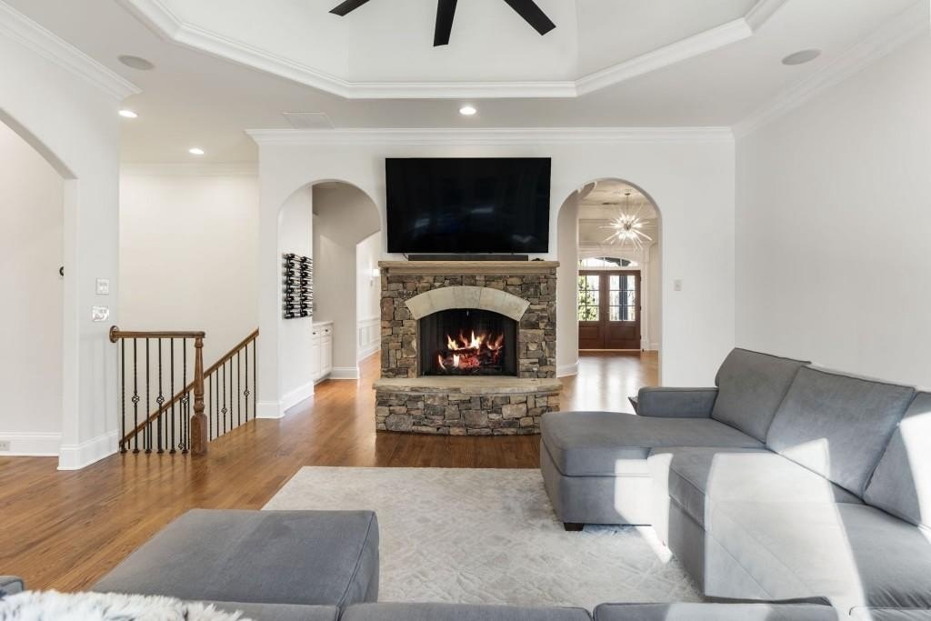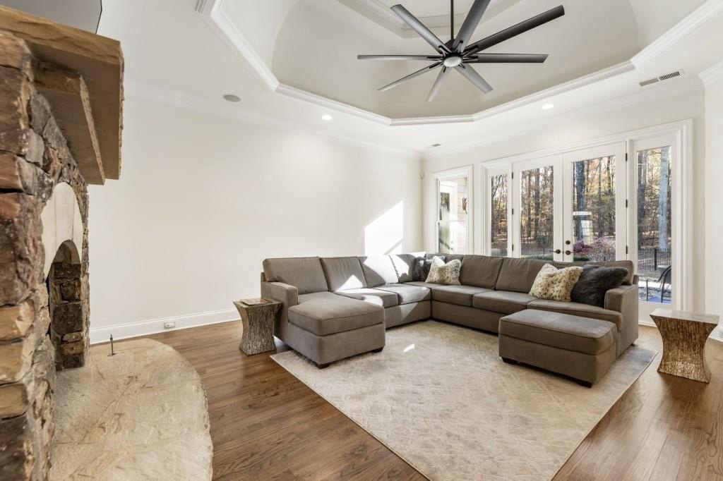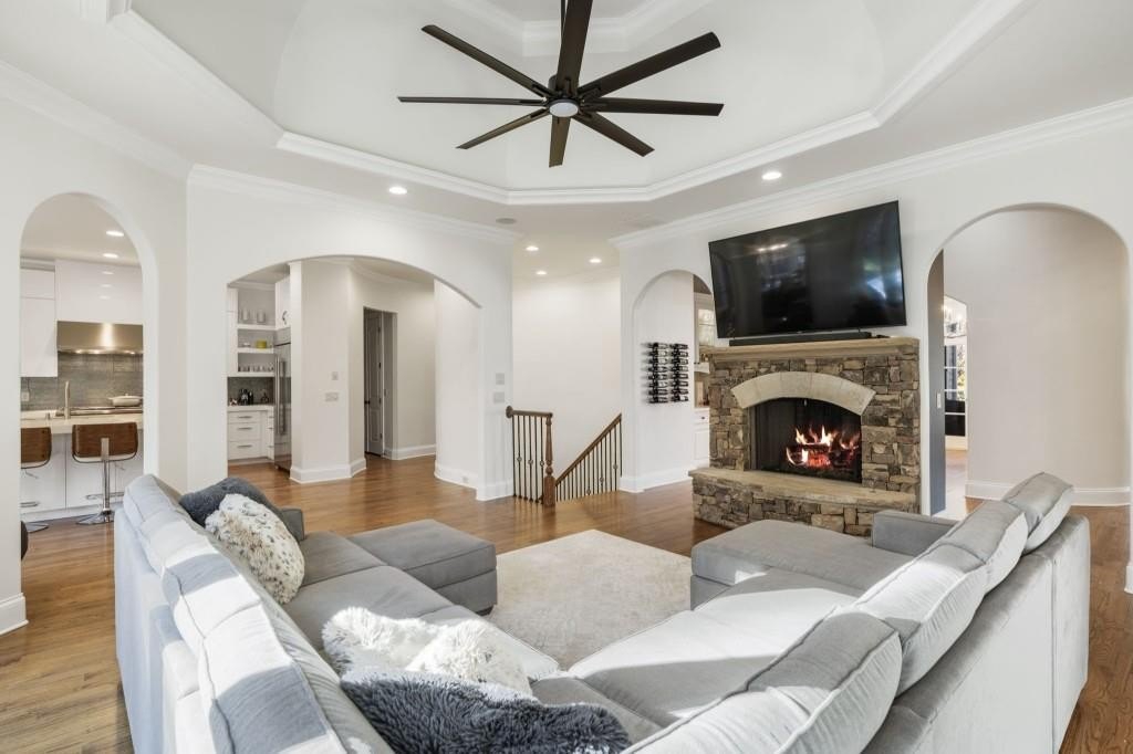 Beautifully updated in this gated community in sought after South Forsyth location! This one level ranch style home offers walk-out on the main level to your outdoor living space featuring a gunite sparkling pool, a screened porch with fireplace, and lots of outdoor entertaining space. This home is located in Forsyth county and situated at the end of a quiet cul-de-sac in gated enclave of luxury homes offering you security and serenity in an ideal location. The covered front porch offers a warm welcome and sets the tone for the comfort and quality found throughout the property. Upon entering through the front door, you are greeted by a dining room on your right and a private study on your left, complete with built-in bookcases and access to the primary bedroom. The heart of the home features an open-concept kitchen design with this oversized island that offers seating and open concept while being a completely modernized kitchen with all new appliances, counter tops, backsplash and more. A stone fireplace serves as a warm and welcoming focal point in the living room and perfect for both everyday living and entertaining. Just off the kitchen, a screened-in back porch with its own fireplace offers a comfortable outdoor living space that can be enjoyed year-round. The primary suite is a peaceful and well-appointed space with windows overlooking the private backyard. The primary bathroom features separate dual vanities, two walk-in closets, and a large walk-in shower and soaking tub. A private bonus room, currently used as a home gym, adds function and flexibility. A second bedroom with ensuite is also located on the main floor. The fully finished basement includes two additional bedrooms, two full bathrooms, one half bathroom, a generous media room, and a wet bar. The lower level offers multiple flexible living spaces ideal for craft room, media space, movie room, ping pong or pool table room perfect for entertaining & hosting guests. Every major system has been thoughtfully updated including pool heater, HVAC, water heaters, roof replaced and freshly painted interior with all bathrooms and the kitchen perfectly updated. The new garage epoxy floor was recently finished. This home offers timeless design, modern upgrades, and a serene setting. Minutes to GA 400, and shopping/dining at The Collection, Halcyon, and Avalon. Enjoy living with the convenience of Fowler Park and the Greenway right outside your community.