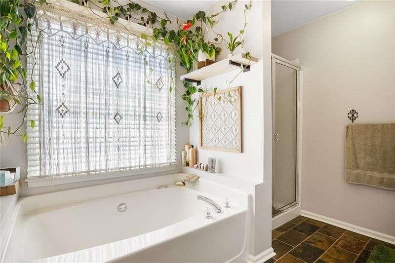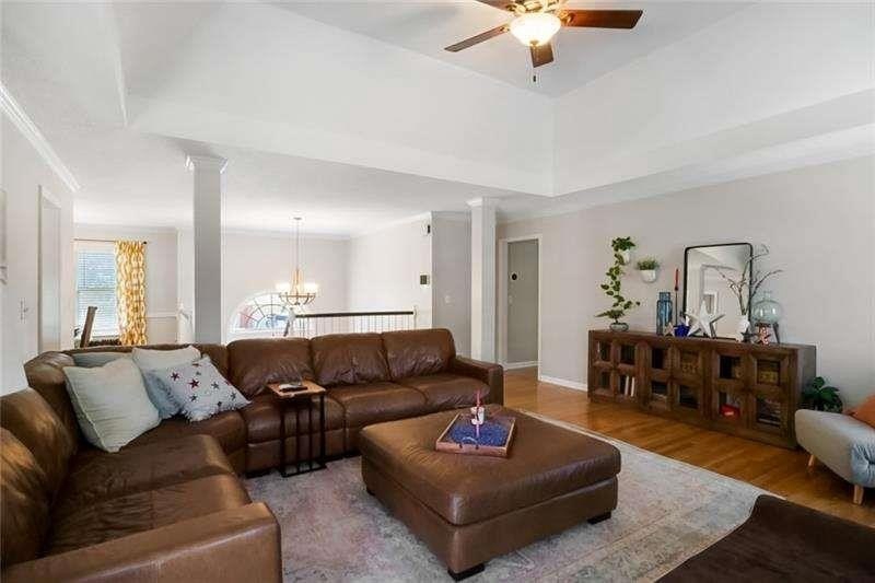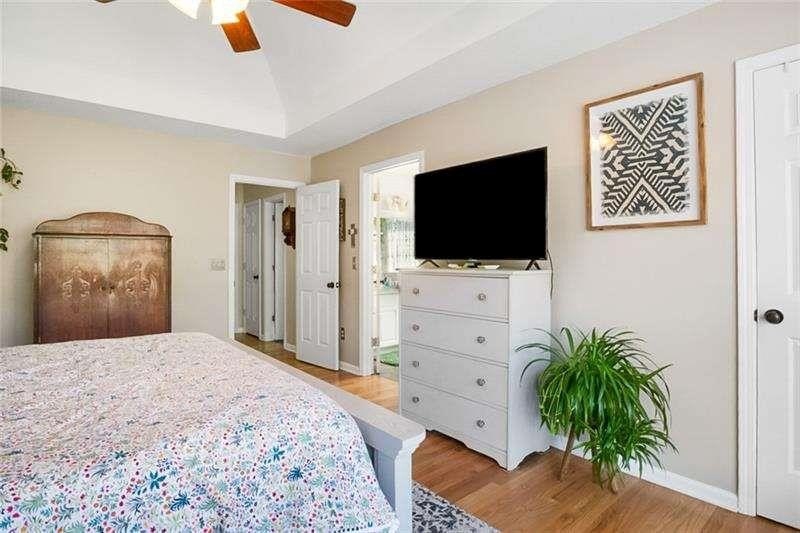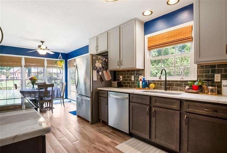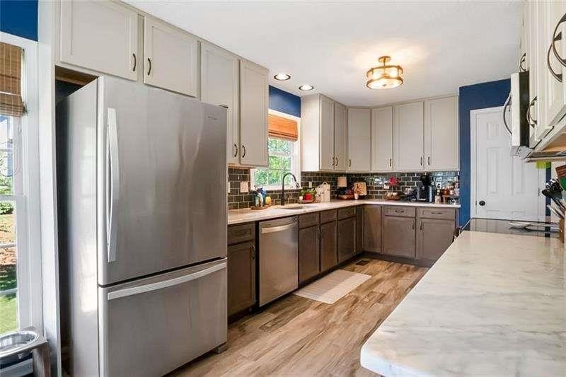 Beautiful move-in ready 4 bedroom, 3 bath home, with so much to offer! Inviting entry foyer with wide steps. Updated kitchen with cabinets that reach the ceiling, new appliances, extra large sink, marble counter tops, and LVP flooring. Sunny breakfast room overlooks gorgeous flat, completely fenced back yard with fire pit. Huge open family room featuring tall trey ceiling, and space for all your large furniture! Roomy primary bedroom with trey ceiling, walk-in closet, and ensuite bathroom with double vanity. All hardwood flooring upstairs, with slate floor in bathrooms. Updated light fixtures and ceiling fans throughout! Back deck extended, with new planks and railings, including top hand rails large enough for your family's dinner plates! New HVAC installed in 2021. Very spacious downstairs with large den, bedroom, and full bath. New door leads to outside, featuring a newly poured concrete slab spanning the width of the home, plus a hot tub with tin roof and gutters. New lighting and electrical outlets installed here too! Extra large garage with large storage room/workshop in back. This home has it all!