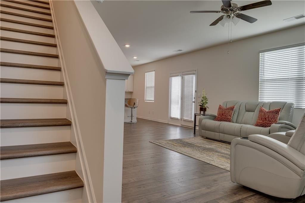 This stunning brick front home offers the perfect blend of modern construction and thoughtful upgrades. It's fully settled and impeccably maintained. It's ideal for families seeking comfort, style and convenience. It features 4 spacious bedrooms and 2.5 pristine bathrooms. The home includes sensor-activated lighting in the bathrooms. Hardwood floors throughout the main level and stairs, along with granite countertops in the kitchen with white cabinets and walk in pantry. It has Plush carpet in the bedrooms on the upper level. The inviting layout provides both functionality and elegance for everyday living or entertaining.