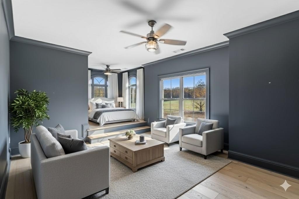 The Owner's Suite is a masterpiece of design and comfort. The large, luxurious ensuite bath offers a magnificent walk-in shower and elegant double vanities. Beyond the bath lies a dream-worthy walk-in closet and dressing room, providing an exceptional, tailored space.