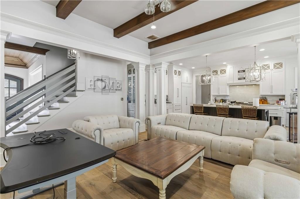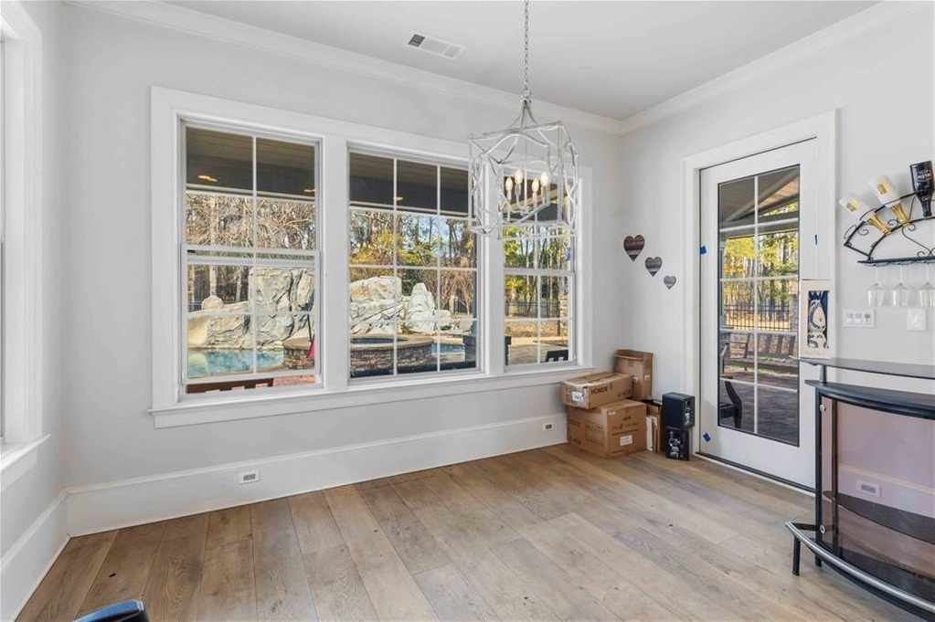 The outdoor amenities elevate this property to resort status. Enjoy seamless entertaining on your covered back porch while taking in the views of your heated, black pebble tech pool and hot tub.