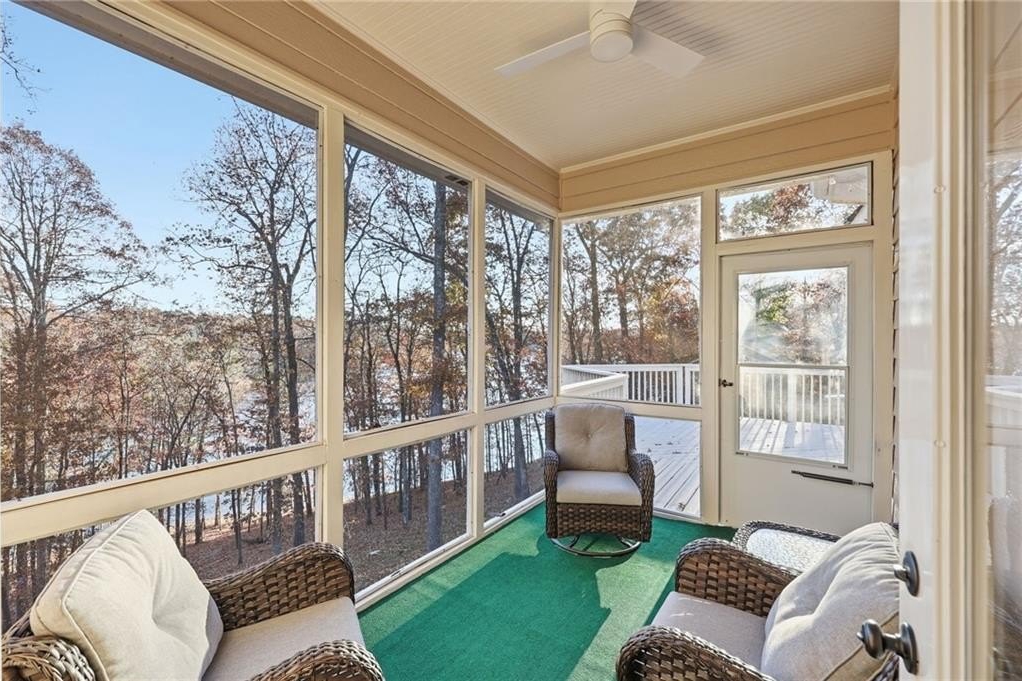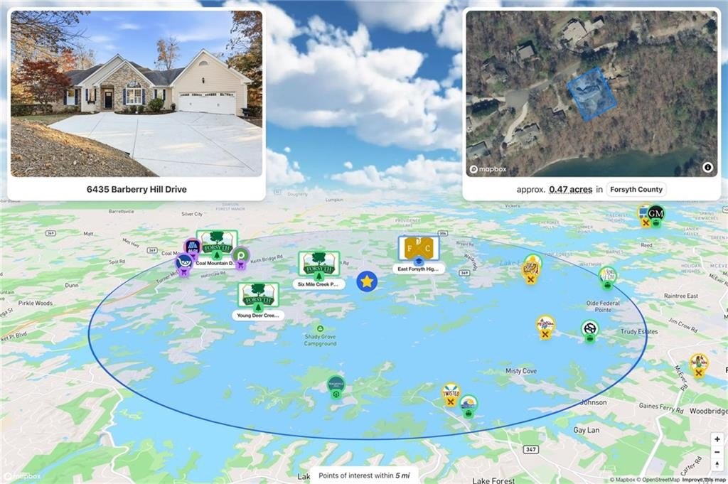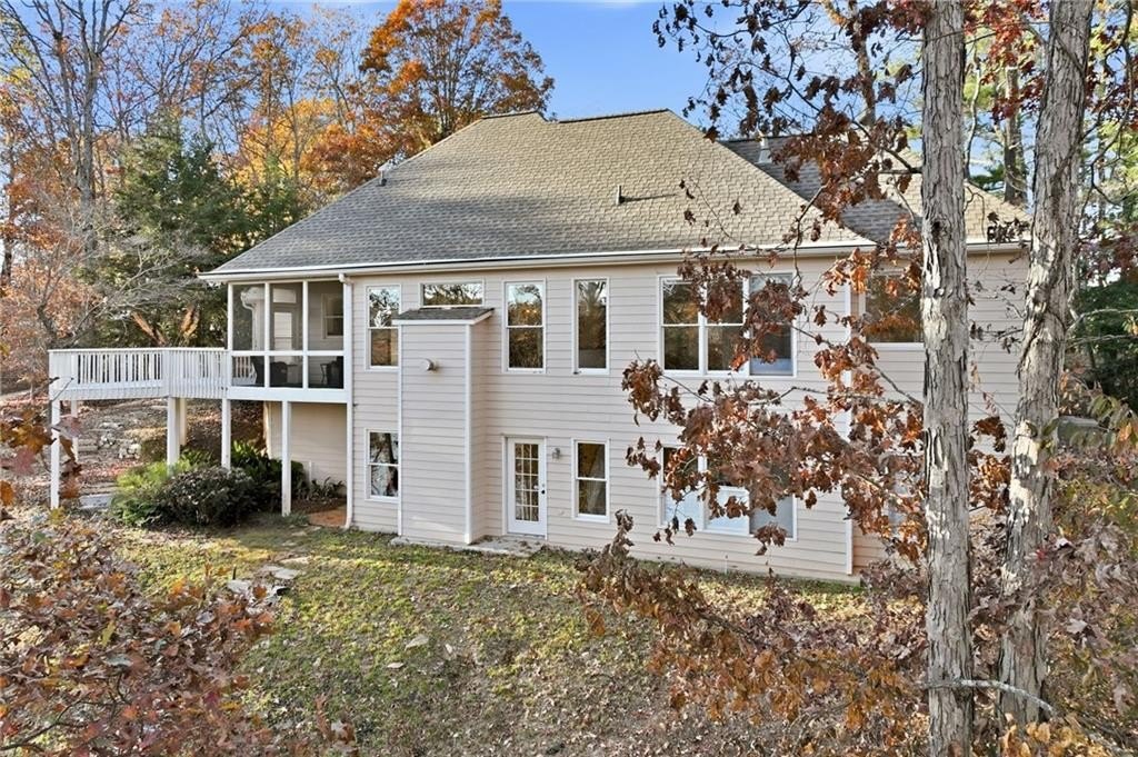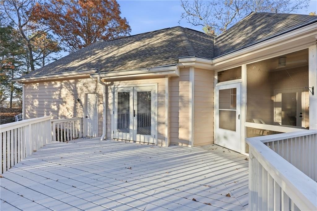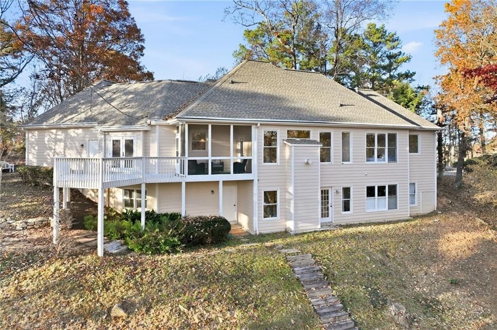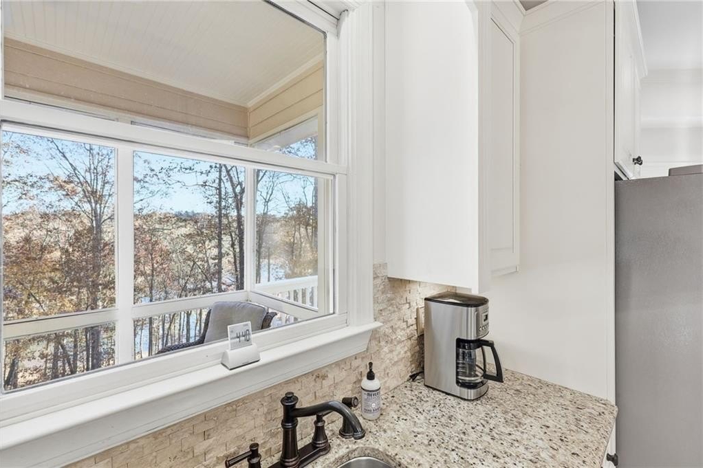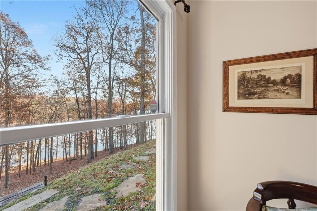 BARBERRY HILL... A MUCH SOUGHT AFTER NEIGHBORHOOD LOCATED ON THE SOUTH END OF LAKE LANIER. Conveniently located close to GA 400, shopping, schools and marinas. Take a gentle walk to the lake to enjoy fishing, kayaking, swimming or just relaxing near the water. This beautiful water front ranch style home boasts both sunrise and sunset views of the Lake. This home sits on approximately 134' of Lake Frontage. Low maintenance brick front home with cement siding on 3 sides. Light, bright and open floor plan. The foyer opens to the vaulted dining room and great room featuring a tray ceiling, fireplace with gas starter, hardwood floors and spectacular lake views. Enjoy a peaceful moment on the screen porch off the Great Room overlooking the shores of Lake Lanier. The gourmet kitchen is also open to the great room boasting a breakfast bar, center island, white cabinets, granite countertops, stainless steel appliances, custom built-ins and spacious dining area with double doors opening to back deck. Laundry room is off the kitchen on the main level. The master suite is on the main with a wall of windows overlooking the lake, large master closet, and luxurious master bath featuring double vanities, spacious shower and jetted tub. Two additional bedrooms are located in the daylight terrace level plus a full bath. There is also a workout room/office/flex space. For the handyman there is a work shop PLUS an unfinished storage area. 2 Car Garage and level driveway for parking. Award winning North Forsyth County Schools.