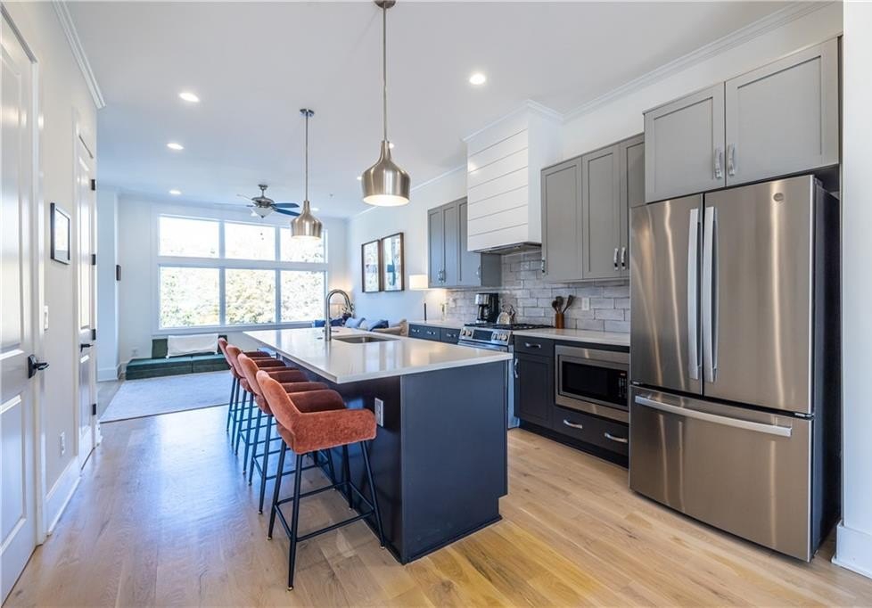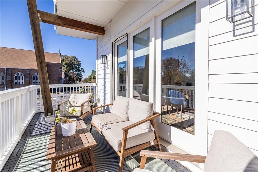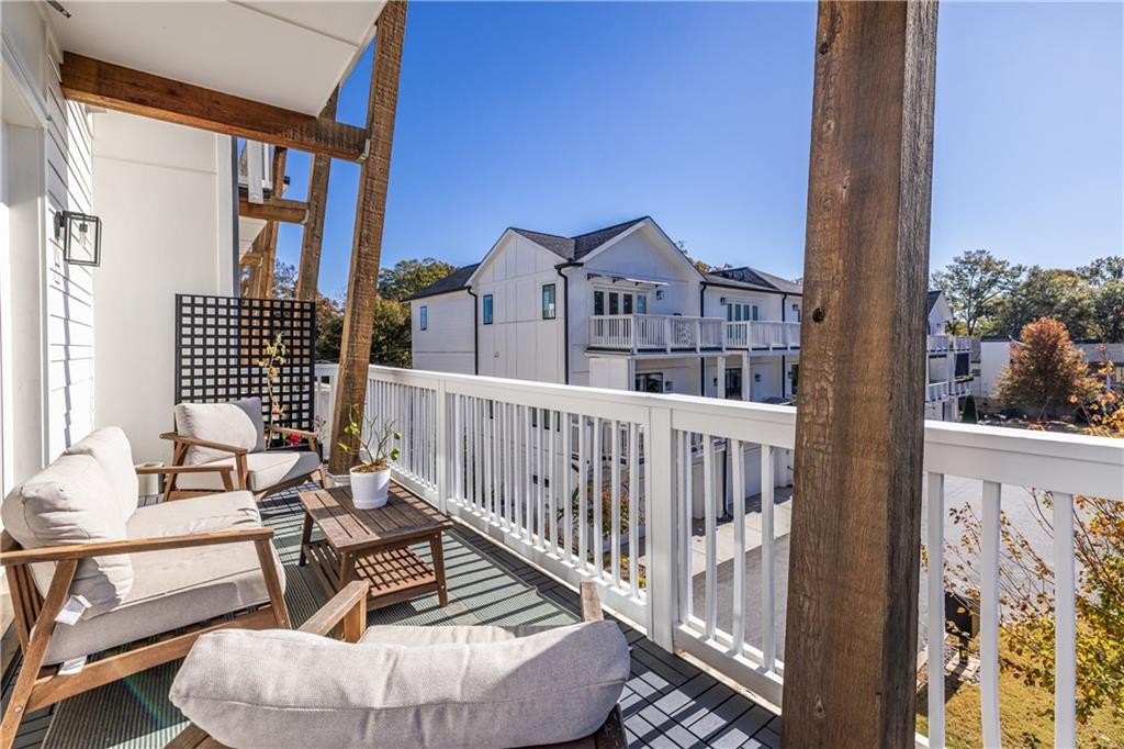 Experience elevated intown living in this beautiful, light-filled, 3-bedroom, 3.5-bath townhome in the heart of Oakhurst within the City of Decatur. Thoughtfully designed with 14-foot ceilings on the main level, site-finished white oak hardwoods throughout, and an ADA-compliant main floor layout, this home blends luxury with livability. The open-concept kitchen features sleek Bosch appliances and flows effortlessly into bright living and dining spaces, complemented by *four* private balconies that extend your living outdoors.