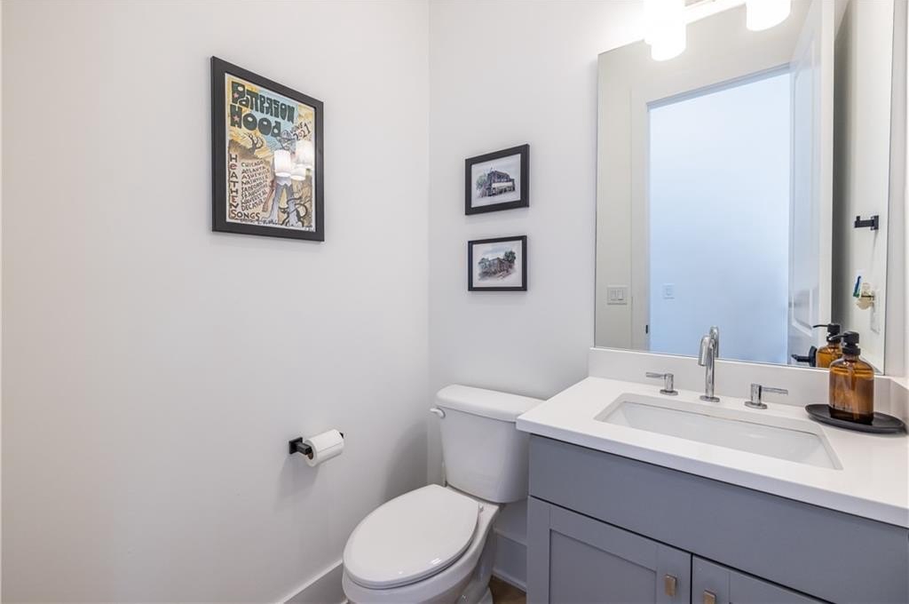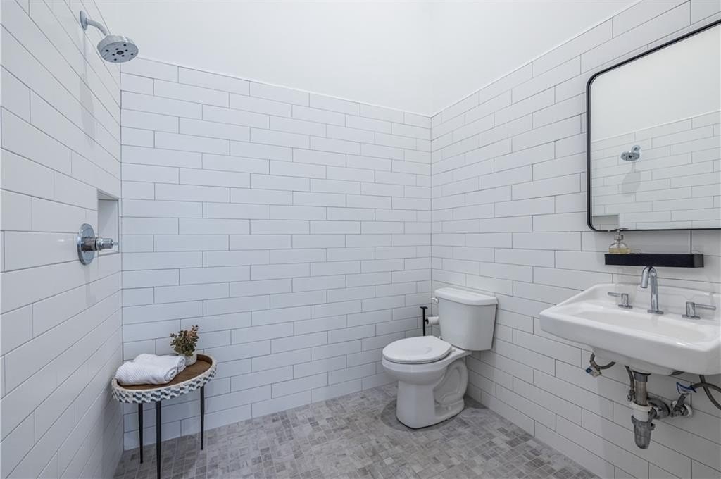 The street-level main floor offers its own exterior entrance—perfect for a home-based business, office, studio, or guest suite. An elevator-ready series of stacked closets on every floor provides exceptional storage and effortless future accessibility. Upstairs, the spacious primary suite boasts a double vanity and oversized glass shower, while the secondary bedroom impresses with soaring windows and an ensuite bath.