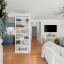 Experience the best of Roswell living in this beautifully updated end-unit townhome! This charming 3-bedroom, 2-bath home features a spacious main-level primary suite that opens to a private deck overlooking a peaceful babbling brook and wooded views. The main level also includes a generous walk-in closet and an updated full bath. Cozy up by the wood-burning fireplace in the bright, inviting living room, or enjoy the built-in shelving that adds character to both the dining area and the kitchen. The kitchen shines with charming blue cabinets, new stainless-steel appliances, and sleek quartz countertops.