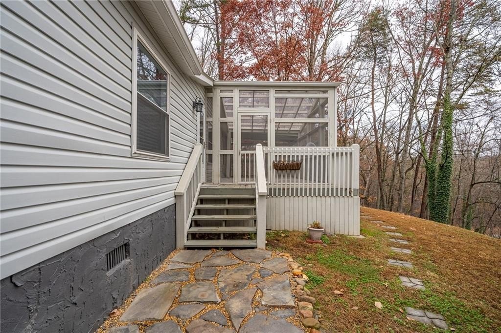 Both bathrooms offer double vanities and tiled showers. Enjoy your morning coffee on the screened-in back porch, overlooking your peaceful surroundings. An additional outbuilding offers versatile space for tools, hobbies, or extra storage.This property has so much to offer—schedule your viewing today!