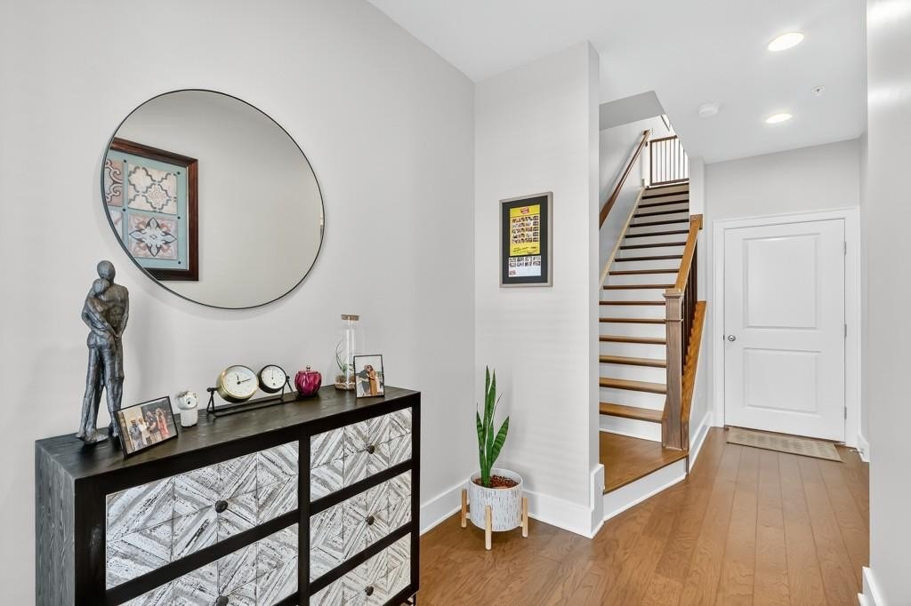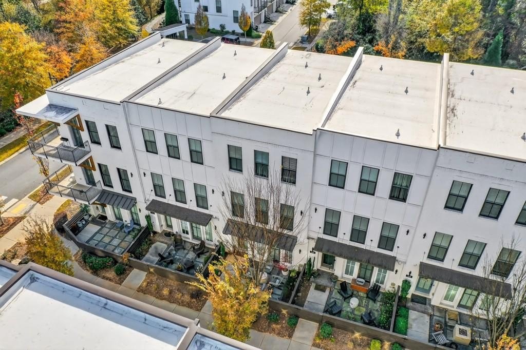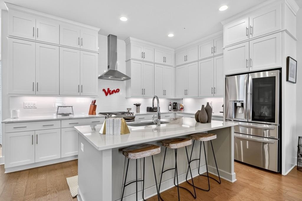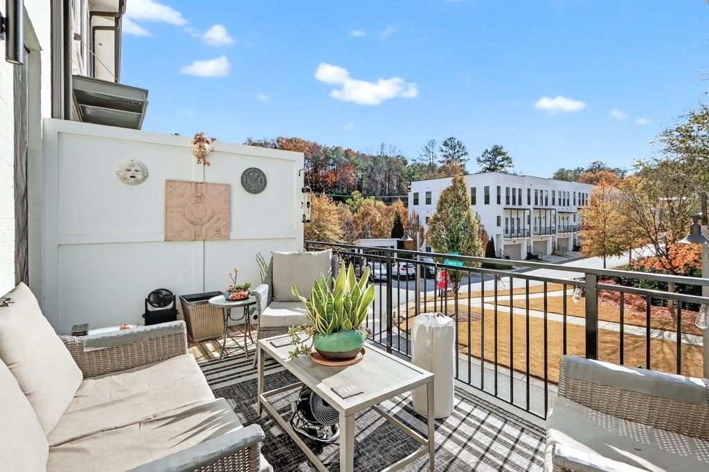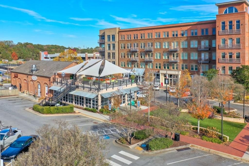 This beautifully maintained town home is located in Mason Main, less than 1 mile from downtown Woodstock! The entry level features a spacious, guest retreat with a walk-in closet. On the main level is a spectacular kitchen with shaker, ceiling height cabinets, quartz countertops, stainless steel appliances (LG refrigerator remains), a large breakfast bar/island, pantry, and a separate service bar for entertaining! Also on the main level is a dining area and a large great room. The great room has a wall of windows and a linear fireplace with a wood beam mantle. Upstairs is the primary suite which features his and hers walk-in closets with custom built-ins. The primary bathroom has a double vanity and an oversized tile shower with dual showerheads and a built-in bench. Also on the upper level is another bedroom with its own private bathroom and a walk-in closet. The laundry room is conveniently located upstairs with the primary suite (washer and dryer remain). For entertaining, there are two separate outdoor areas, the deck off of the main level as well as the beautifully landscaped courtyard off of the entry level! 5" hardwood floors throughout the main living areas and the upstairs hallway create a consistent flow enhancing the open floor plan. Mason Main is a vibrant, sidewalk community with streetlights and pocket parks and is conveniently located close to restaurants, shopping and the city amphitheather.