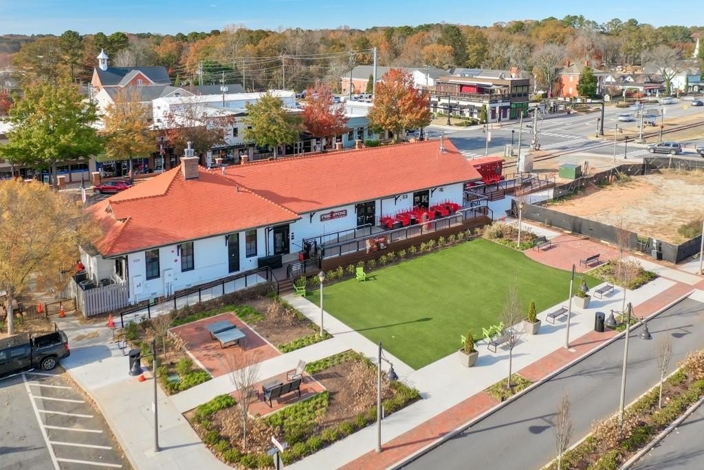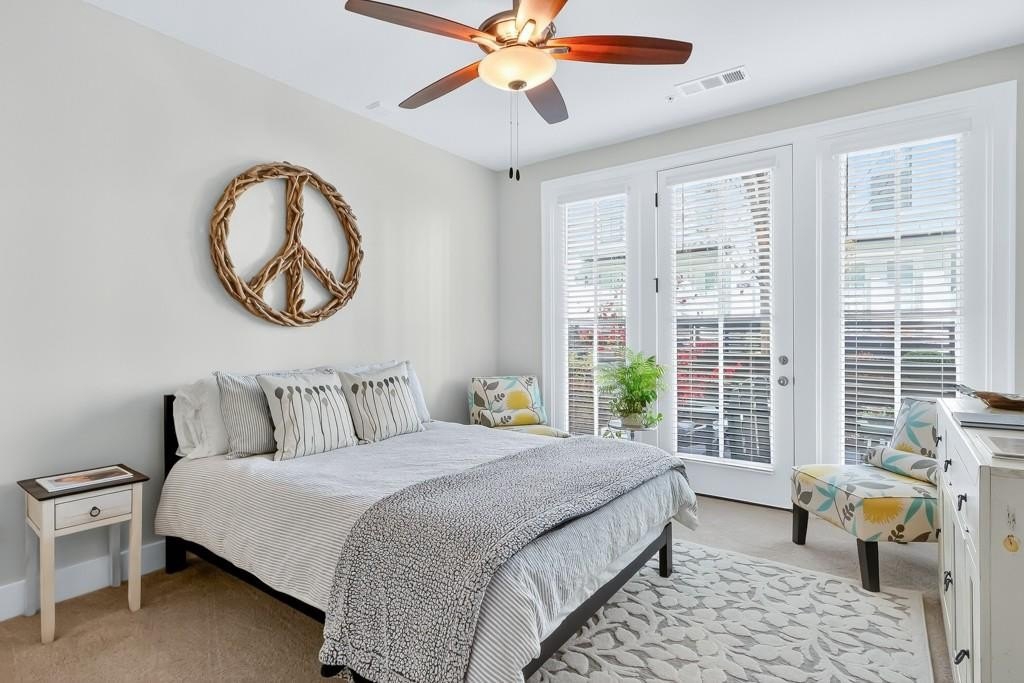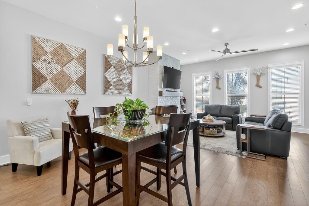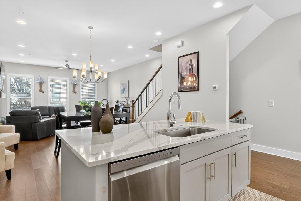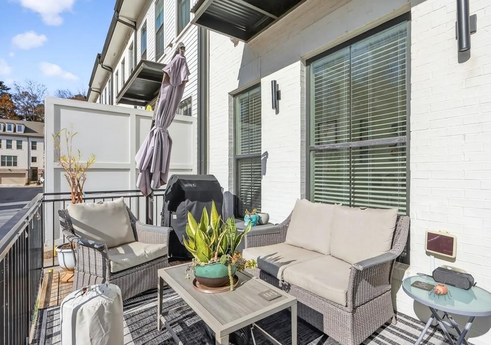 This beautifully maintained town home is located in Mason Main, less than 1 mile from downtown Woodstock! The entry level features a spacious, guest retreat with a walk-in closet. On the main level is a spectacular kitchen with shaker, ceiling height cabinets, quartz countertops, stainless steel appliances (LG refrigerator remains), a large breakfast bar/island, pantry, and a separate service bar for entertaining! Also on the main level is a dining area and a large great room. The great room has a wall of windows and a linear fireplace with a wood beam mantle. Upstairs is the primary suite which features his and hers walk-in closets with custom built-ins. The primary bathroom has a double vanity and an oversized tile shower with dual showerheads and a built-in bench. Also on the upper level is another bedroom with its own private bathroom and a walk-in closet. The laundry room is conveniently located upstairs with the primary suite (washer and dryer remain). For entertaining, there are two separate outdoor areas, the deck off of the main level as well as the beautifully landscaped courtyard off of the entry level! 5" hardwood floors throughout the main living areas and the upstairs hallway create a consistent flow enhancing the open floor plan. Mason Main is a vibrant, sidewalk community with streetlights and pocket parks and is conveniently located close to restaurants, shopping and the city amphitheather.