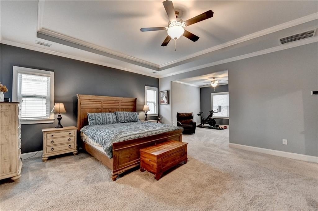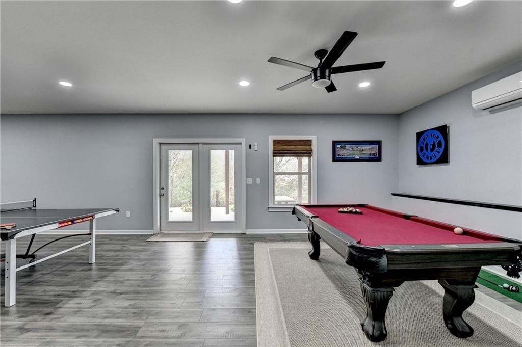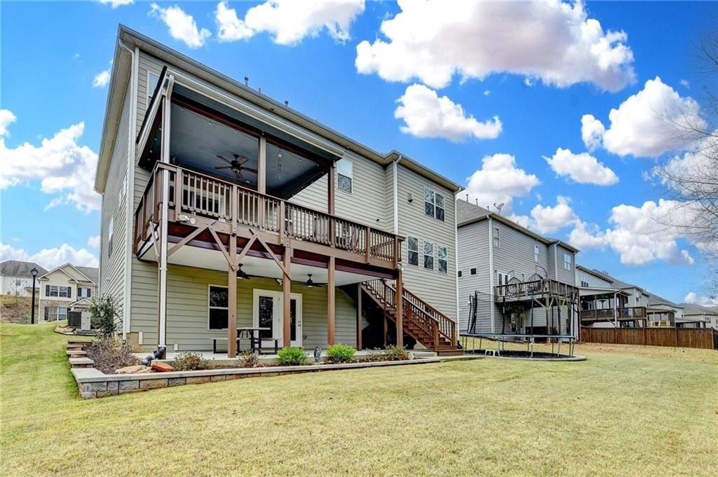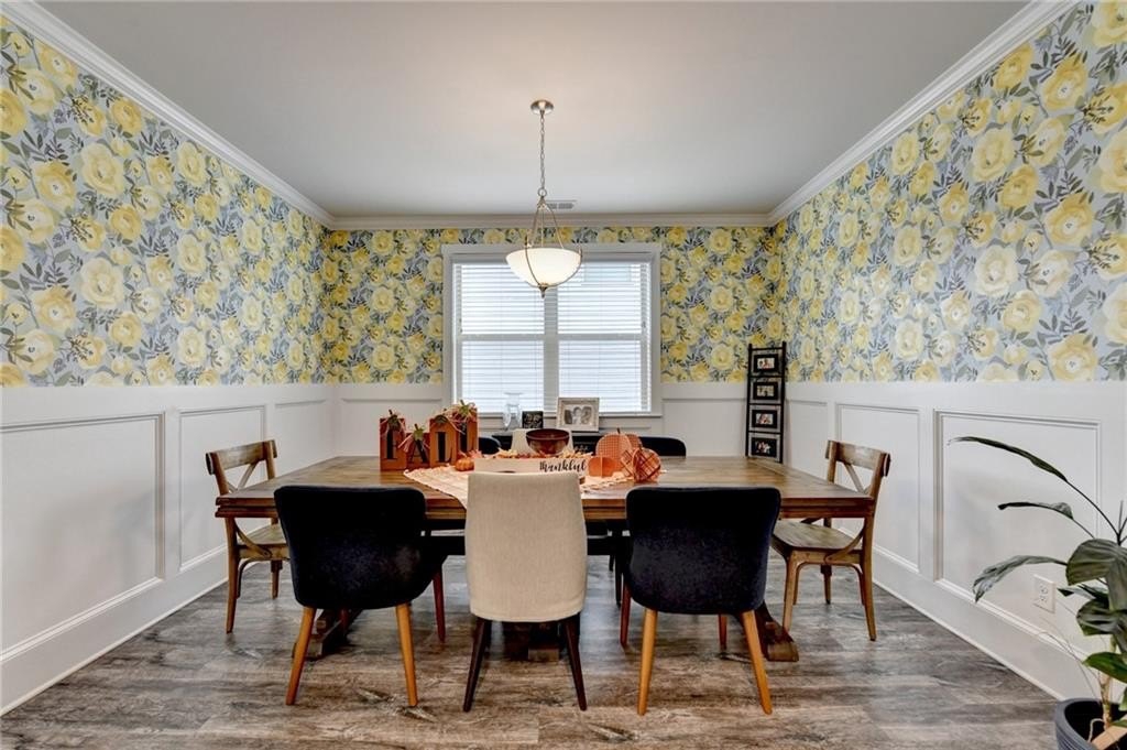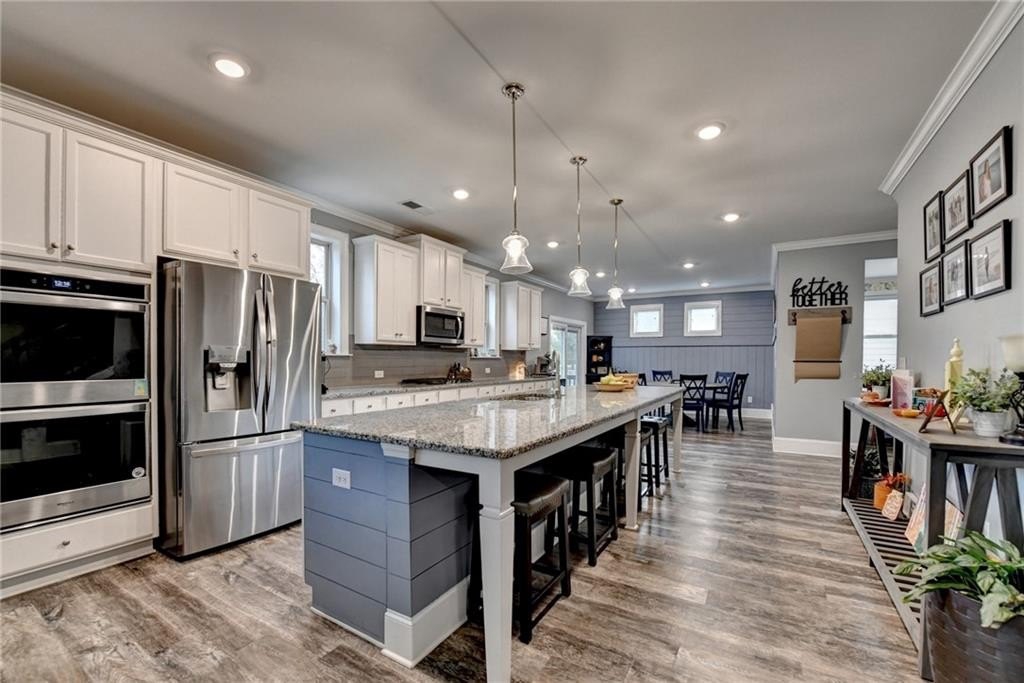 Immaculate 6/5 HOME WITH FINISHED BASEMENT preplumbed for easy install of a kitchen, workshop and extra storage. Large .23 acre lot backs up to natural wooded area. Home boasts LVP flooring on main floor and basement levels. First floor has an office and full bedroom with closet and full bath. Home features crown molding in main living areas, including waynscoting in formal dining room and tankless water heater. Kitchen opens to family room with beautiful stone fireplace and features large granite counters, an oversized island, upgraded 42 inch white cabinets, double wall oven, four burner gas cooktop, pantry and eat in area that looks over the backyard. Home also boasts custom shiplap in main living area, eat in kitchen and under kitchen island with laundry room on upstairs level. Newly installed solid wood stairs brings you to second level which features oversized master bedroom with sitting area and gas fireplace with crown molding and tray ceiling. Master bath features, large walk in shower, seperate soaking tub, double vanity with white cabinets. 2 bedrooms share a jack and jill bathroom, followed by an additional bedroom with full private bathroom along with an additional bedroom. Basmement includes, spacious bonus room and full bathroom, family room and storage. Newly painted deck off family room with stairs providing easy access to backyard, oversized rear patio w/ dual ceiling fans and custom underdeck ceiling.