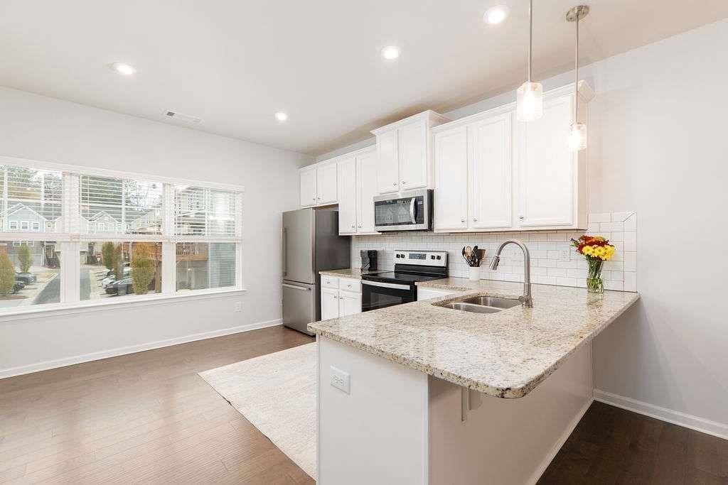 Welcome to modern elegance in Cantrell Crossing! This like-new (2021) end-unit townhouse offers 3 bedrooms, 3.5 baths, and 2,126 sq ft of beautifully appointed living space. The main level impresses with luxe LVP flooring, while the heart of the home-the kitchen-features granite countertops, a striking backsplash, pantry space, and an open view to the family room. Upstairs, enjoy spacious and well-lit bedrooms with a thoughtfully designed layout. The finished daylight basement adds flexible living space, perfect for a home office, media room, or guest suite. The property also includes a convenient 2-car garage and upper-level laundry. Designed for lifestyle and comfort, this home offers a seamless flow for entertaining or relaxing. As part of the Cantrell Crossing community, residents enjoy nearby Swift-Cantrell Park, a sprawling 42-acre amenity hub with playgrounds, picnic areas, paved walking trails, a splash pad, dog park, and a skatepark. Location is a standout-just two miles from historic downtown Kennesaw, with easy access to shopping, dining, and entertainment. The home is zoned for Big Shanty (Kennesaw) Elementary, Awtrey Middle, and North Cobb High School. With a low-maintenance lifestyle thanks to HOA-managed grounds and termite coverage, this townhouse blends style, convenience, and community. Don't miss the chance to own in this vibrant, prime Kennesaw location - schedule your private tour today.