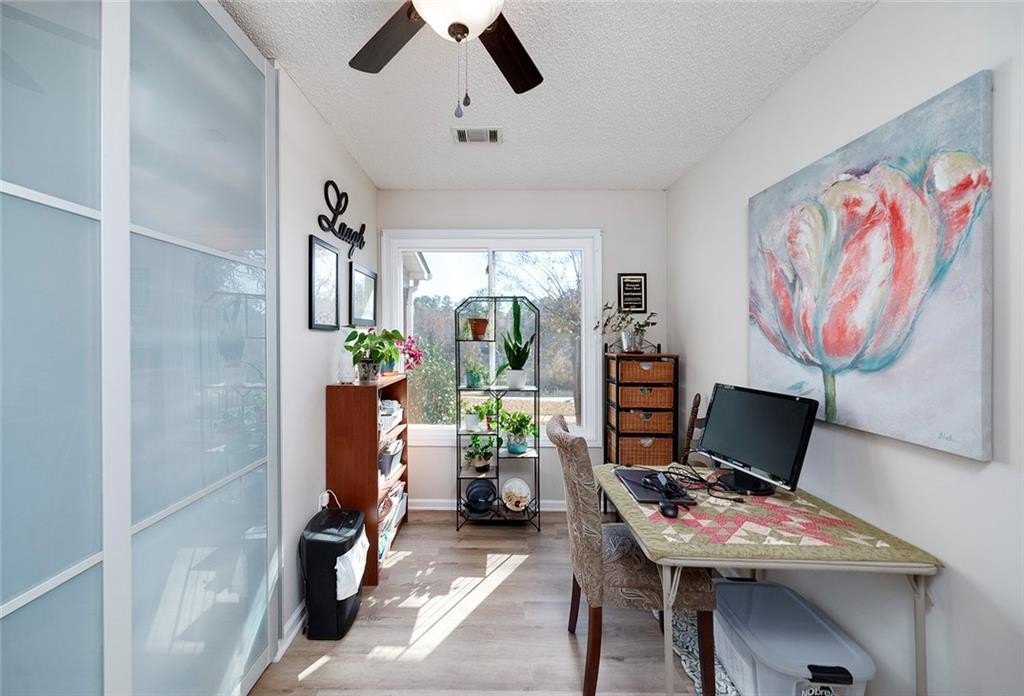 After a long day at work, you'll enjoy relaxing outside on the patio overlooking a large back yard with mature Hydrangea shrubs, Japanese Maple trees and beautiful iris & lilies that will surprise you with gorgeous blooms next Spring! There is also a large outbuilding / man cave that's only two years old from Georgia Yard Barns that includes power and loft storage on both ends.