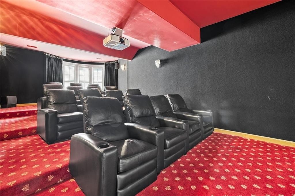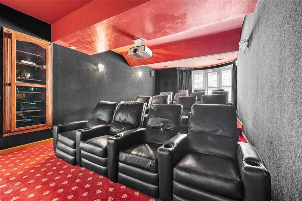 On the terrace level, the estate becomes a private world of entertainment: a ballroom, theater, sauna, and a moody game lounge with billiards and bar seating reminiscent of a classic speakeasy.