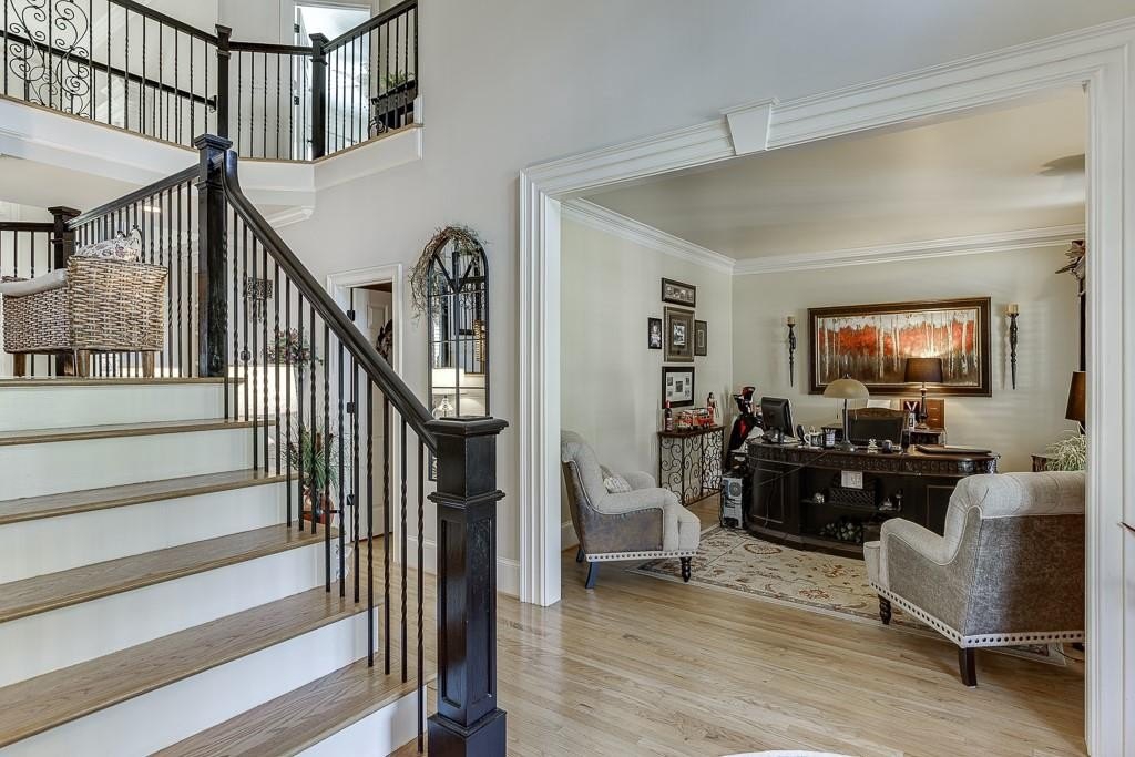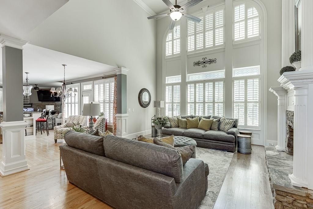 Bring your kayaks and canoes, this finely appointed, move in ready home has been very well maintained and has one of the few lake front homesites in this wonderful community. One of the most desirable lots in the whole subdivision. Walk down to the community lake and go for a paddle or have a picnic on the shore. Lake Astoria is a lovely community and one of the most sought after in Forsyth County. Great schools, excellent location within 10 minutes of Cumming City Center with shops, restaurants, the new brewery, amphitheater for entertainment, Putt Putt golf and other activities for the whole family. The home is wide open with great natural light from a huge bank of windows adorned with plantation shutters and is tucked away on a quiet cul-de-sac. Choose the outdoor space to relax in. The second-floor balcony on the front of the home is great for a reading area and creates a feeling of the Savannah Style homes of old. The first-floor front porch is spacious and allows for the friendly exchange of greetings with neighbors walking by. The flow of the lower level is spacious and light. The prolific, ornate trim is gorgeous and really dresses up the house. The kitchen is to die for and has a great view of the Family Room and Keeping Room for a great entertaining space. All of the bedrooms are large, and the Master Suite is truly giant with its own sitting area and fireplace for cozy evenings in the solitude of the Primary Suite. The Master closet has capacity to be expanded with a room behind it that could be enlarged to expand the current closet. The Master Bathroom is like a spa with tons of floor space and gorgeous tiles. A big deck overlooks the flat backyard with a view to the lake. The huge unfinished basement is ready and waiting for your finishing touches. Add a room or a whole third level as an in-law suite or a place to play. There is ample room to build whatever you want. The three-car garage is big and you'll love having the space for a golf cart or extra car. This home has a wonderfully comfortable interior and a peaceful outdoor space, that creates its own natural refuge. Enjoy the peace and quiet of Lake Astoria.